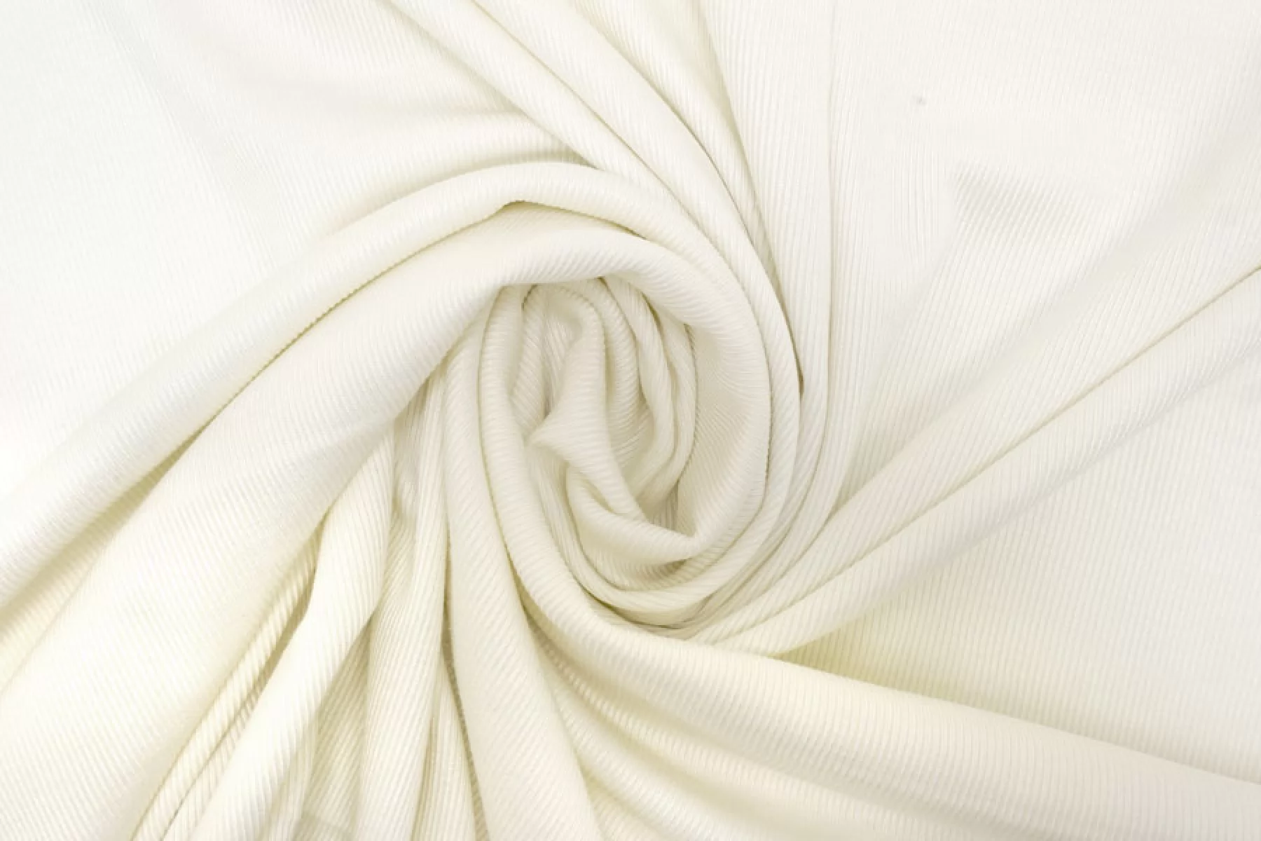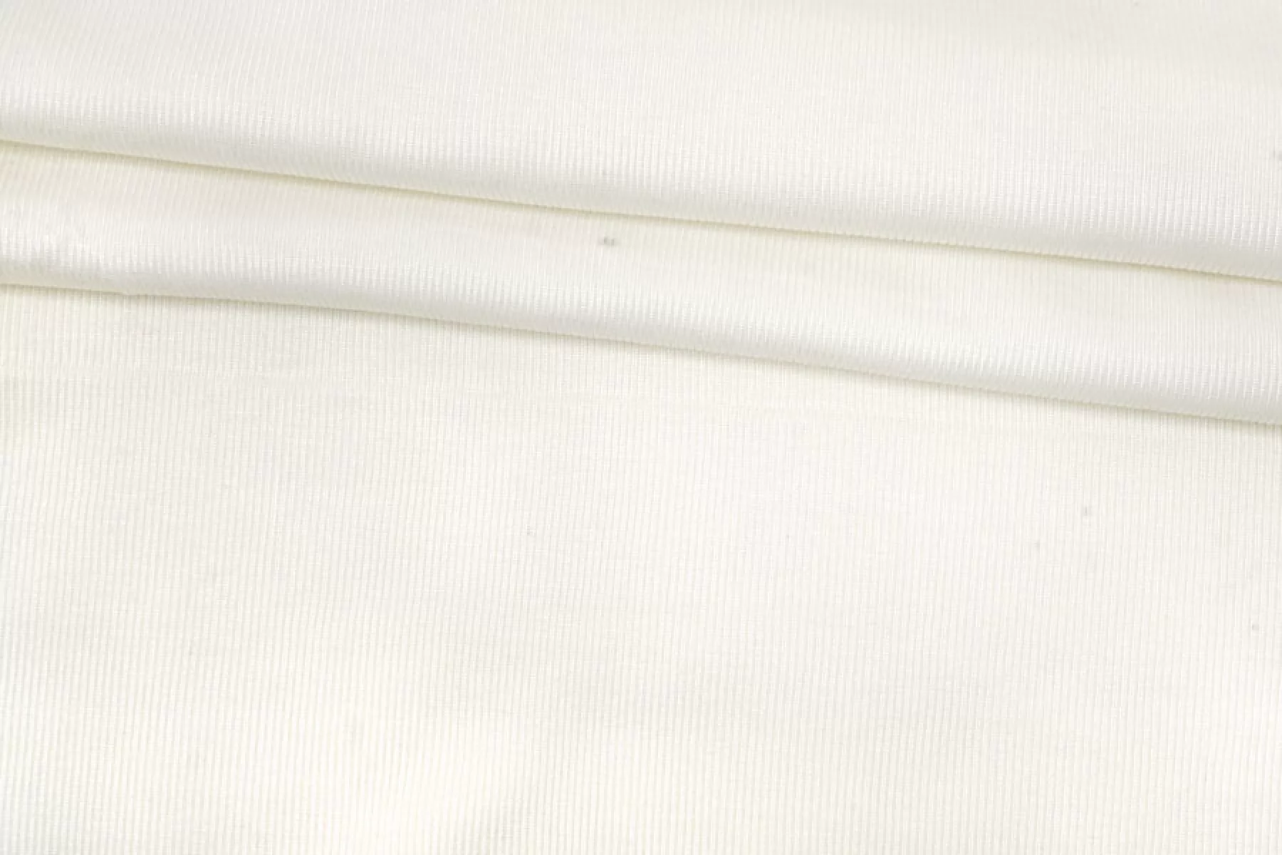 ВНИМАНИЕ!! Встречаются вкрапления нити, и грязь, см. фото. Трикотаж, вязка кашкорсе, белого цвета с легким молочным подтоном, от бренда FORTE FORTE. Эластичный, пластичный, немного просвечивает. С приятным мягким лоском. Тонкий, мягкий, очень приятный к телу. Хорошо тянется. Подойдет для пошива самостоятельных изделий, манжет, подвязов.