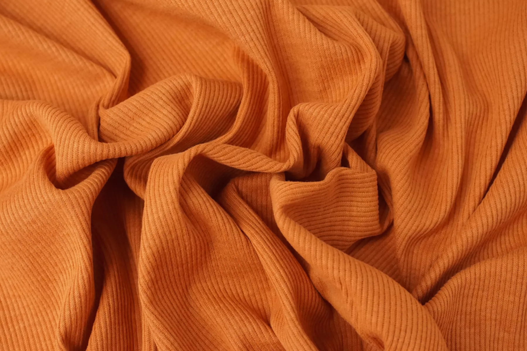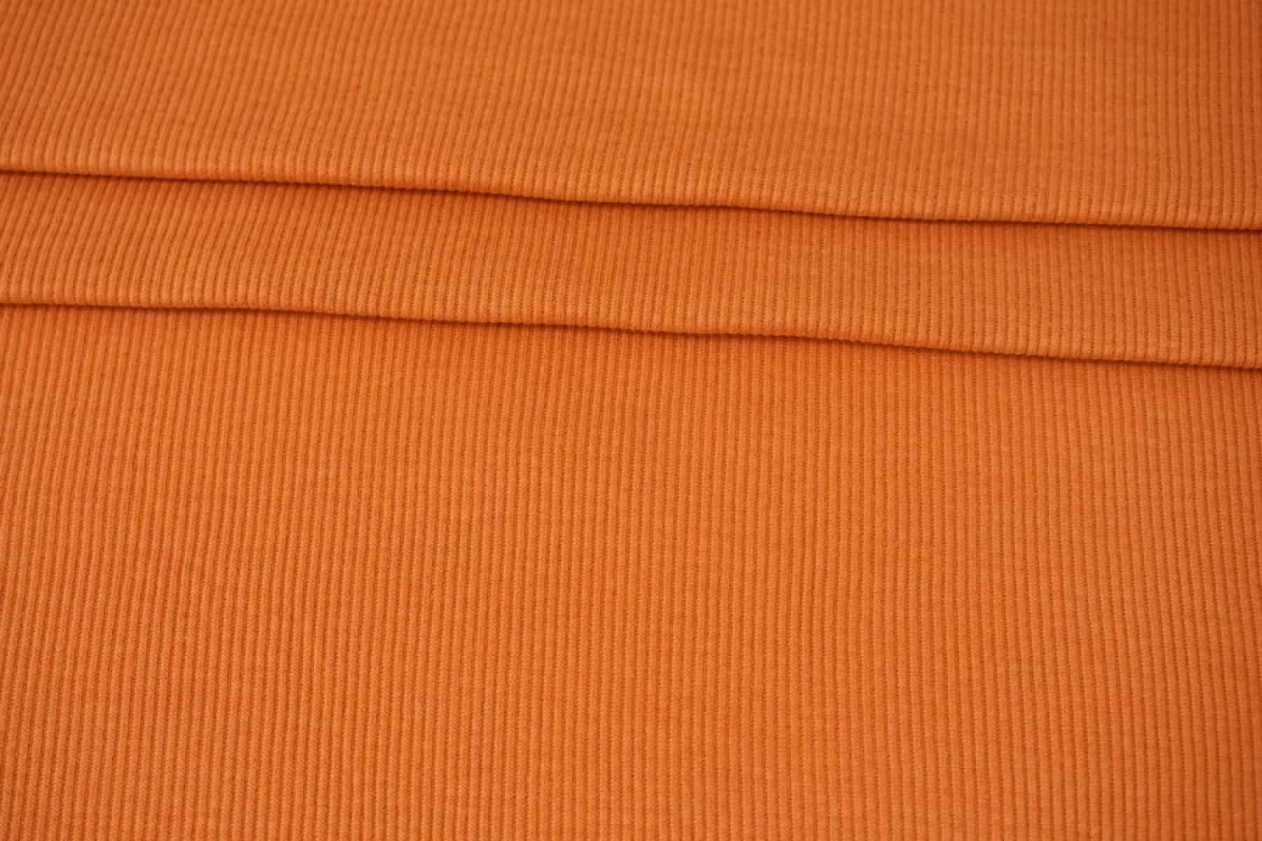 Мягкий и тонкий хлопковый трикотаж кашкорсе, лапша, в светлом оттенке оранжево-терракотового цвета. Мягкий и приятный, слегка суховатый. Эластичный и пластичный. Отлично тянется за счет плетения. Просвечивает силуэт на просвет и при растяжении. Форму не держит. Сминается, но восстанавливается. Отлично подойдет на майки, топы, водолазки и кофты, свободные платья, а также детские изделия.