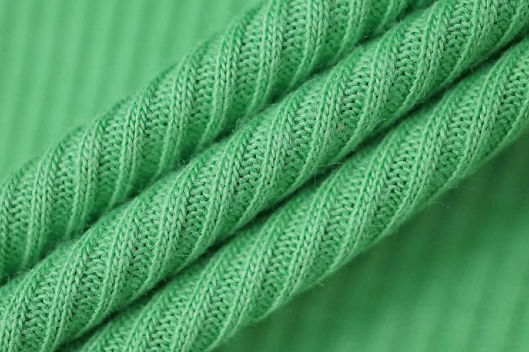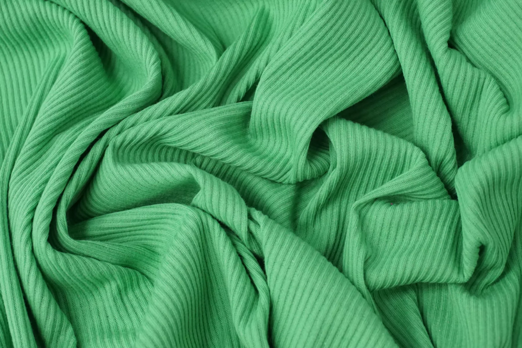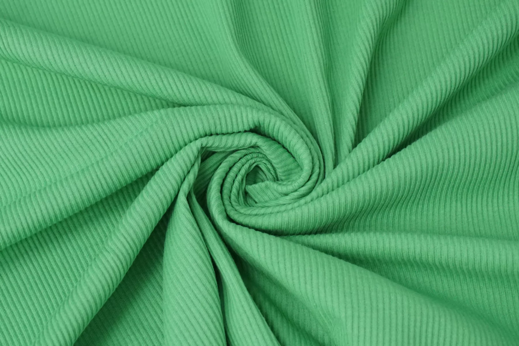 Мягкий хлопковый трикотаж кашкорсе, лапша, в приятном оттенке зеленого . Мягкий и приятный, слегка суховатый. Эластичный и пластичный. Отлично тянется за счет плетения. Просвечивает при растяжении. Форму не держит. Сминается, но восстанавливается. Отлично подойдет на майки, топы, водолазки и кофты, свободные платья, а также детские изделия.