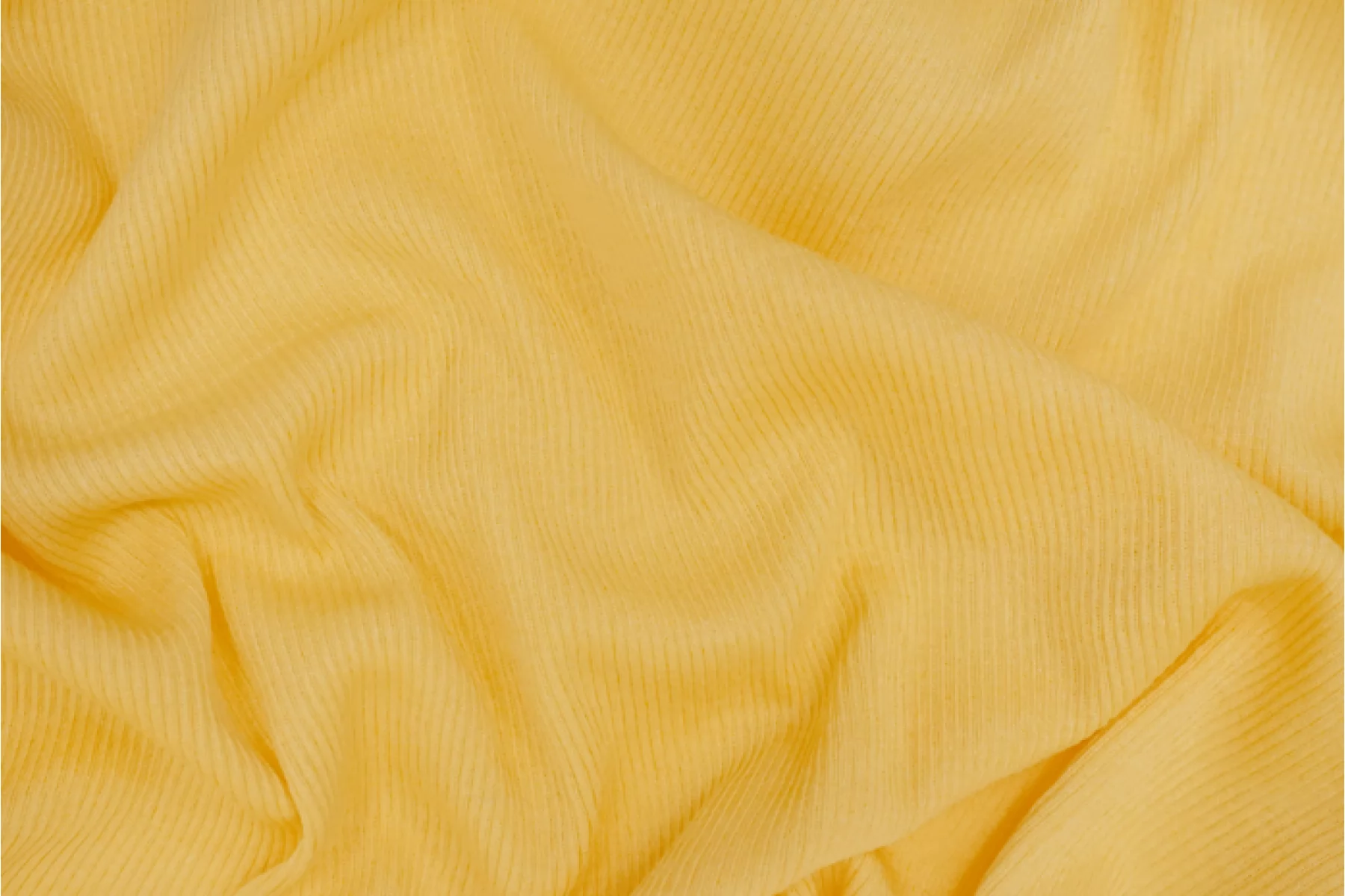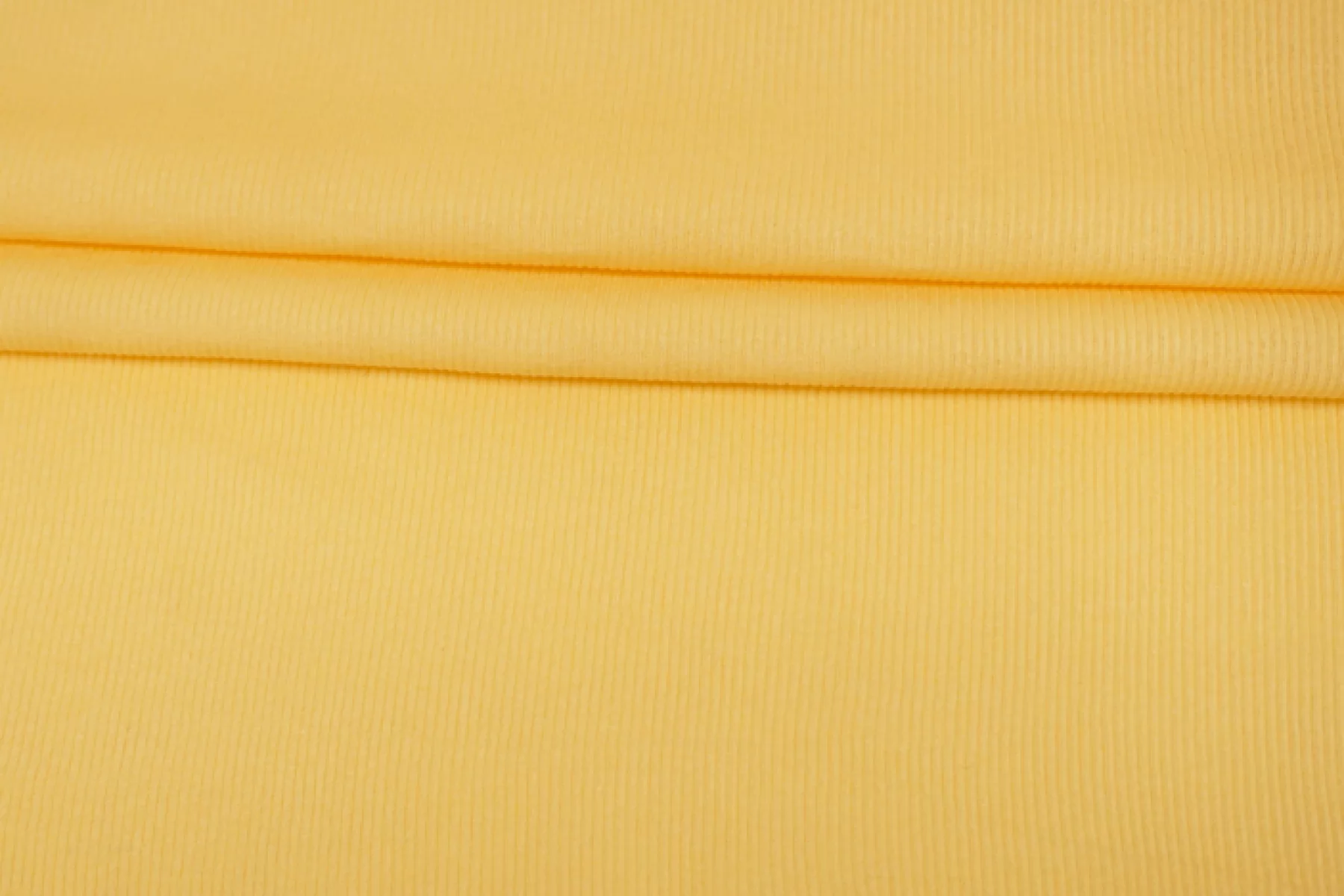 Хлопковый трикотаж-кашкорсе, отличного качества, желтого оттенка. Тактильно мягкий, приятный, слегка шероховатый. Обладает легким лоском. Шикарно тянется за счет плетения и эластана. Просвечивает силуэт на просвет и при растяжении. Сминается, но восстанавливается. Отличный вариант на майки, топы, а также используем для детской одежды.