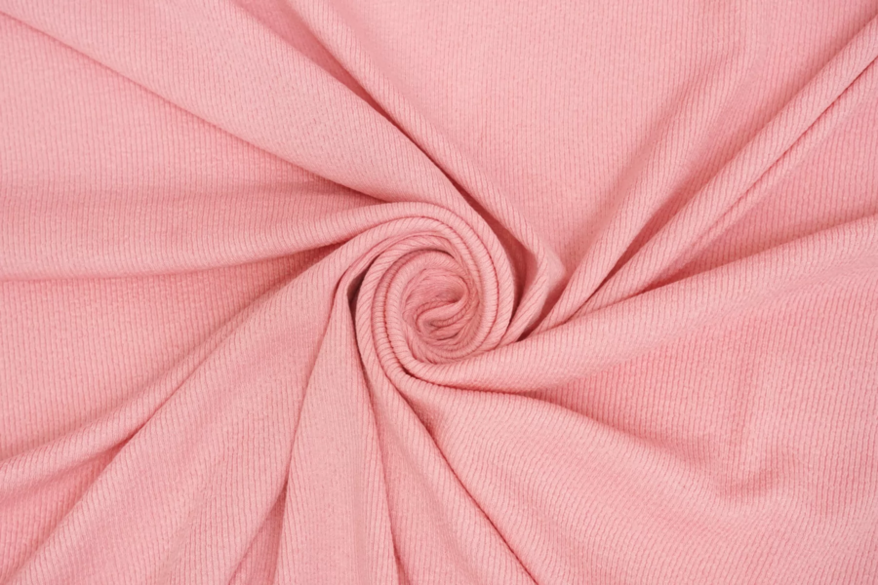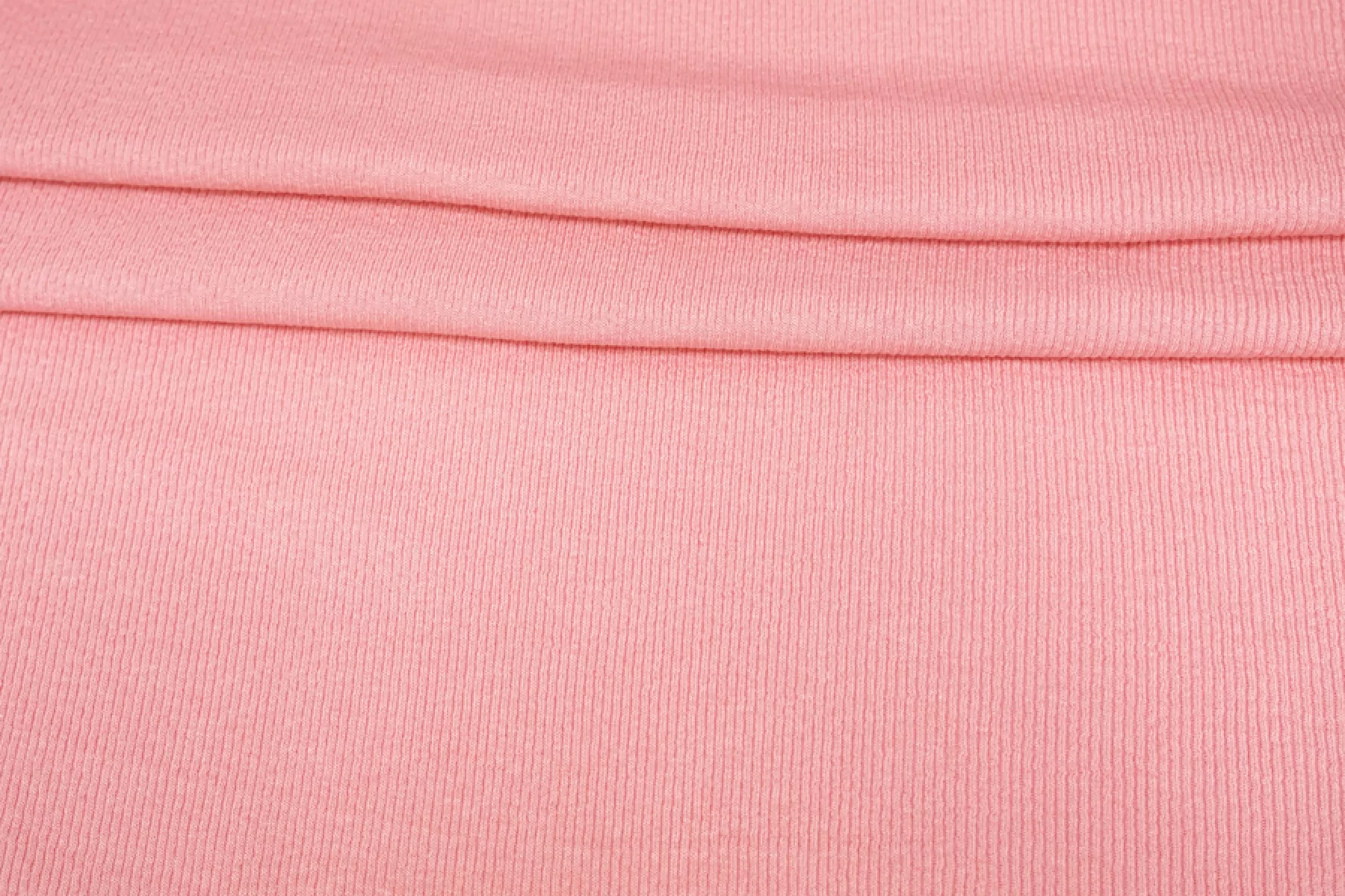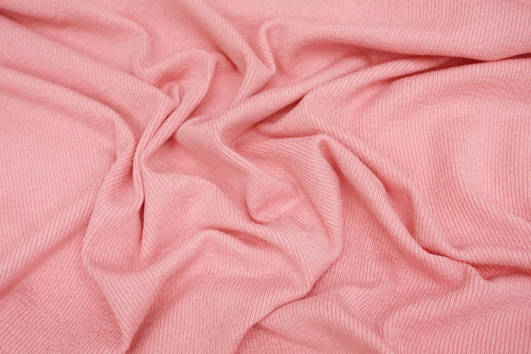 Классный хлопковый трикотаж-кашкорсе, с шикарной обработкой, в нежном припыленно-розовом оттенке с персиковым подтоном. Тактильно очень мягкий и приятный, шелковистый и гладкий. Обладает приятным и выраженным лоском. Прекрасно тянется за счет плетения и эластана. Просвечивает силуэт при растяжении. Сминается, но восстанавливается. Отличный вариант на майки, топы, свободные юбки и кофты, а также прекрасно подойдет для детской одежды.