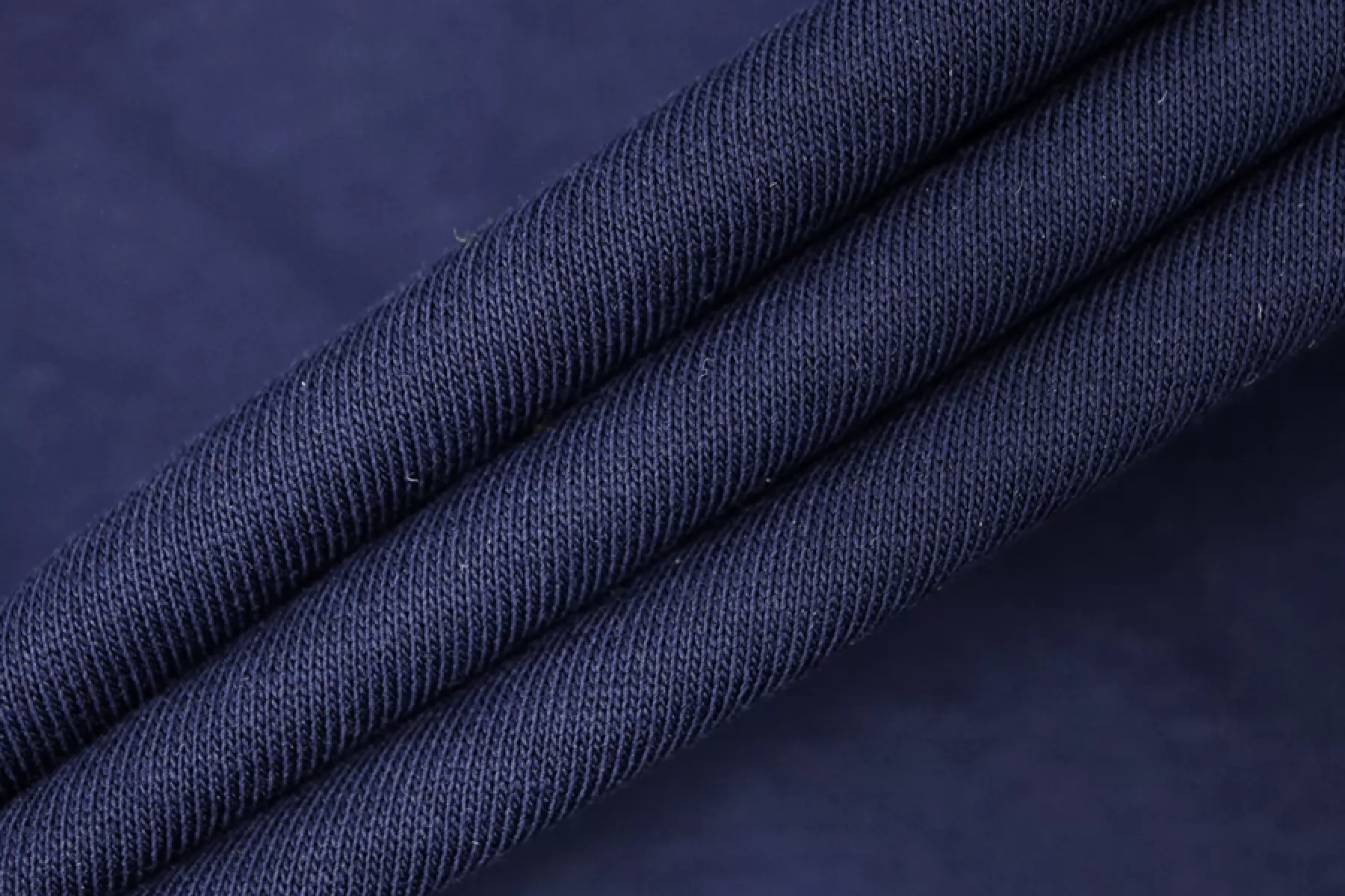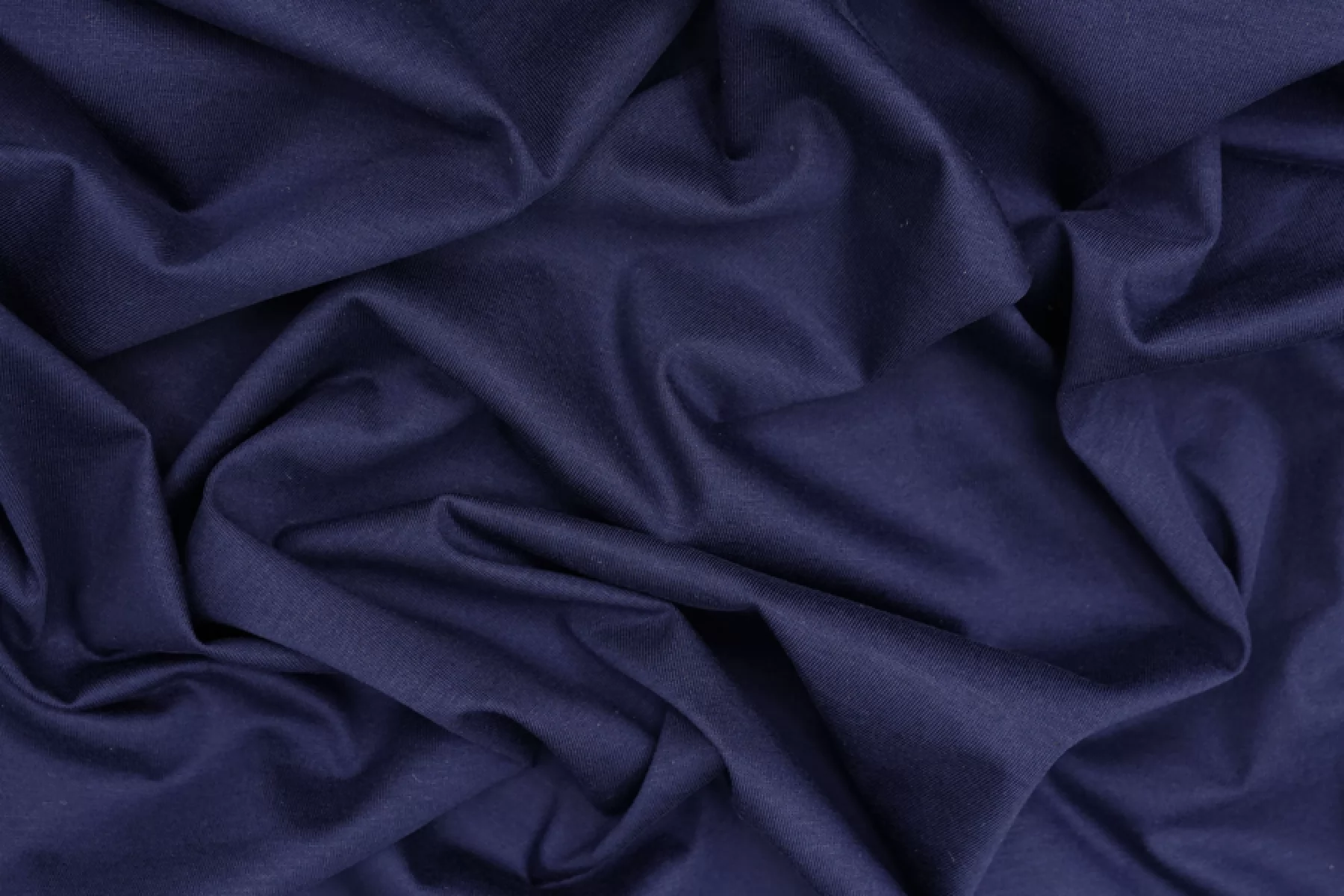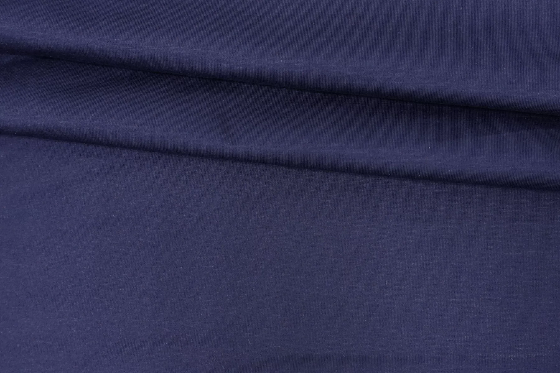 Отличный хлопковый трикотаж в темно-синем цвете, кулирная гладь. Материал довольно тонкий, тактильно очень приятный, гладкий и мягкий. Просвечивает силуэт. Немного сминается и частично восстанавливается. Будет очень комфортен в носке. Ткань пластичная, хорошо тянется. Шьем майки, футболки, платья и домашнюю одежду.