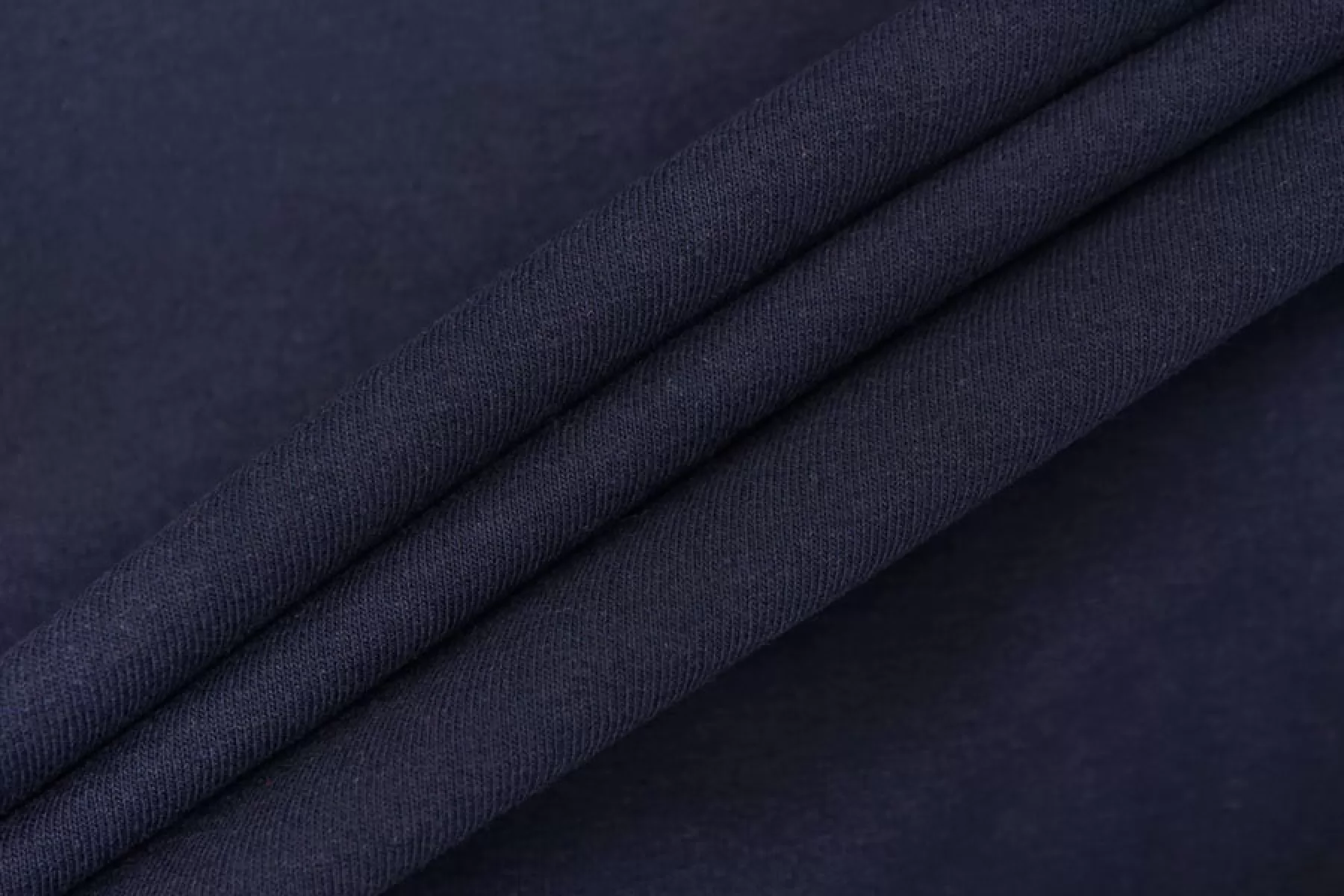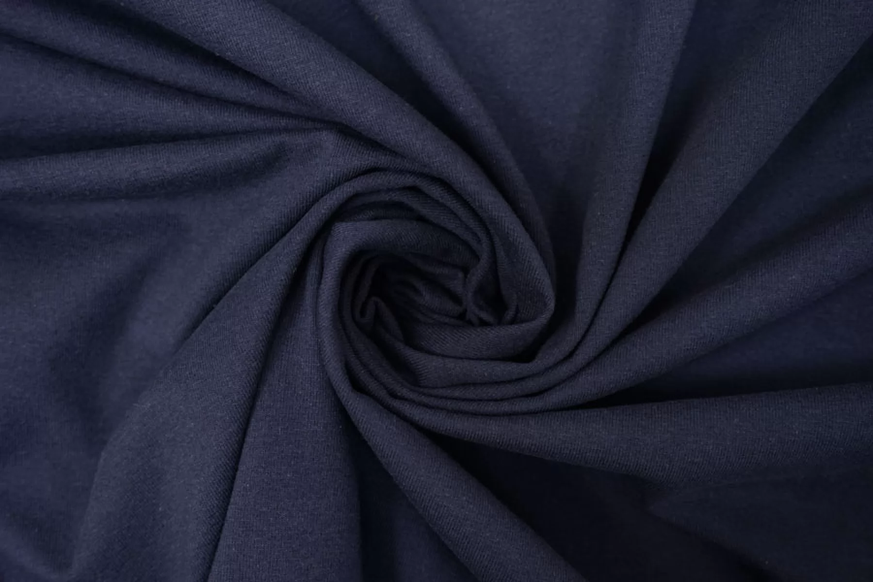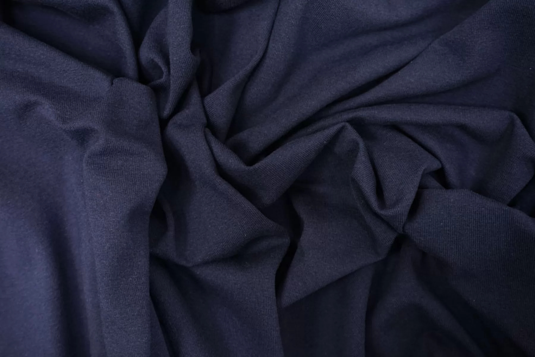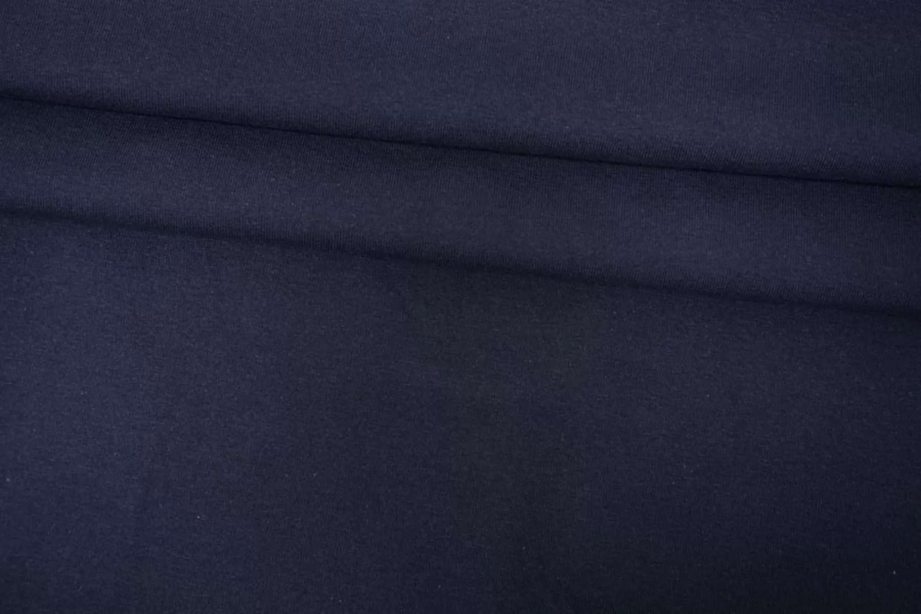Прекрасный трикотаж кулирная гладь с начесом темно-синего цвета. Материал тактильно очень приятный, мягкий и нежный. Тонкий, пластичный. Хорошо тянется и немного просвечивает при растяжении. Форму держит. Красив в складке. Отличный вариант на лонгсливы, воодолазки, спортивные костюмы и домашнюю одежду. Учитывайте возможную усадку.