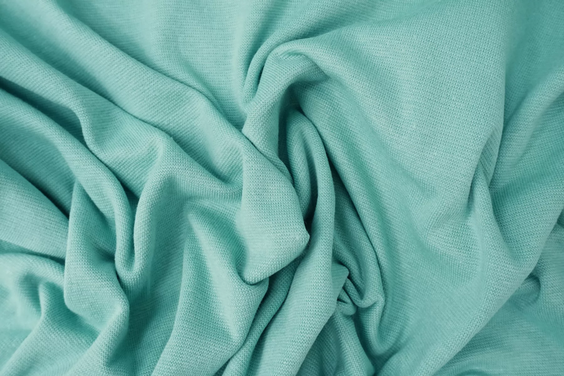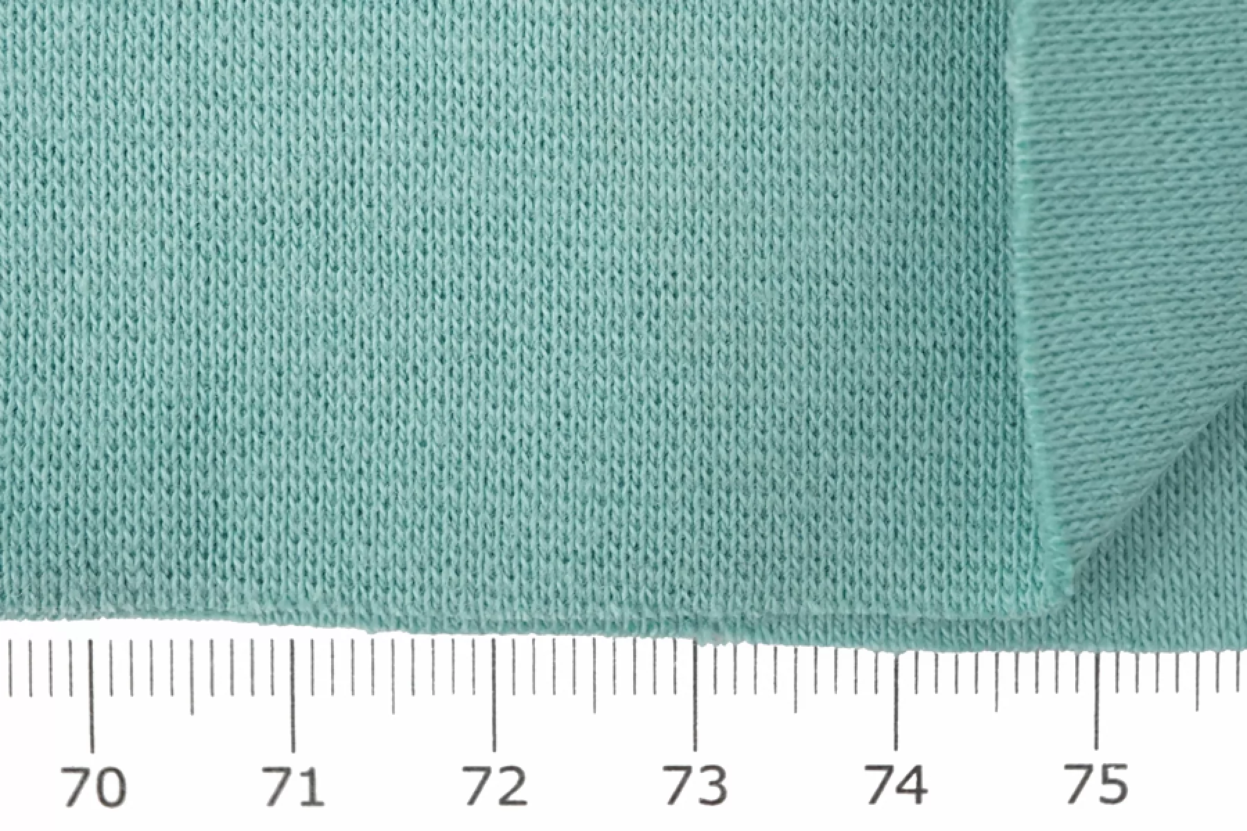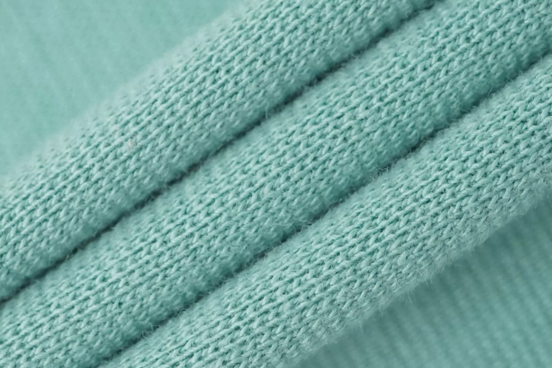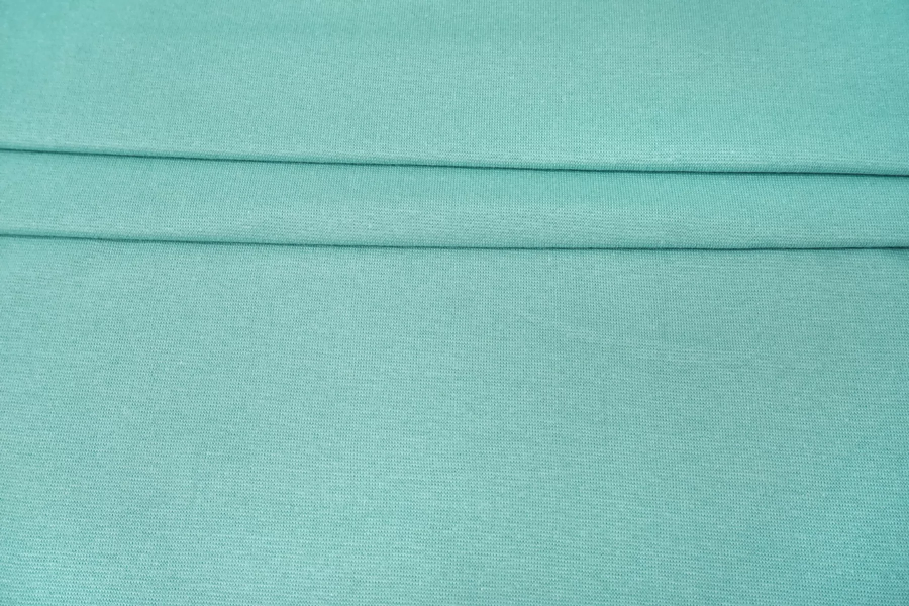 Хлопковый трикотаж - рибана сложного, но красивого оттенка голубой бирюзы. Вязка чулком. Тактильно мягкий, суховатый, пластичный и эластичный. Слегка просвечивает контур силуэта, если смотреть прямо на просвет. Отлично и упруго тянется за счет эластана и плетения. Немного мнется, но восстанавливается. Немного держит форму. Подойдет как вариант для пошива топа, майки, футболки, кофты, платья, детской одежды, а также обработки горловин и манжет.