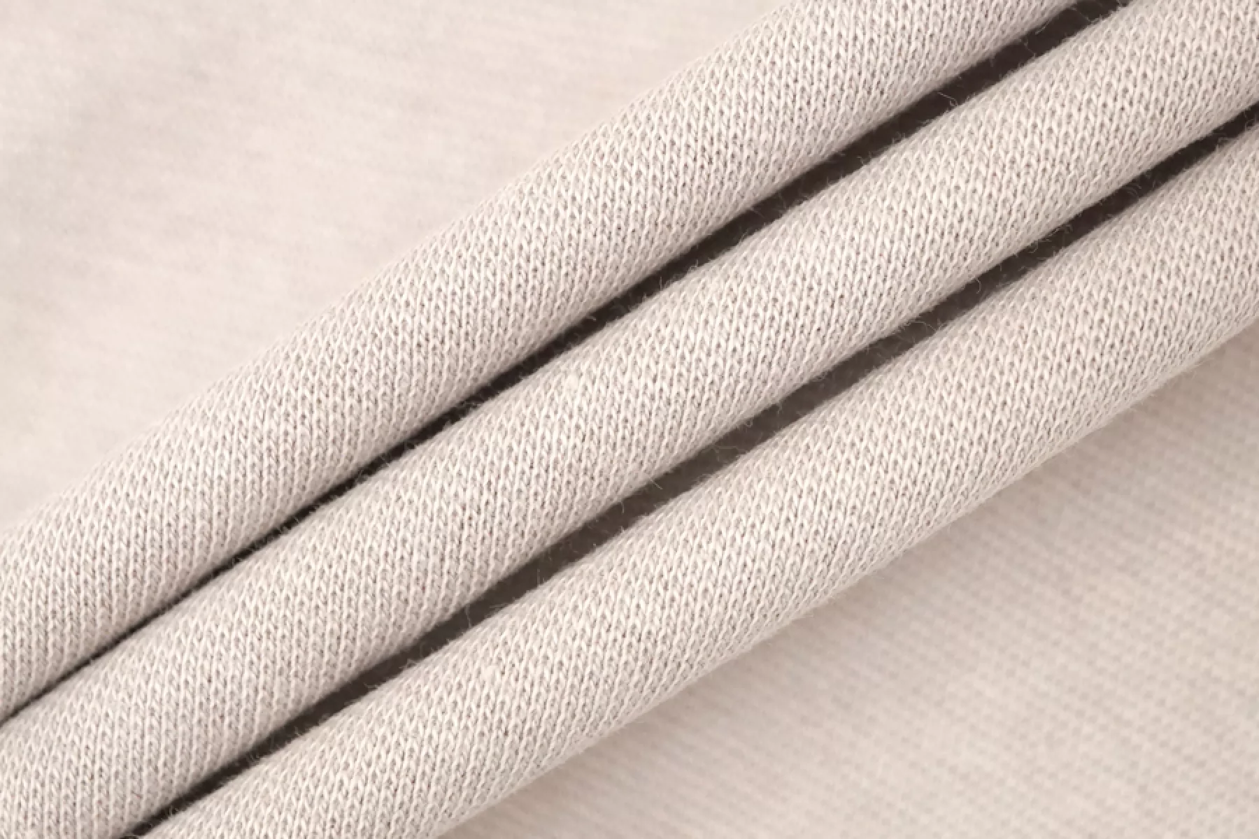 Хлопковый трикотаж - рибана в пудрово-сером оттенке с розовым подтоном. Вязка чулком. Тонкий, пластичный, мягкий, эластичный, слегка суховатый. Просвечивает контур силуэта, если смотреть на просвет. Неплохо тянется за счет эластана. Слегка мнется. Неплохо держит форму. Плотненький. Подойдет для пошива майки, футболки, топа, тонких манжет, подвязов, детской одежды.