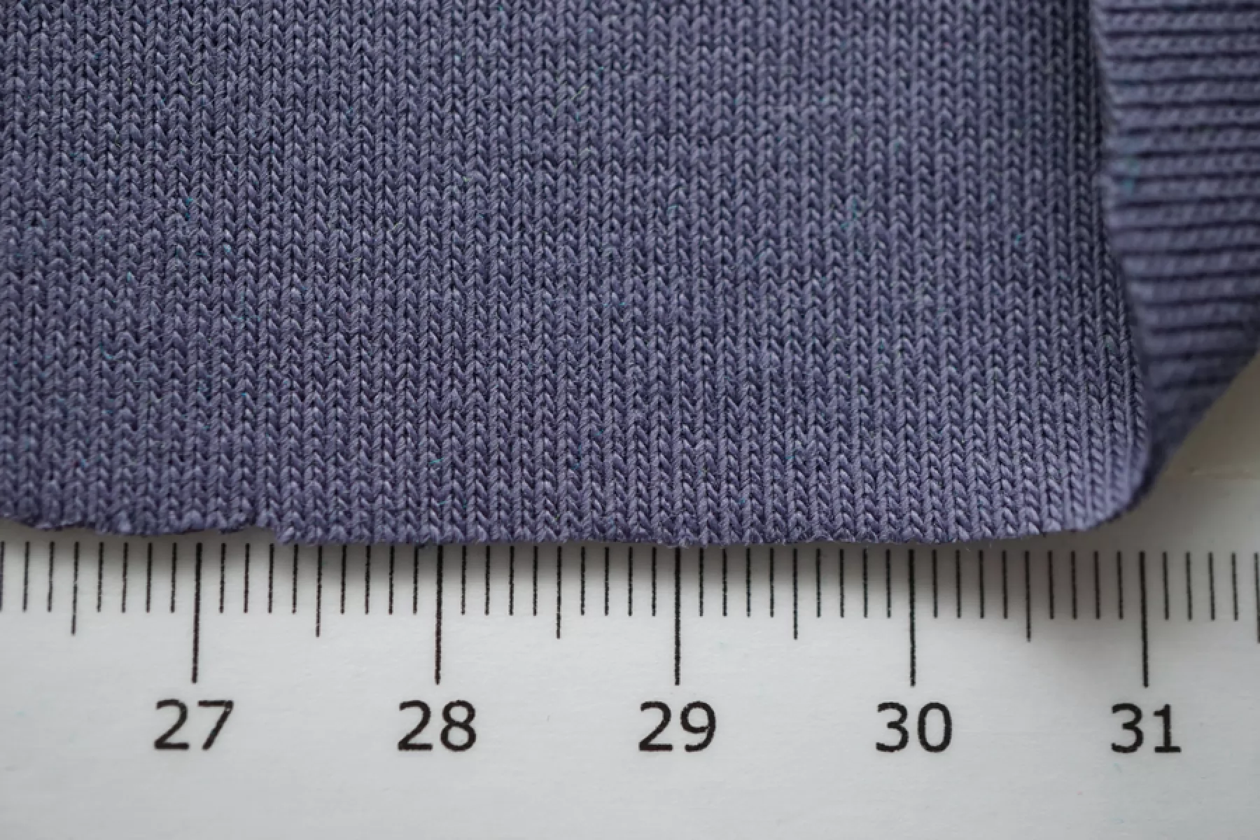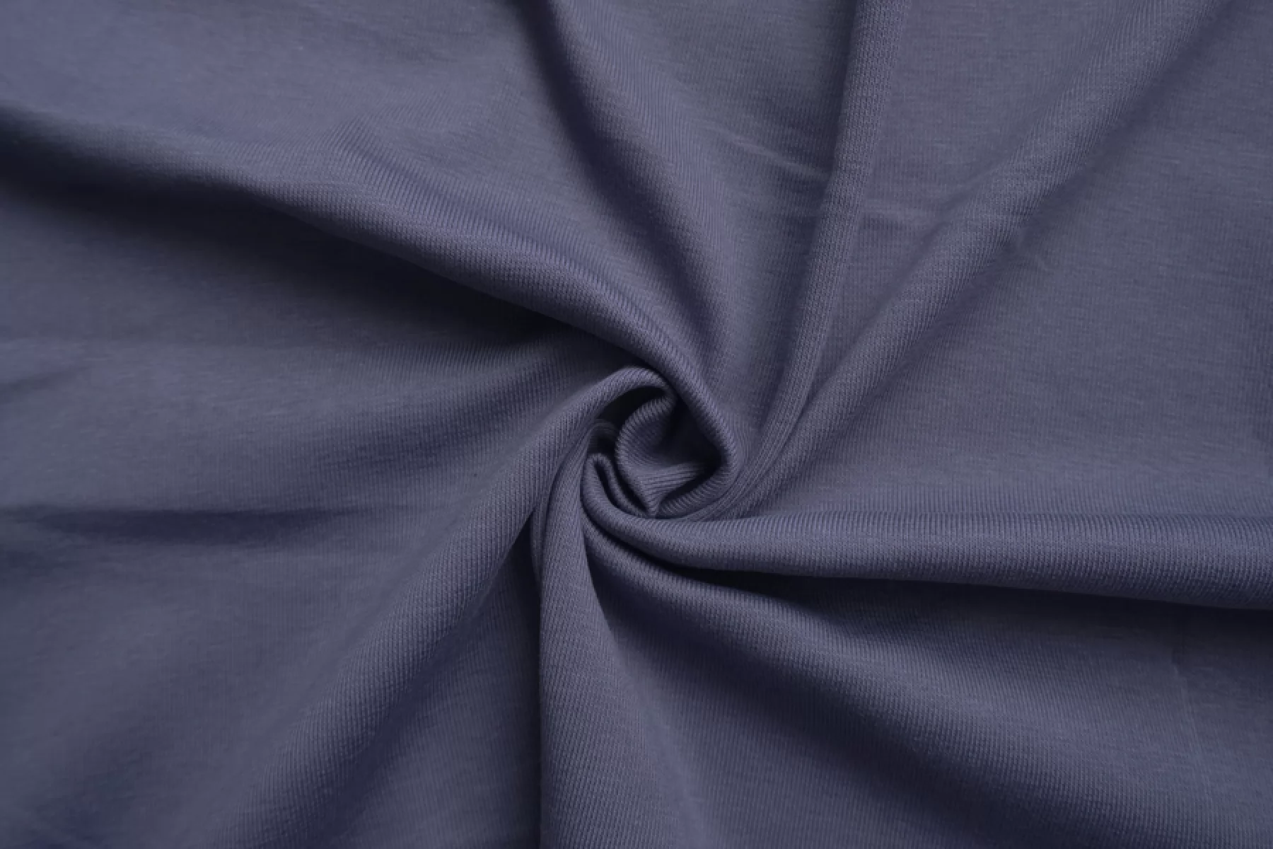 Турецкий трикотаж качества пенье, вязка рибана, цвет серый, с очень легким сиреневым подтоном. Эластичный, пластичный, просвечивает при сильном растяжении, плотность ~300 гр/м2. Подойдет для пошива майки или топа, летней шапочки, манжет, подвязов.