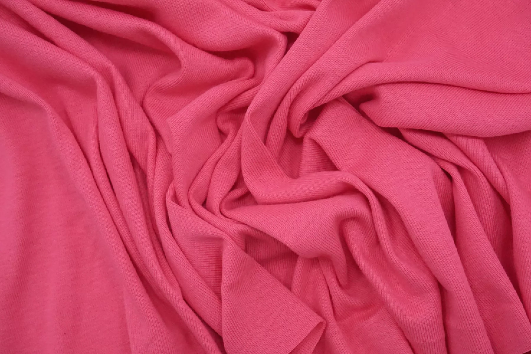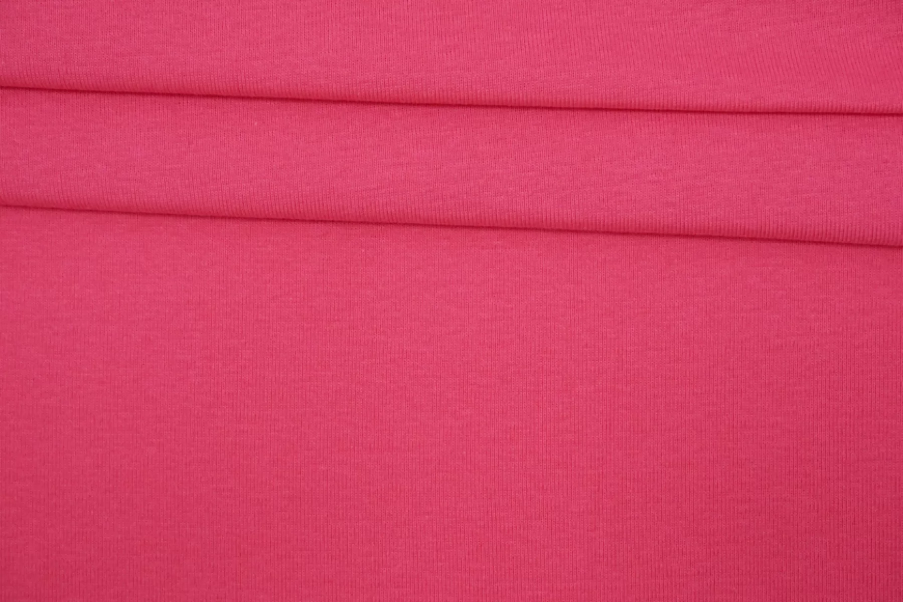 Итальянский хлопковый трикотаж - рибана в красивом ярко-розовом цвете. Тонкий, пластичный, мягкий, эластичный. Подойдет для пошива футболки, топа, майки, водолазки, спортивной и домашней одежды.