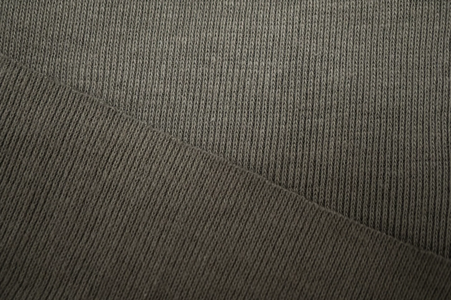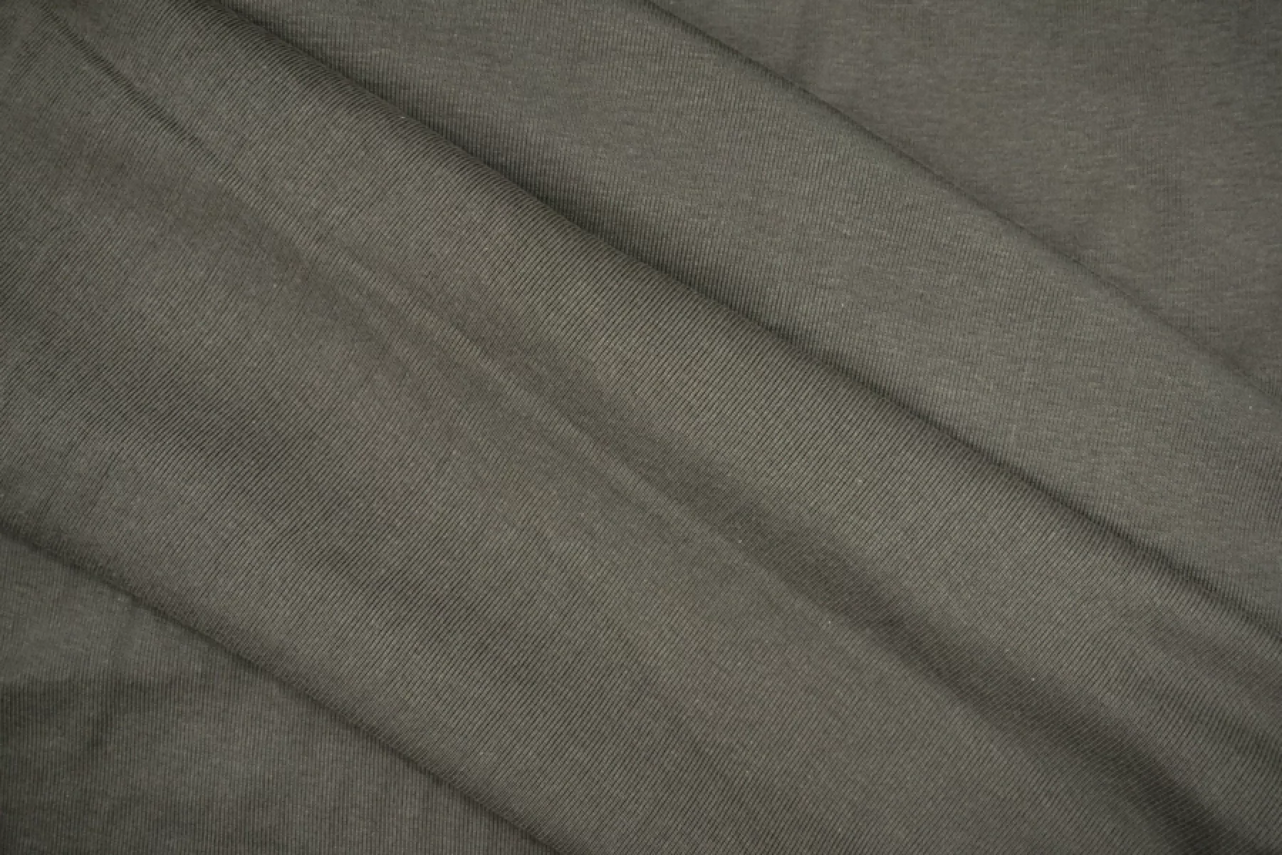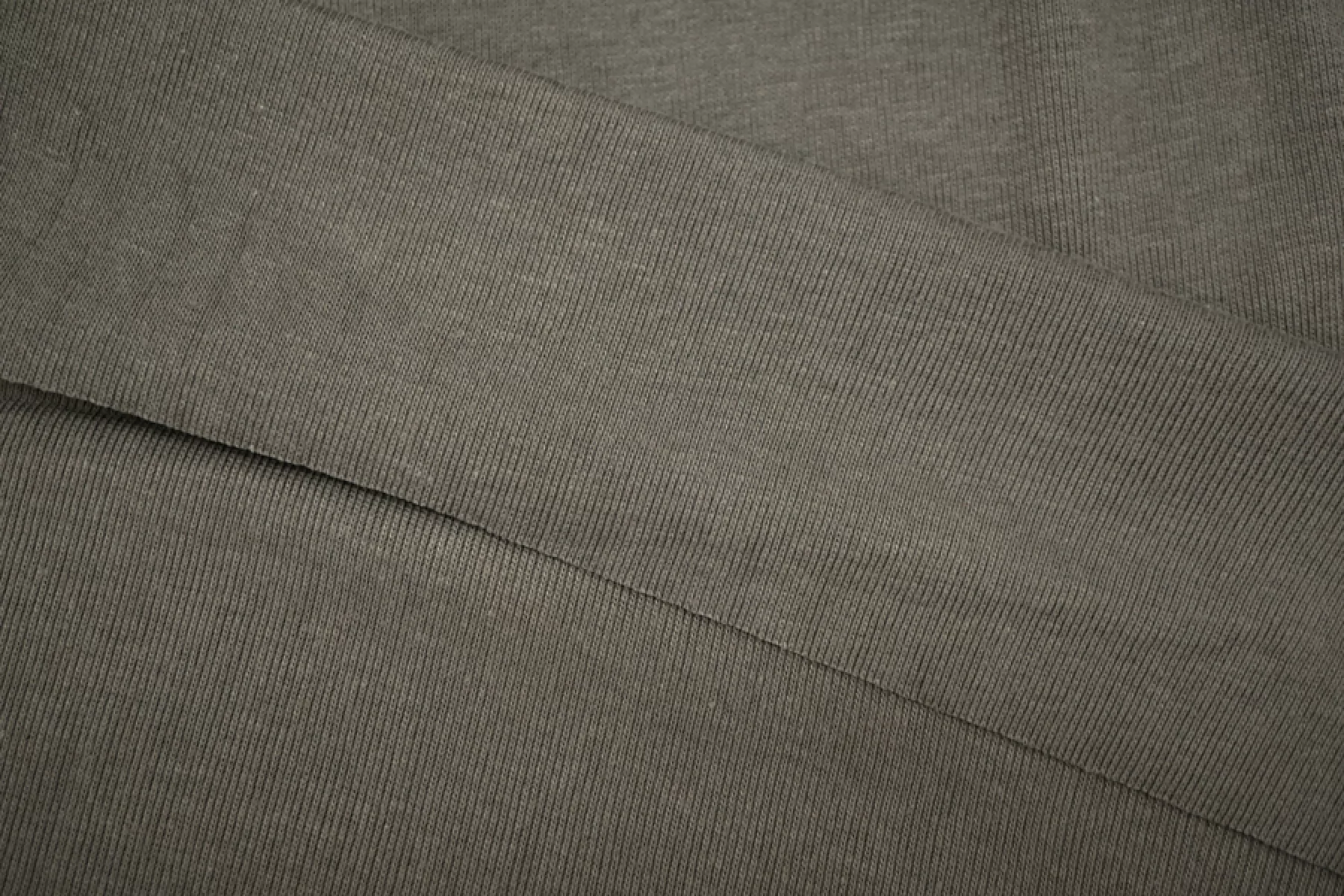 Хлопковый трикотаж - рибана в зеленовато-сером цвете. Вязка чулком. Тонкий, пластичный, мягкий, эластичный. Подойдет для пошива майки, футболки, топа, тонких манжет или подвязов.