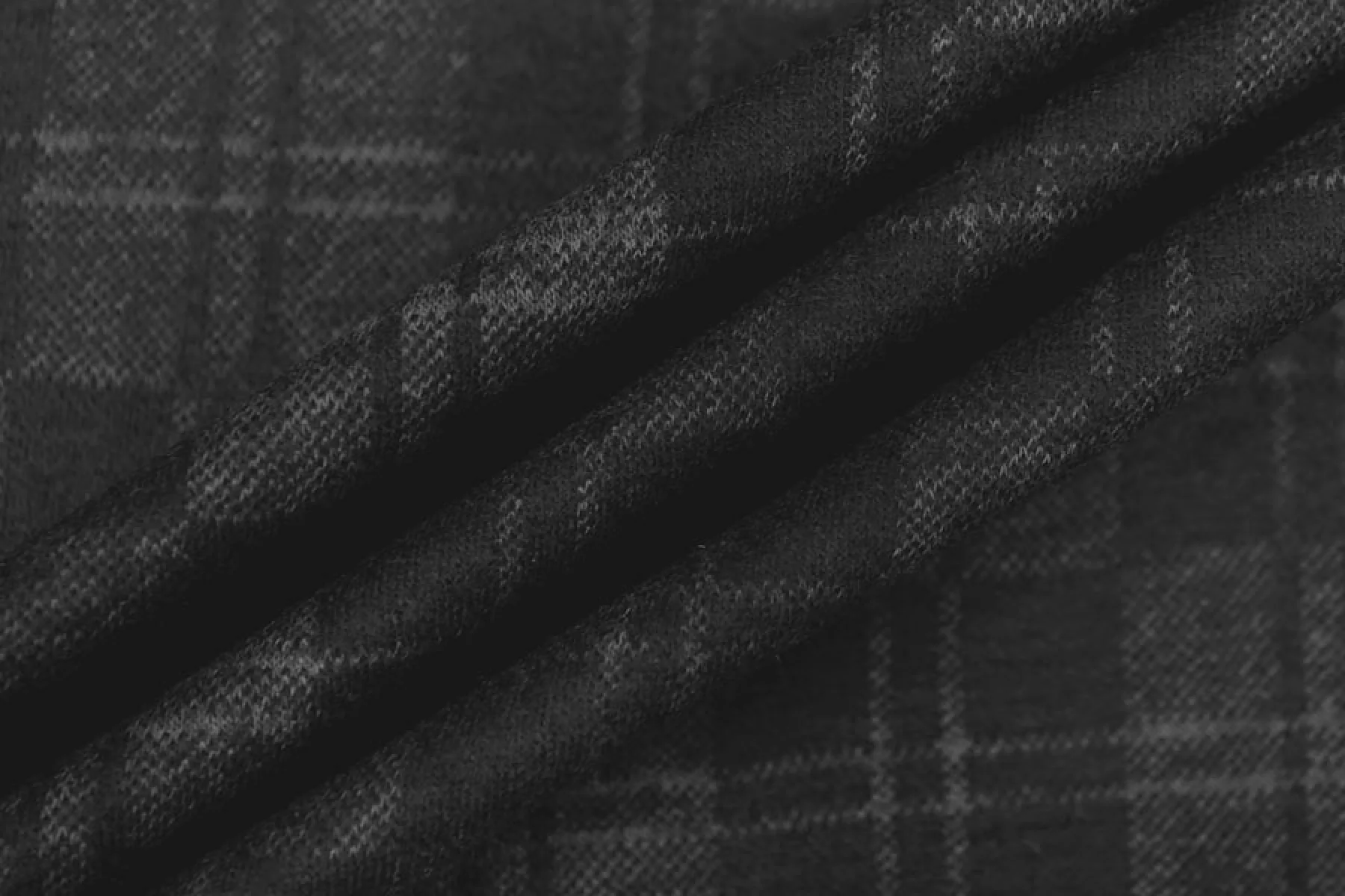 Шикарный шерстяной трикотаж в черную клетку от бренда Donna Karan. Мягкий и приятный наощупь, немного суховатый. Не колется. Совсем немного тянется. Немного просвечивает. Не мнется. Держит форму. Прекрасный вариант теплых трикотажных изделий. Учитывайте возможную усадку. Уход деликатный.