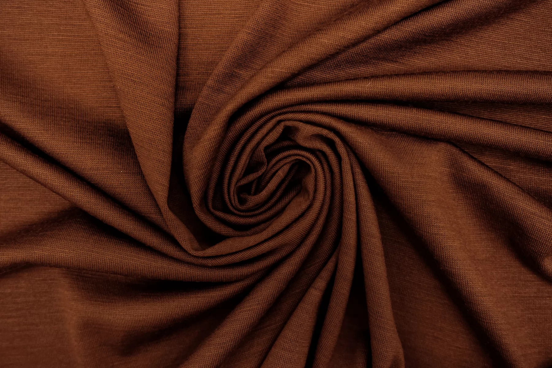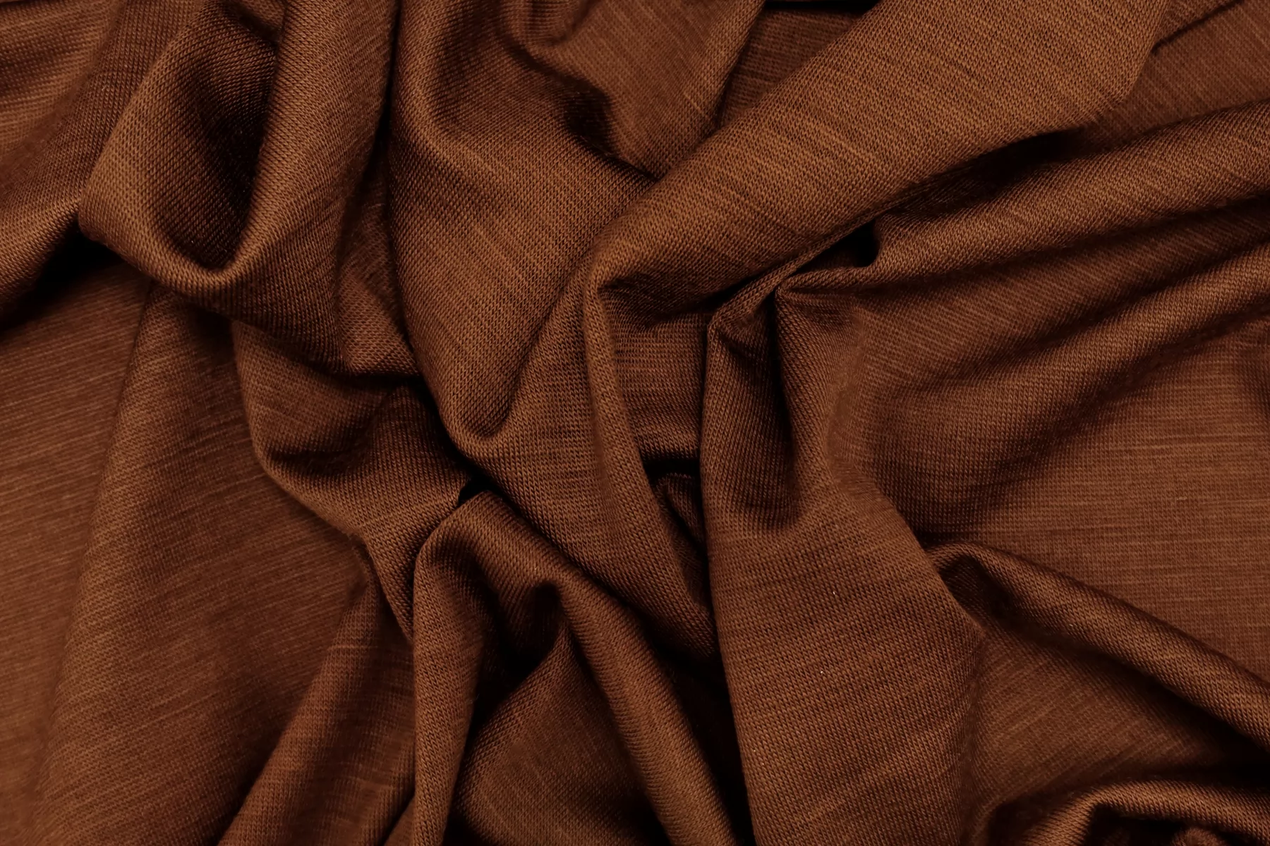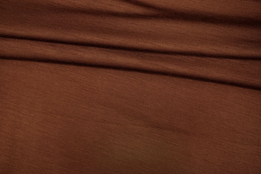 Классный итальянский шерстяной трикотаж в терракотово-коричневом цвете. По вязке кулирная гладь. С красивым лоском. Материал тактильно очень приятный, гладкий и мягкий. Эластичный, пластичный. Не просвечивает. Прекрасно драпируется и держит форму. Классный вариант на греющие лонгсливы, футболки, платья, брюки. Уход деликатный.