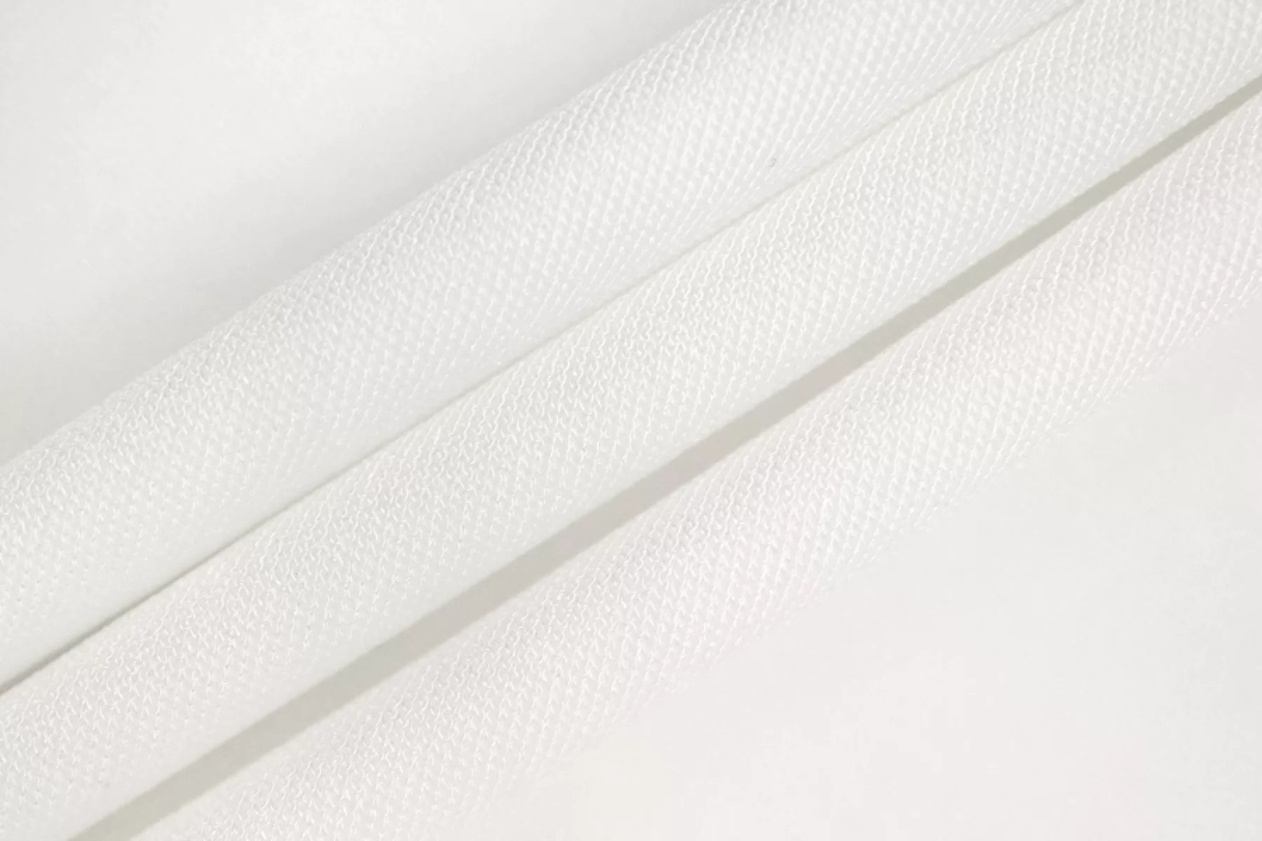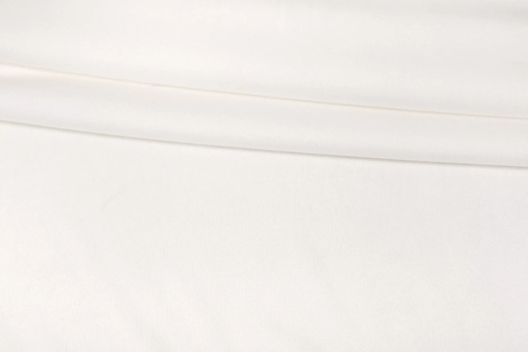 Прекрасный холодный трикотаж от бренда Roberto Cavalli в белом цвете. Одинаковое плетение с обеих сторон. Тонкий, с отблеском, холодный, гладкий тактильно, струящийся. Немного просвечивает, не мнется, плетение средней эластичности. Подойдет для пошива платья (учтите что материал тонкий), юбки, футболки, майки, можно использовать в качестве подкладочного материала (сшить нижнее платье-комбинацию под прозрачные материалы).