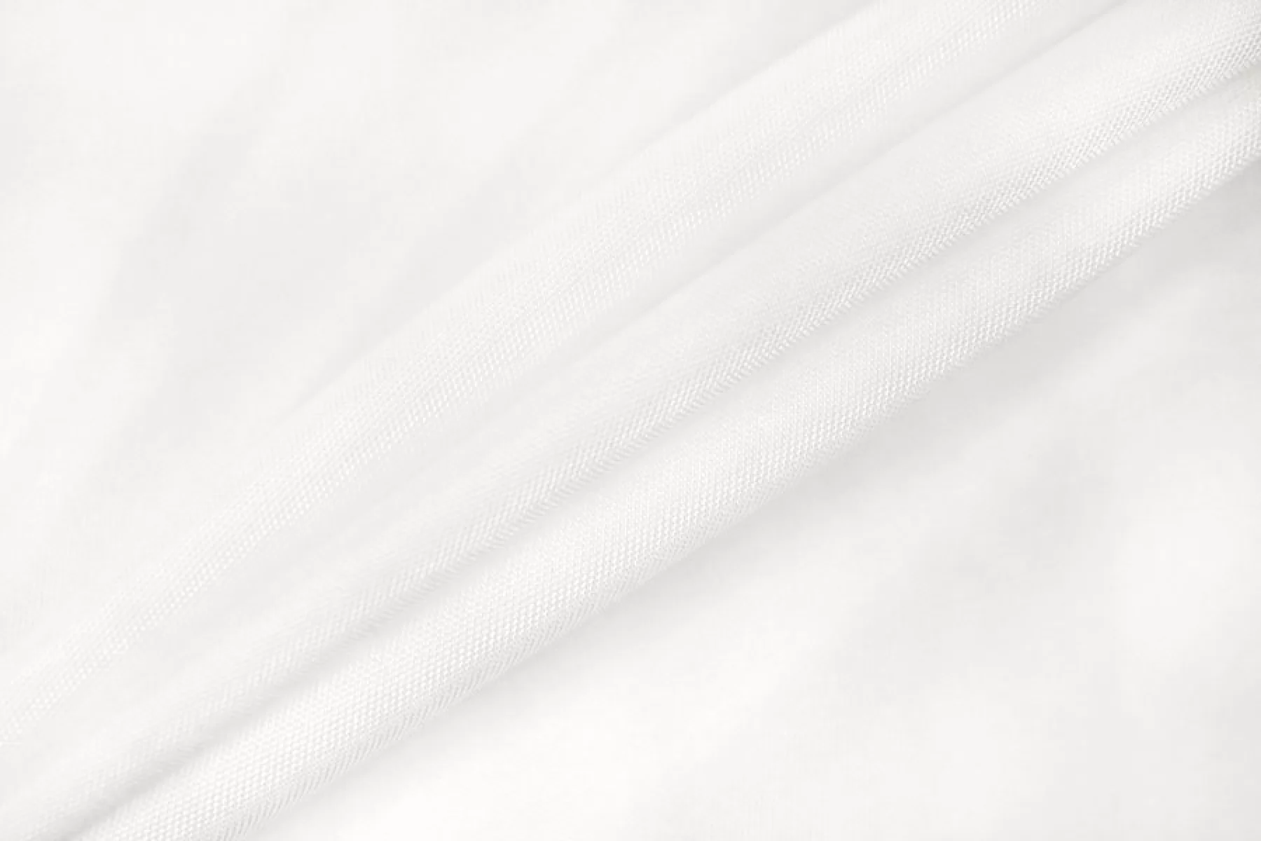 Холодный вискозный трикотаж от бренда Roberto Cavalli в белом цвете. Тонкий. Холодный, гладкий, скользкий, струящийся. Эластичный, просвечивает, не мнется, обладает лоском. Подойдет для пошива платья (нужна подкладка или многослойность), юбки, футболки, майки, можно использовать в качестве подкладочного материала.