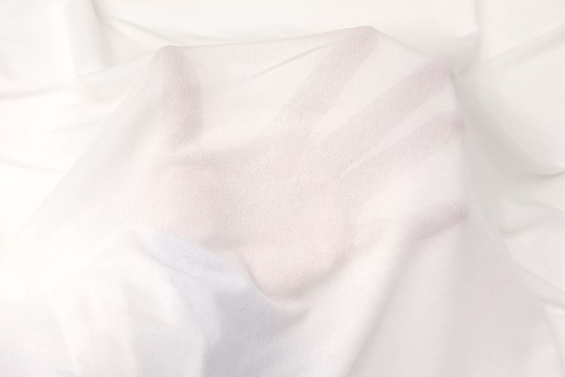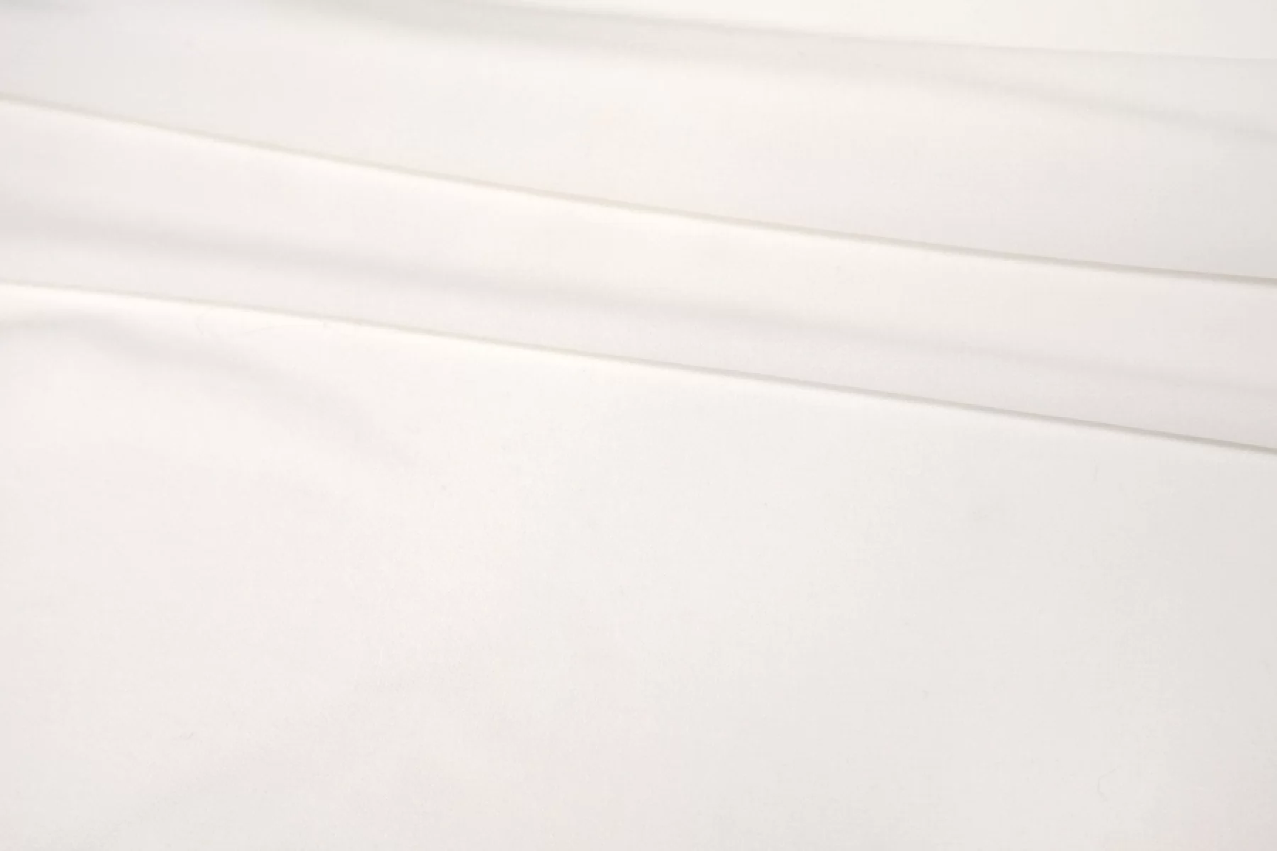 Холодный вискозный трикотаж от бренда Roberto Cavalli в приглушенном белом цвете (слегка сероватом). Одинаковое плетение с обеих сторон. Тонкий. Холодный, шероховатый тактильно, струящийся. Эластичный, немного просвечивает, не мнется. Подойдет для пошива платья (нужна подкладка или многослойность), юбки, футболки, майки, можно использовать в качестве подкладочного материала.