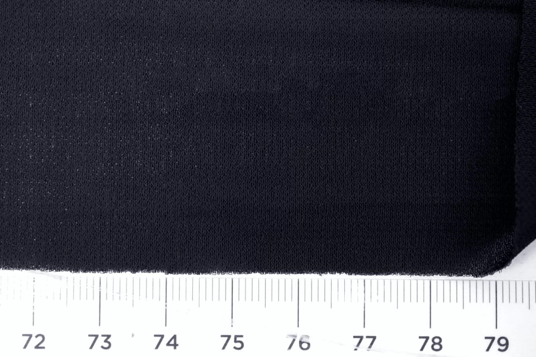 Холодный вискозный трикотаж от бренда Roberto Cavalli в темно-синем цвете. Тонкий. Холодный, шероховатый тактильно, струящийся. Эластичный, просвечивает, не мнется. Подойдет для пошива платья (нужна подкладка или многослойность), юбки, футболки, майки, можно использовать в качестве подкладочного материала.