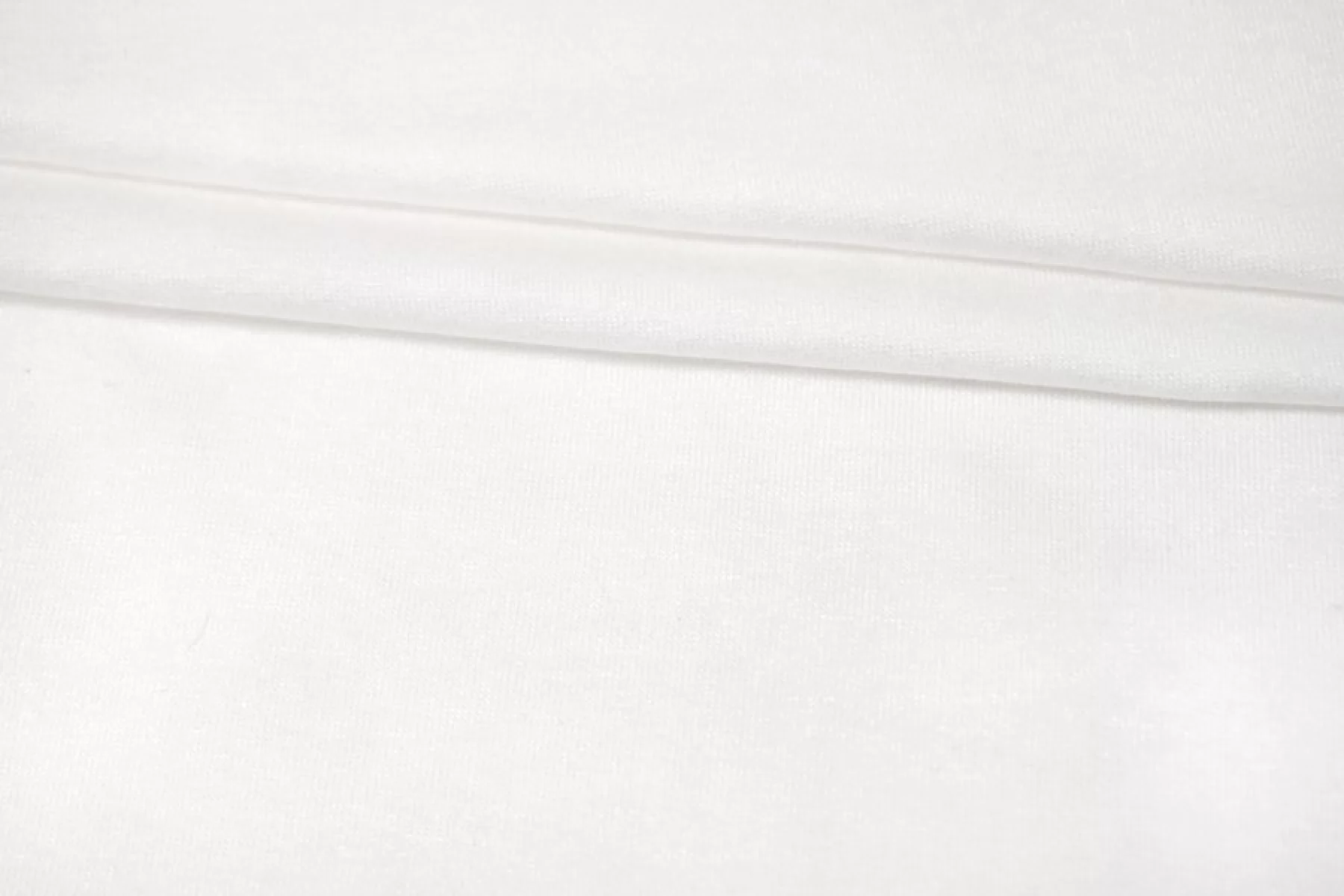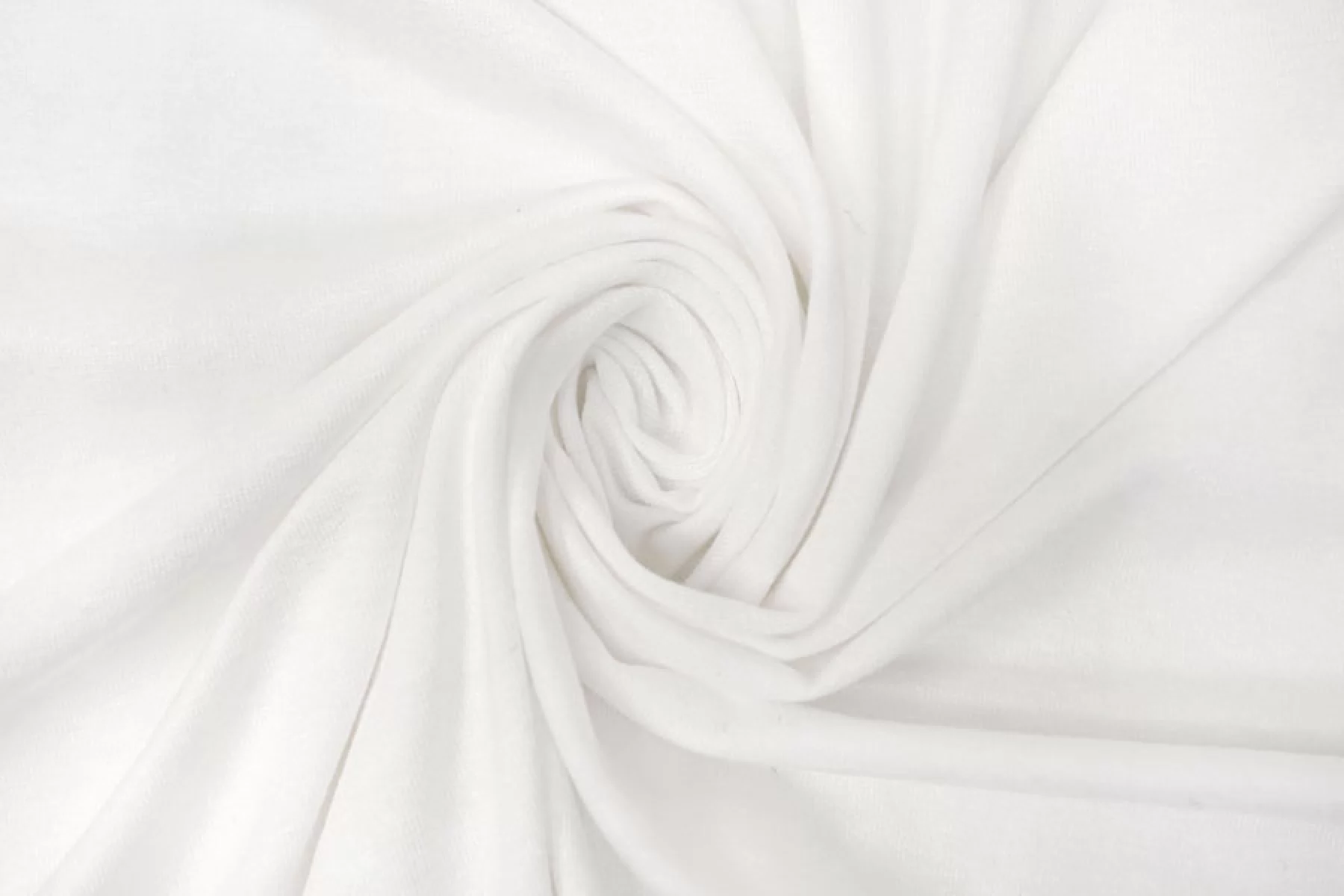 Шикарный вискозный трикотаж кулирная гладь белого цвета. Тактильно невероятно мягкий (как будто даже слегка бархатистый), пластичный, приятный. С красивым лоском. Просвечивает силуэт. Не сминается. Отлично тянется. Форму держит. Вариант на футболки, майки, туники и не только. Учитыйвайте возможную усадку.