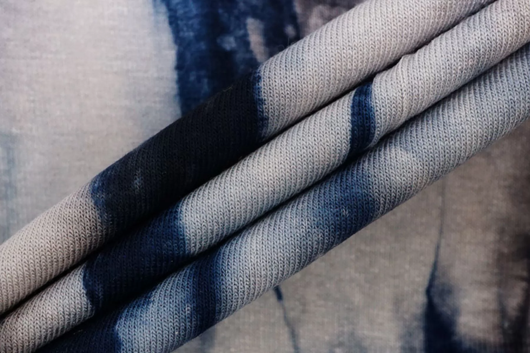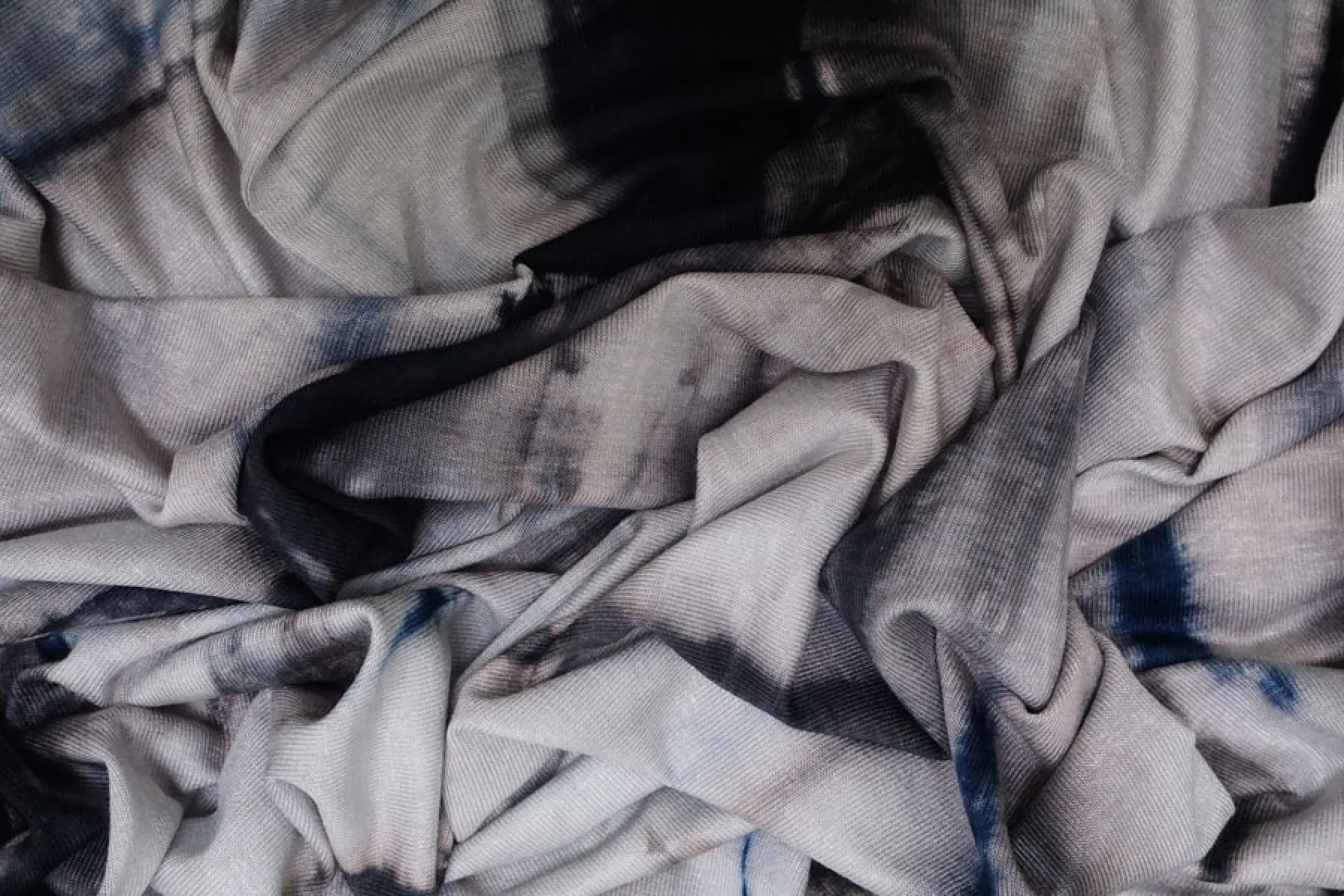 Трикотаж вискозный кулирка Тай-дай сине-серо-сиреневый BNC H43/5 W40 21052543