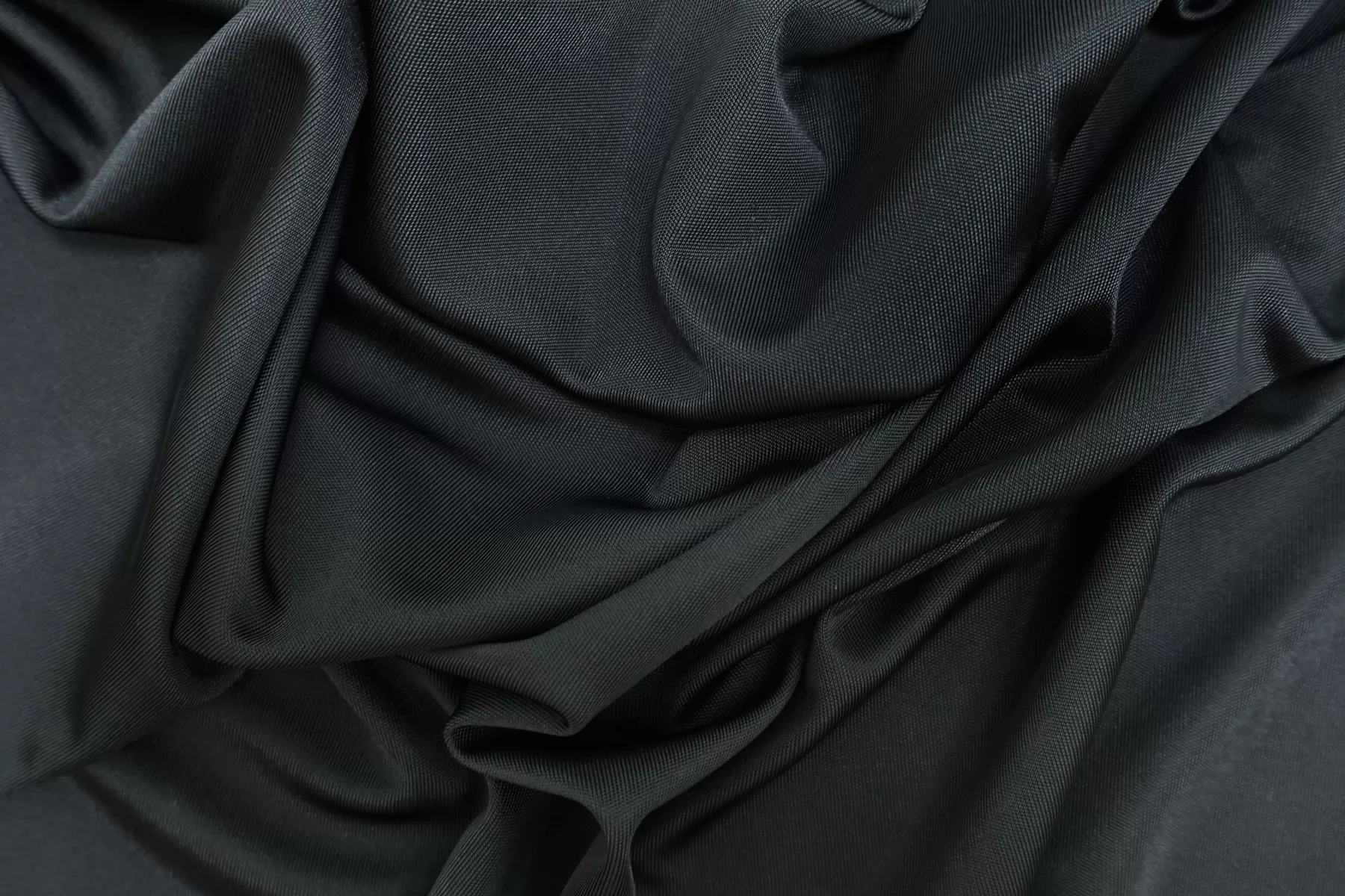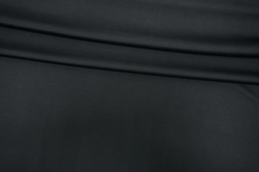 Шикарный вискозный трикотаж-масло в очень тёмном, почти чёрном графитовом цвете. С красивым нарядным лоском. Тонкий. Струящийся, скользкий. Хорошо тянется, немного просвечивает, не мнется. Подойдет для пошива платья, юбки, футболки, майки, можно использовать в качестве подкладочного материала (сшить нижнее платье-комбинацию под прозрачные материалы).