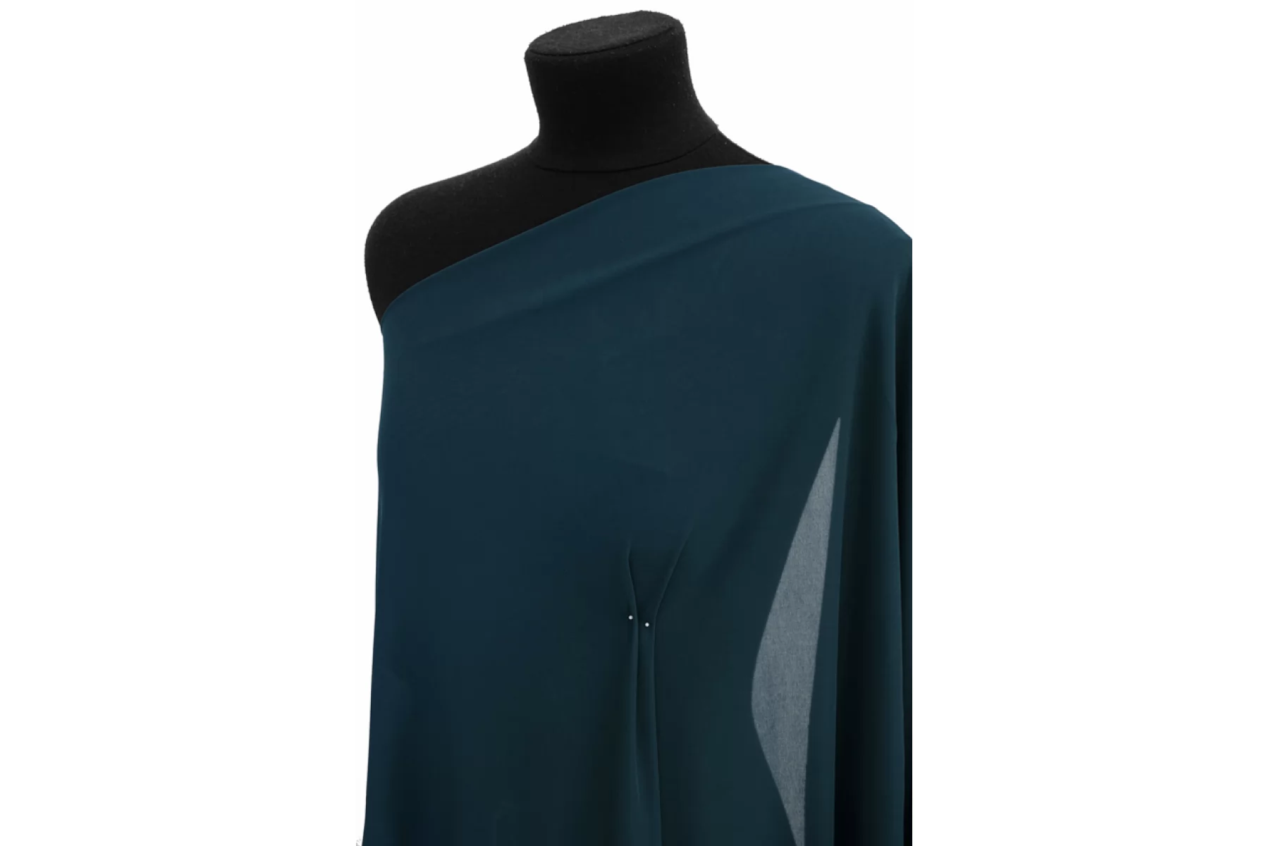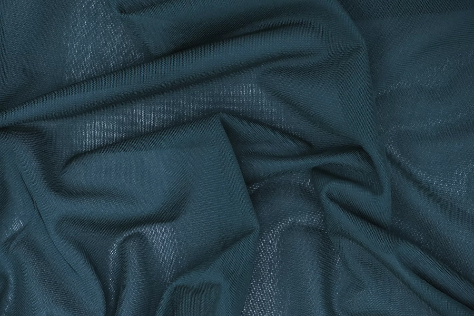 Тонкий вискозно-подкладочный трикотаж глубокого бирюзово-зеленого оттенка. Материал мягкий и тонкий, прозрачный, гладкий и скользящий, тактильно приятный. Очень хорошо тянется благодаря своему плетению и содержанию эластана. Просвечивает. Форму не держит. В драпировке смотрится отлично. Использовать в качестве подкладки для тонких шифоновых изделий, для изделий из трикотажа. Либо для изделий в бельевом стиле. Обязательно учитывайте возможную усадку на 5-10%