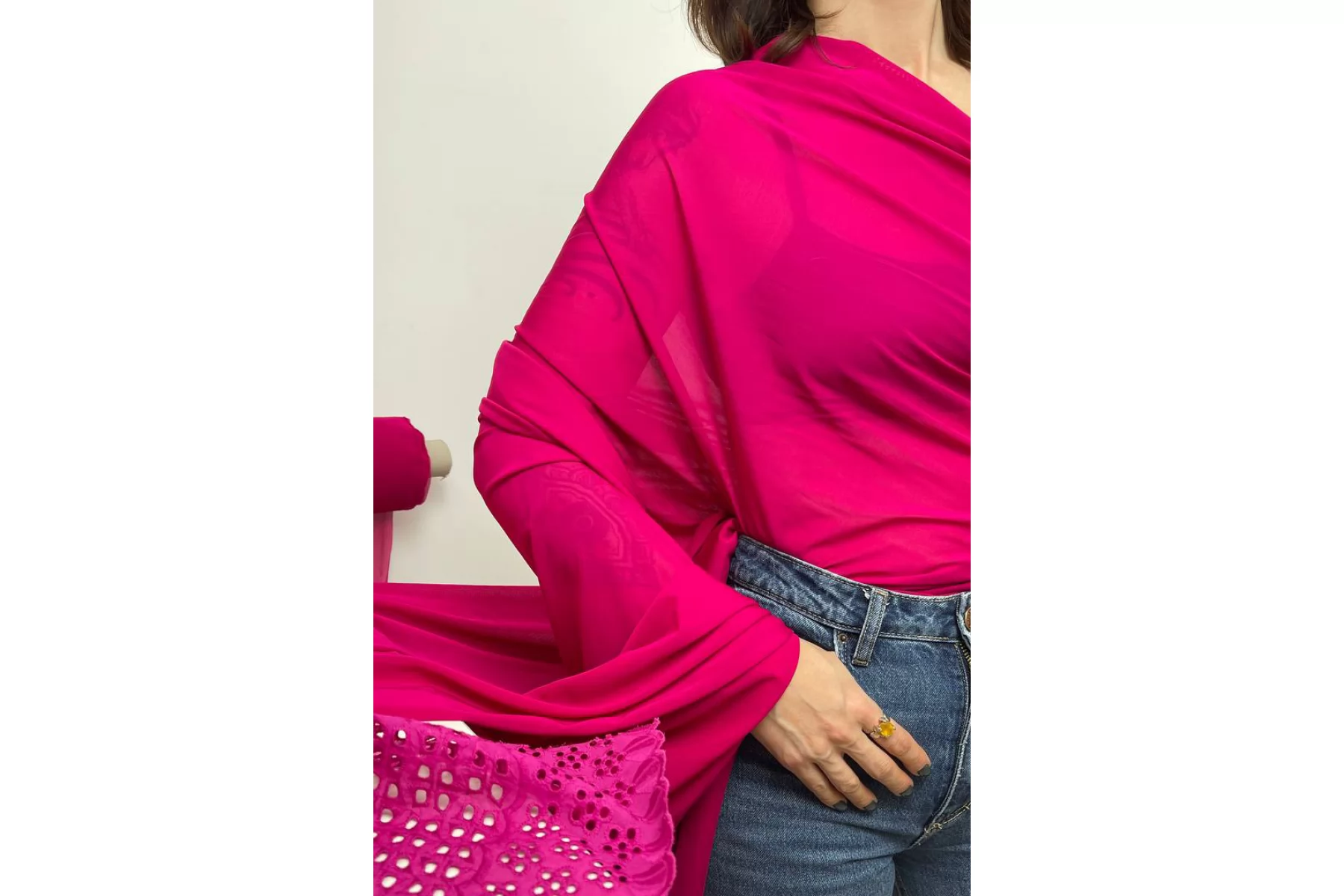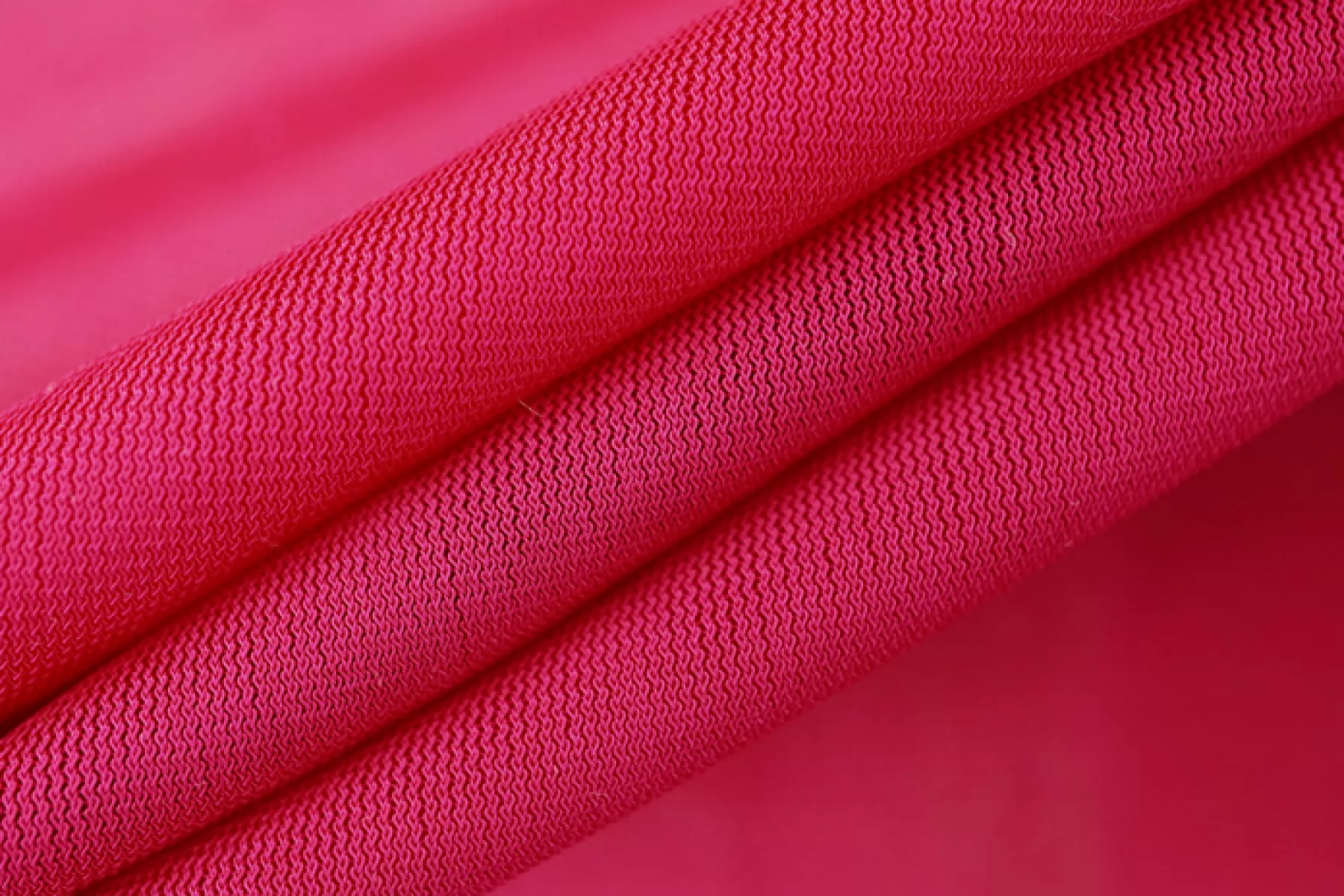 Красивый тонкий вискозный трикотаж насыщенного розового оттенка. Материал мягкий, тонкий, гладкий, приятный на ощупь. Хорошо тянется за счет своего плетения и содержания эластана. Просвечивает. Форму не держит, но в драпировке отлично смотрится. Используем в качестве подкладки для тонких шифоновых изделий или для изделий из трикотажа. Либо можно использовать для изделий в бельевом стиле. Обязательно учитывайте возможную усадку на 5-10%