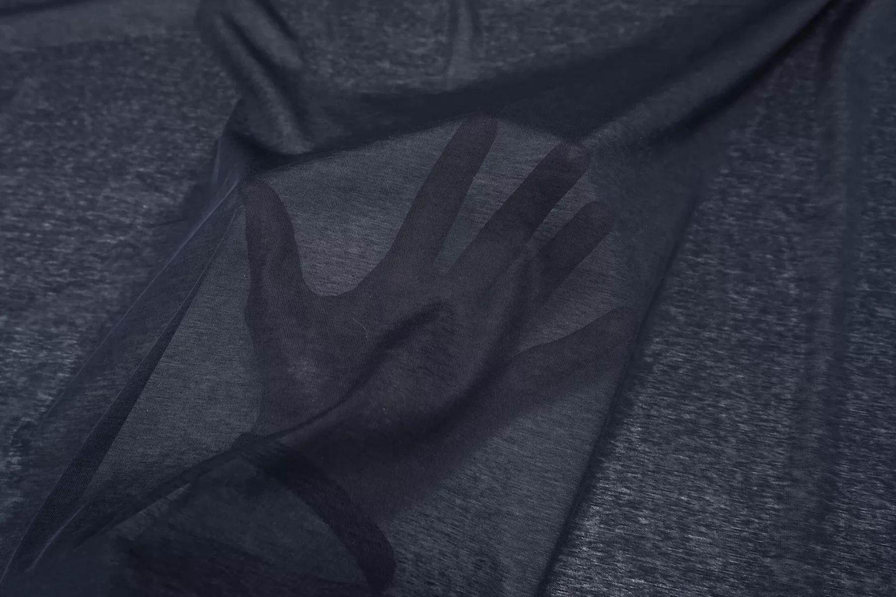 Классный вискозный тонкий трикотаж кулирная гладь в темно-синем оттенке. Тактильно приятный, гладкий. С красивым легким блеском. Пластичный. Хорошо тянется. Просвечивает. Форму не держит. Шьем платья, кофты, костюмы, юбки и брюки на резинке и не только. При необходимости используйте подкладочный материал. Обязательно учитывайте усадку 5-10%.