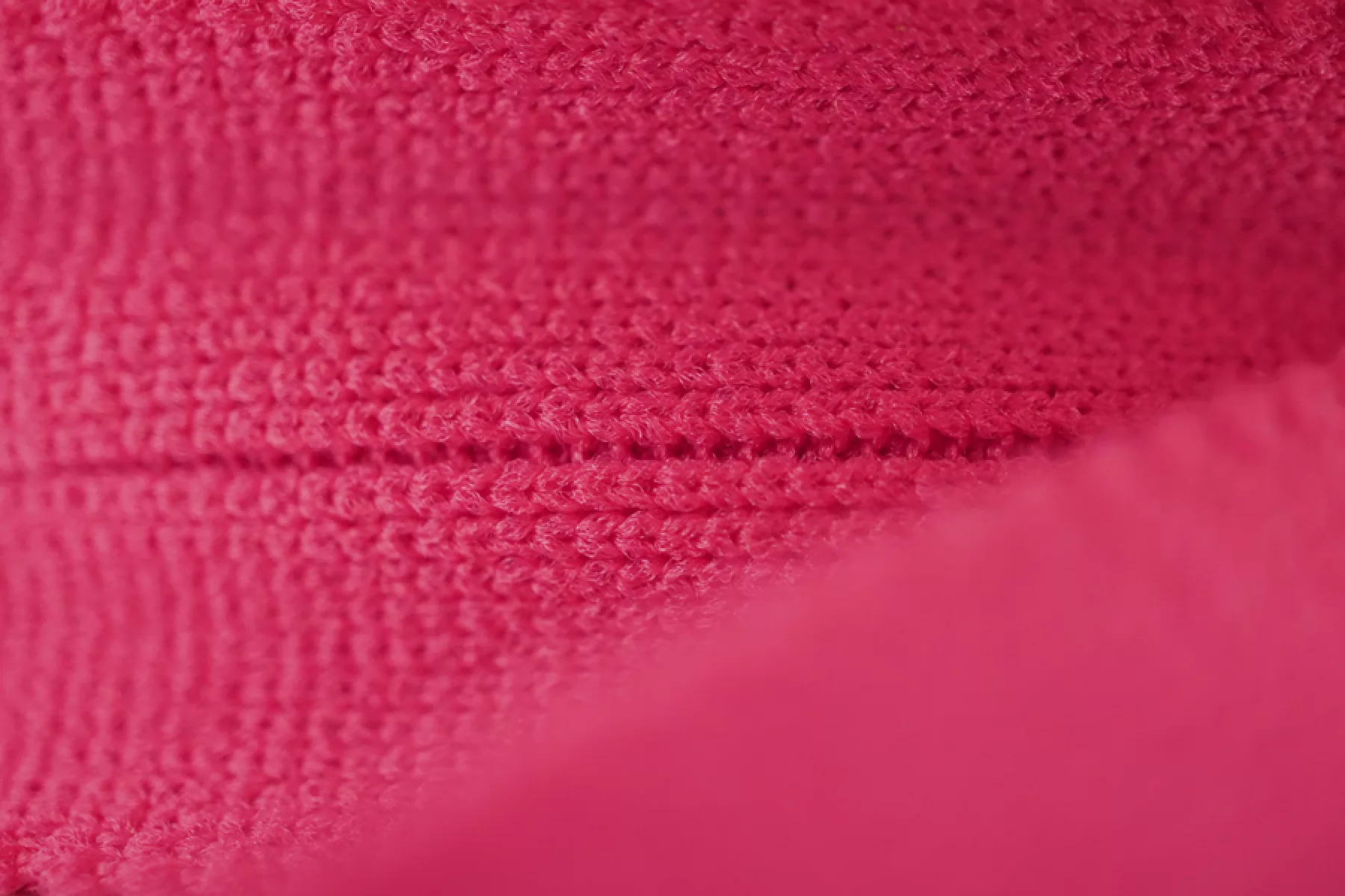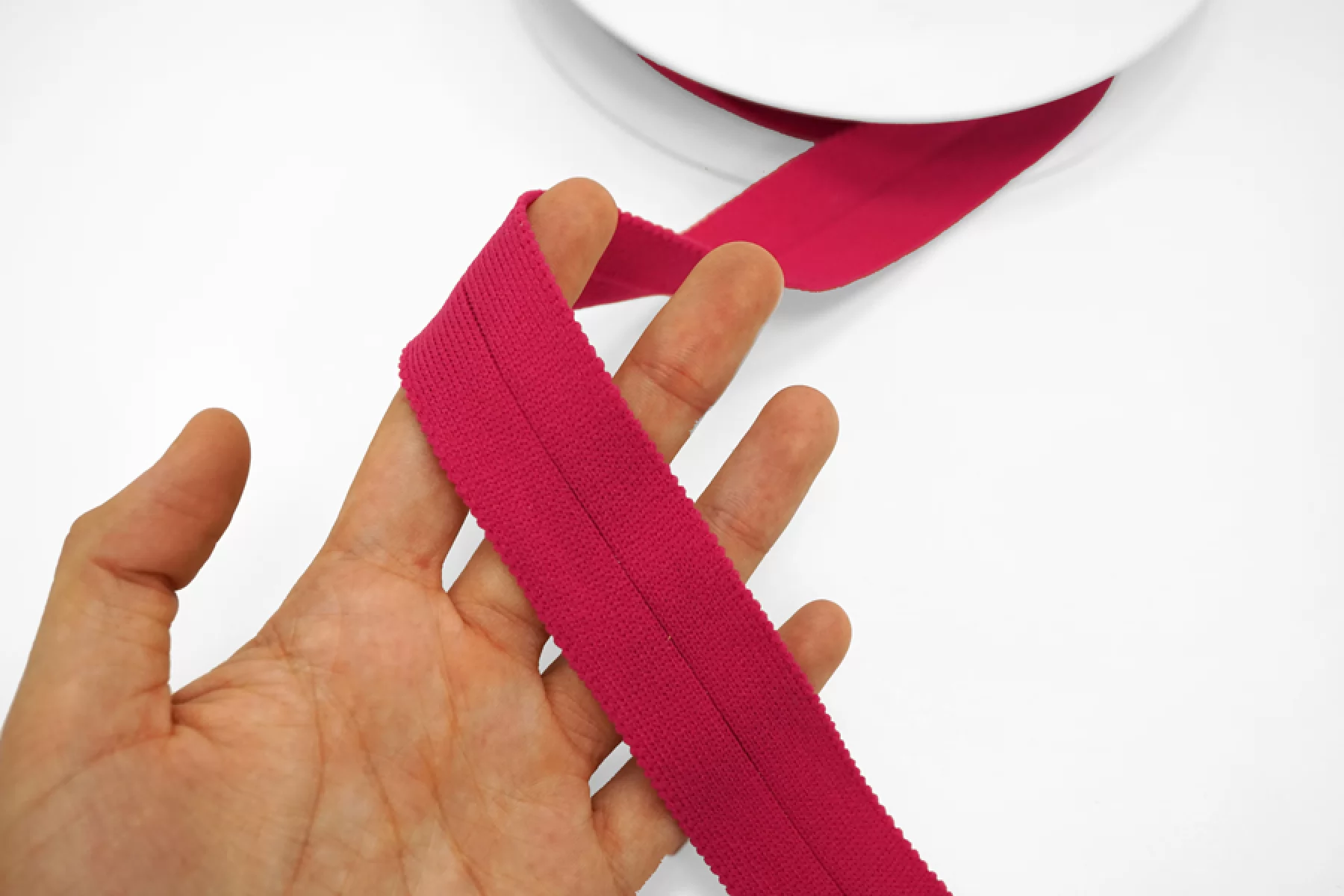 Мягкая трикотажная тесьма розового цвета фуксии, шириной 3 см. Трикотажное плетение растягивается не в длину, а поперек.