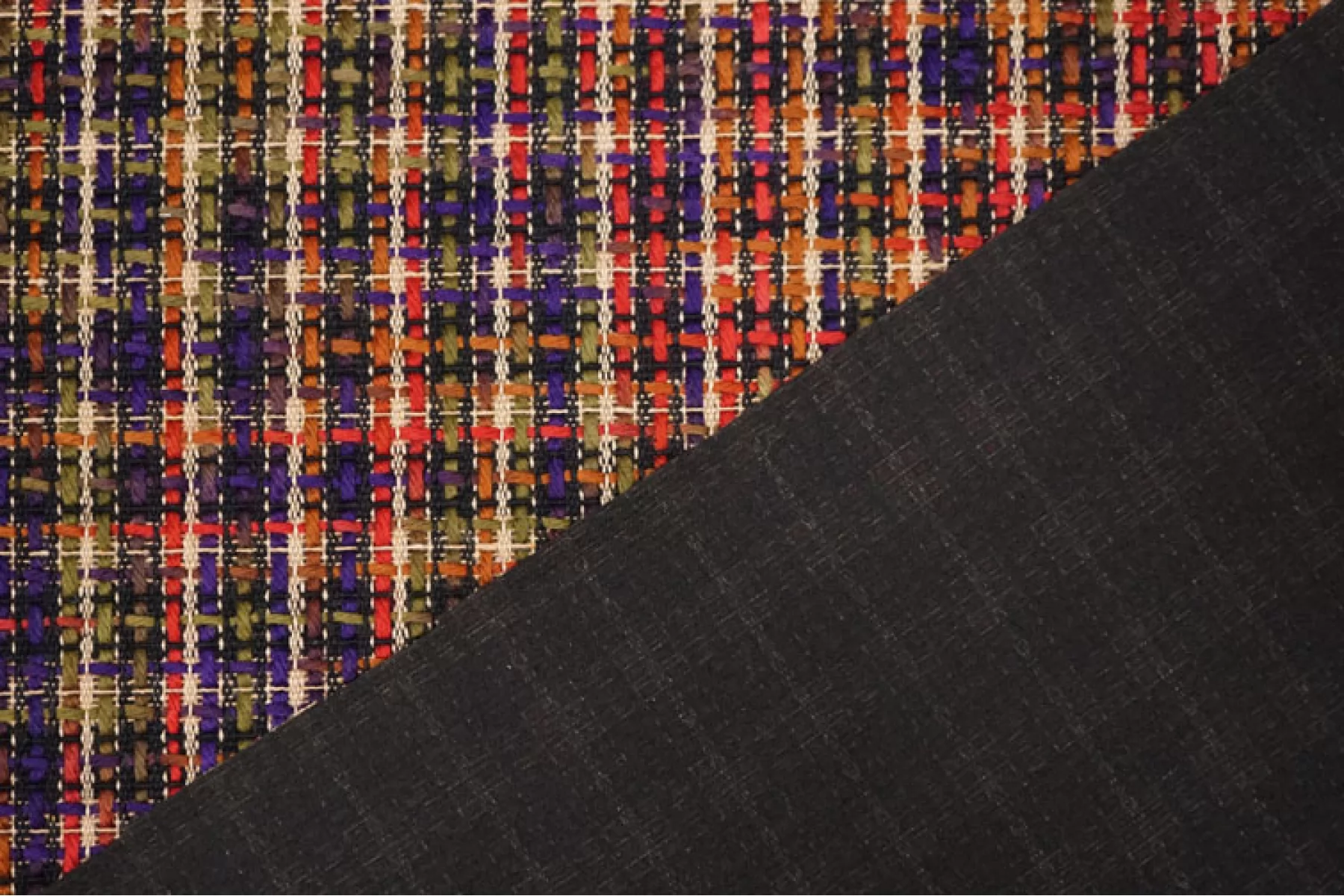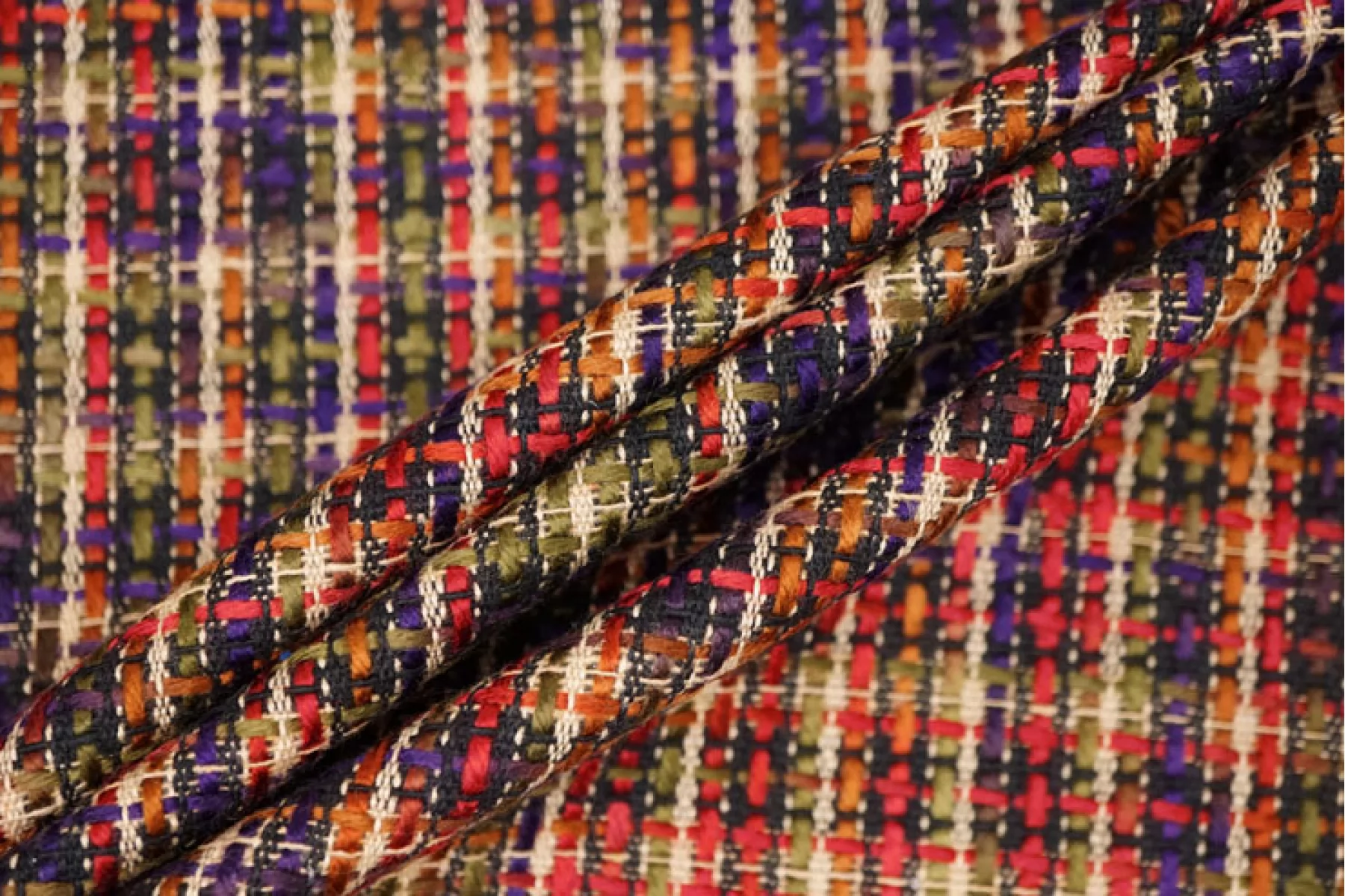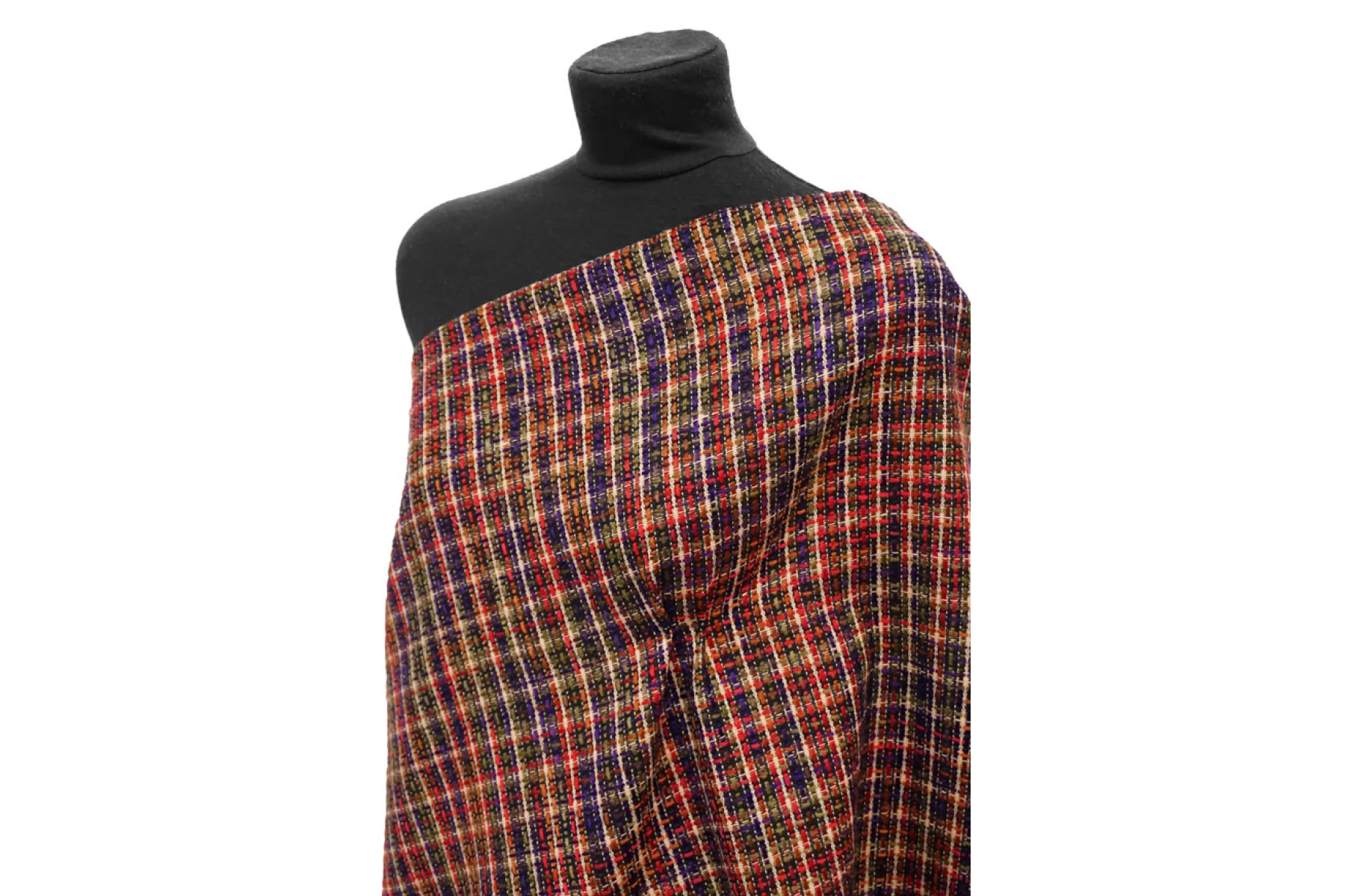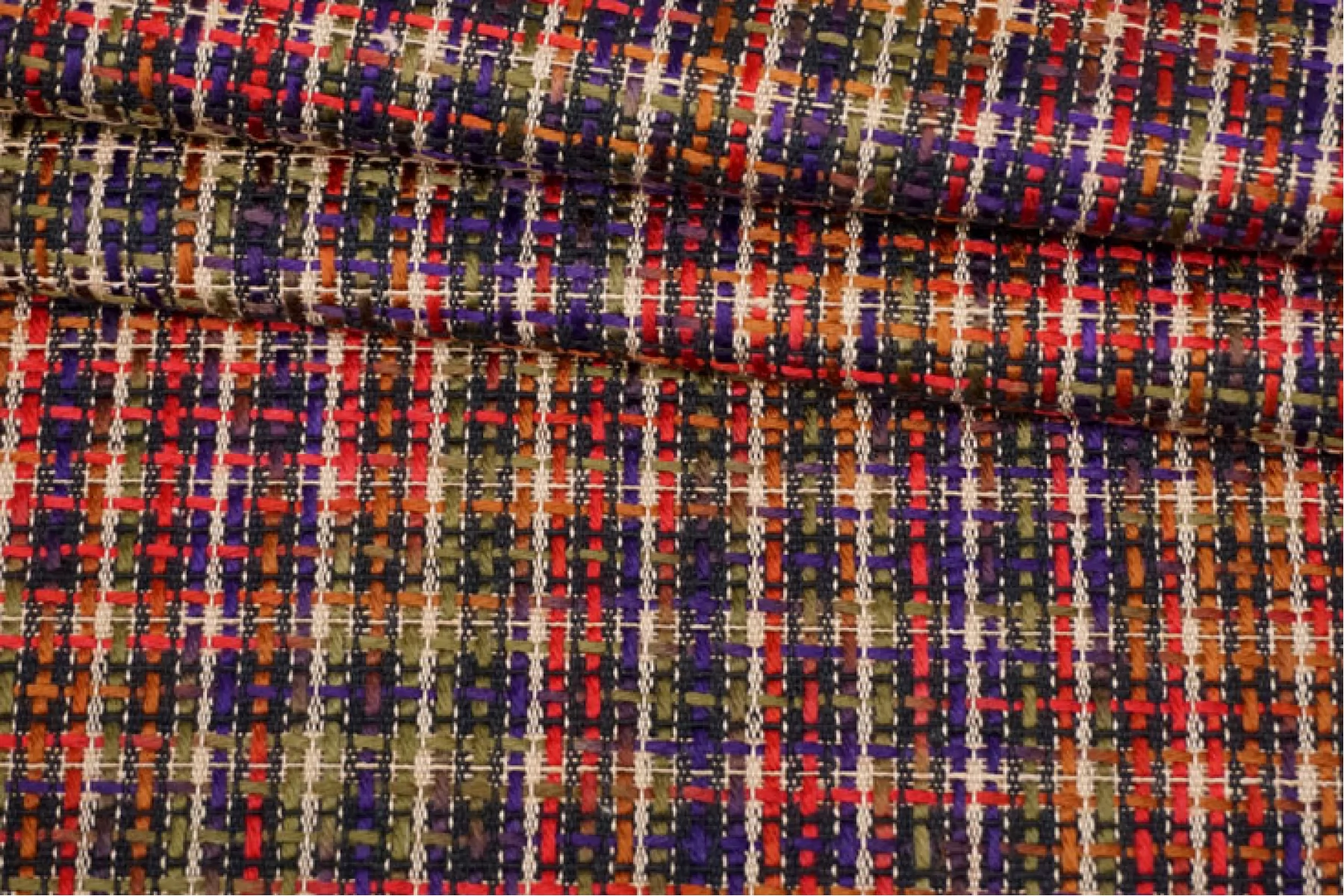 Необычный твид на дублерине в оттенках фиолетового, бежевого, оливкового, темно-красного и не только. В полотне переплетаются как более толстые нити, так и тонкие. Образуется рисунок некрупной клетки. Мягкий, с нежным лоском. Не тянется. Не мнется. Не просвечивает. Хорошо драпируется и держит форму. Вариант на юбки, жакеты, костюмы и легкие пальто.