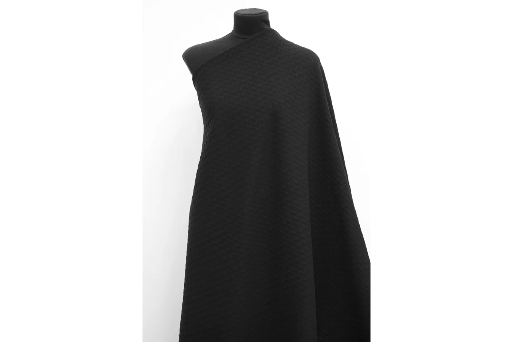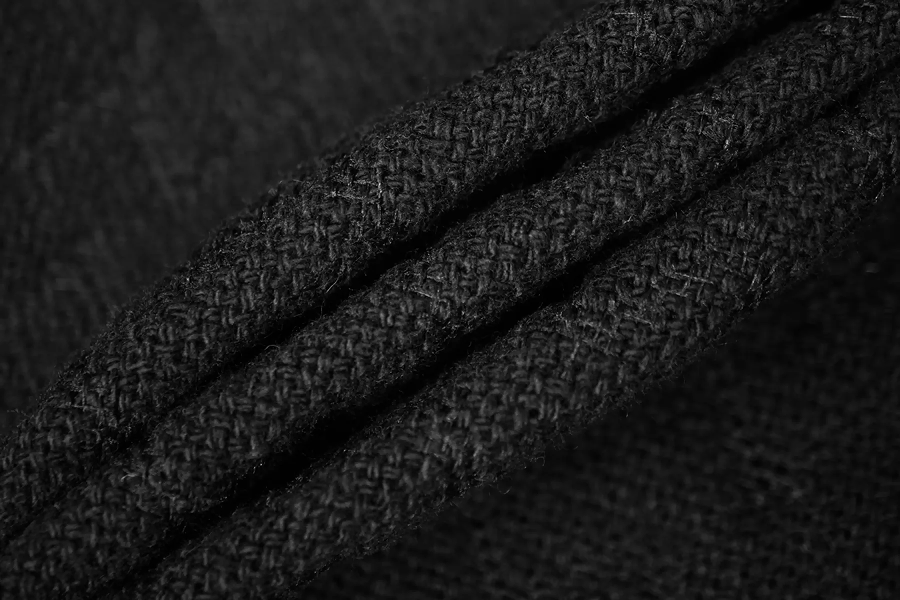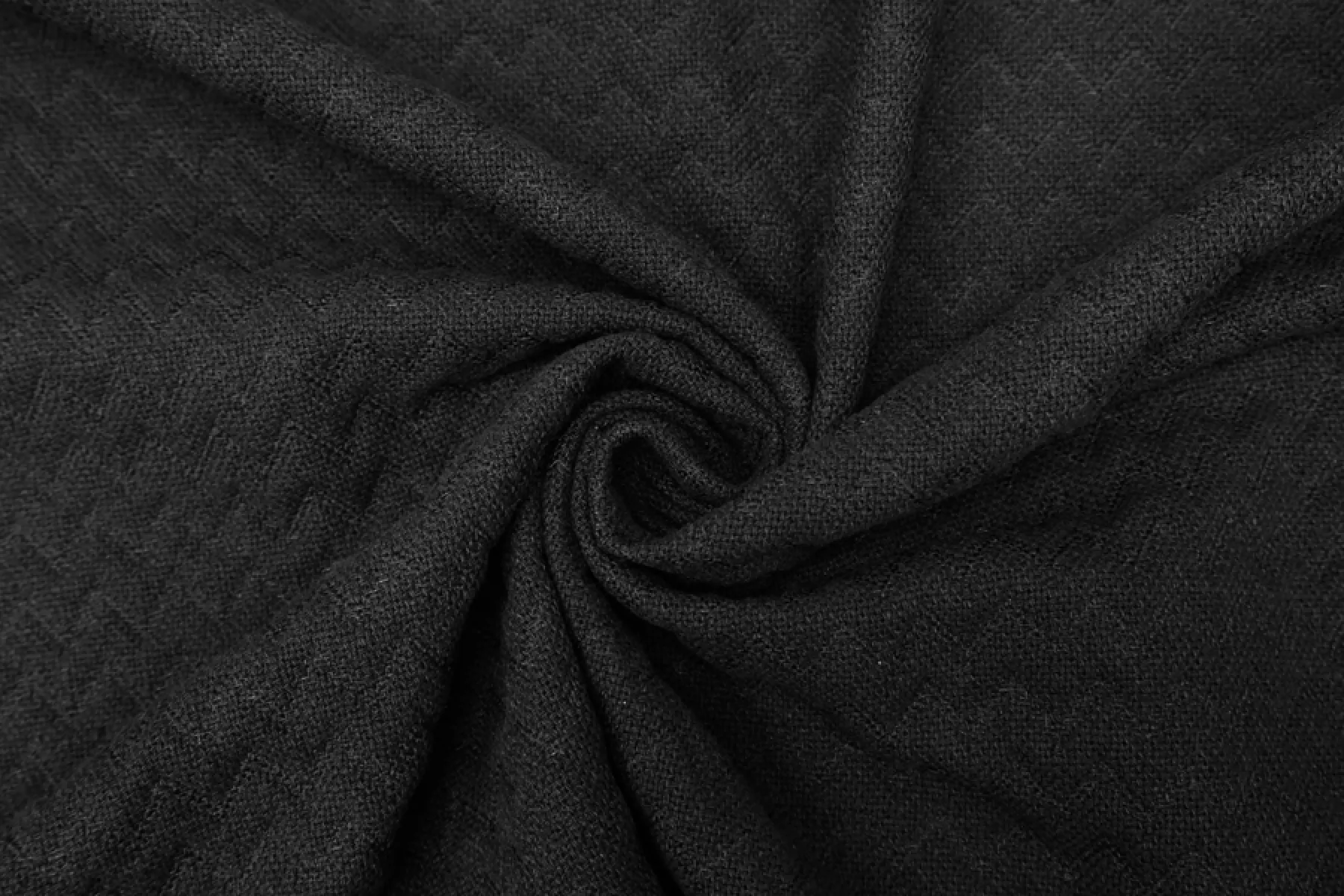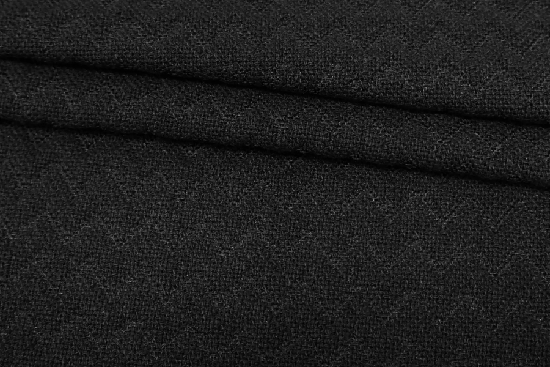 Хлопковый костюмный твид черный. Тактильно материал мягкий, ощущается шероховатая фактура плетения, которое достаточно плотное. Не тянется. Не просвечивает. Хорошо держит форму. Сминается, но восстанавливается. Стильный вариант на облегченные пальто, жакеты, костюмные варианты.