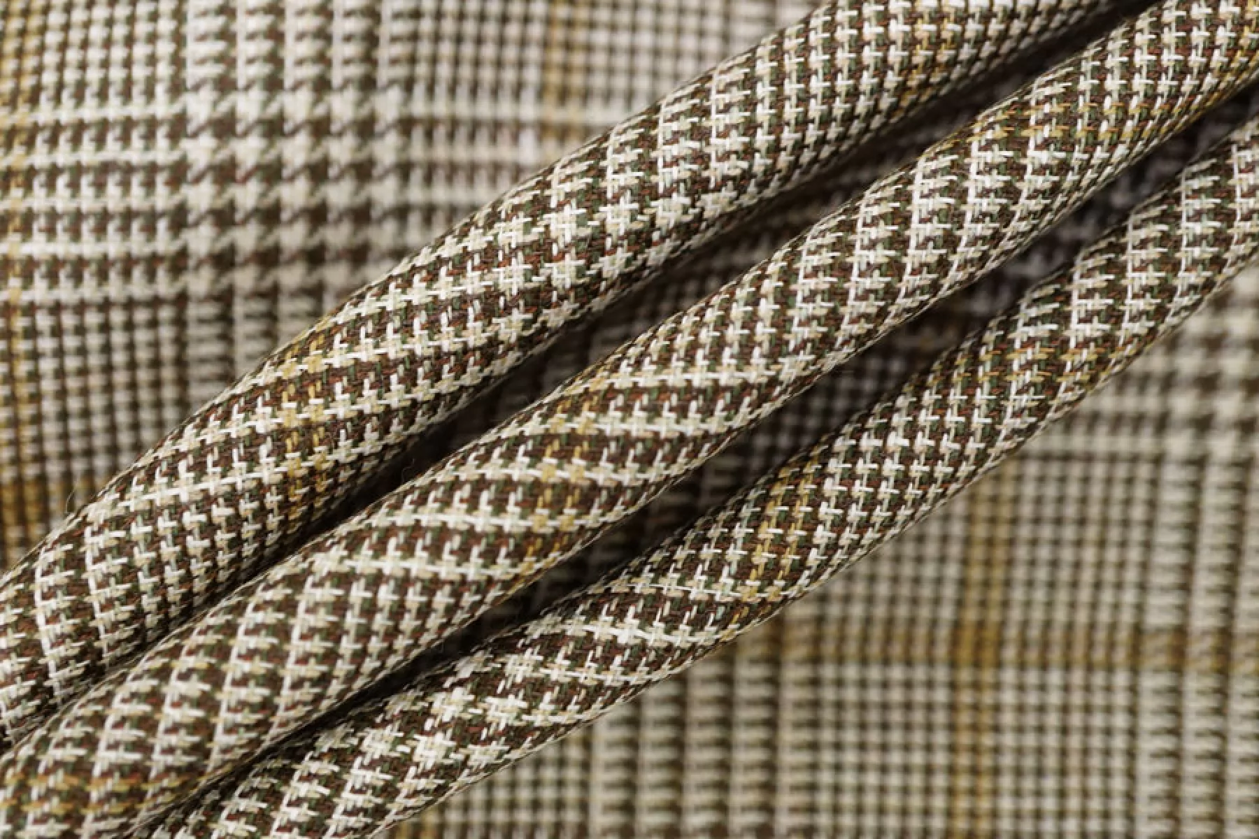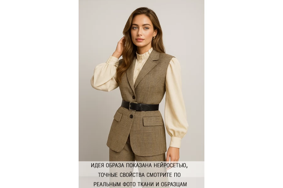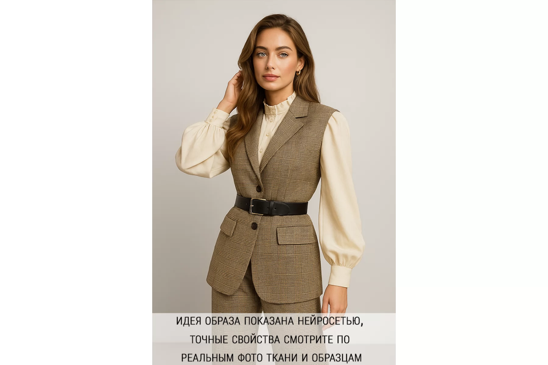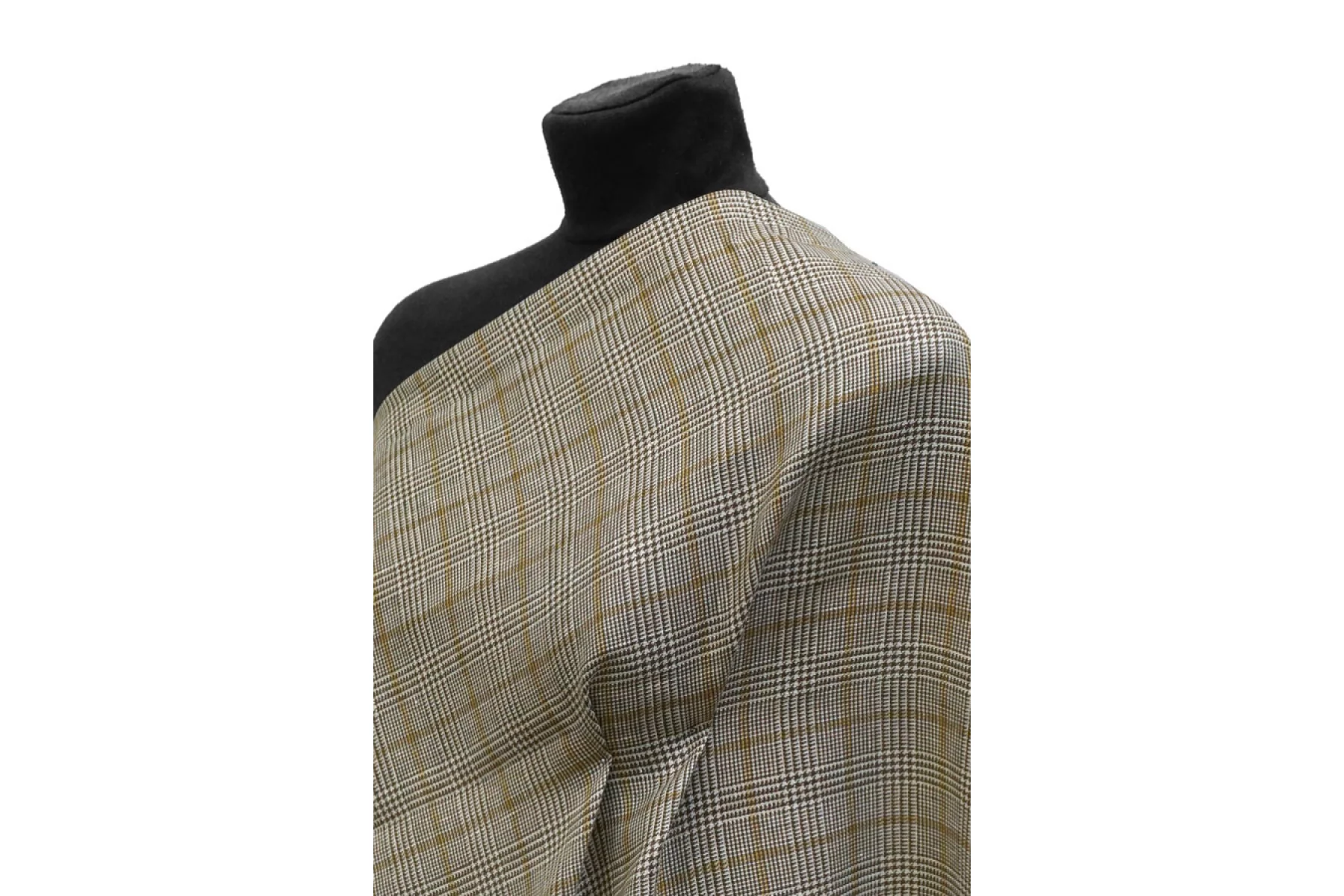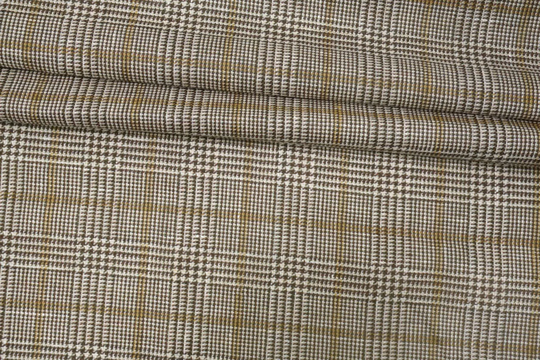 Шикарный твид костюмной плотности из шерсти качества virgin и льна в клетку из переплетения нитей коричневого, горчичного и молочного оттенка от бренда CERRUTI. Тактильно материал приятный, мягкий и гладкий, не колется. Не тянется. Тонкий но плотный. Немного просвечивает силуэт, если смотреть прямо на просвет. Хорошо держит форму. Обладает легким лоском. Шьем жакеты и костюмные варианты, платья. Уход деликатный.