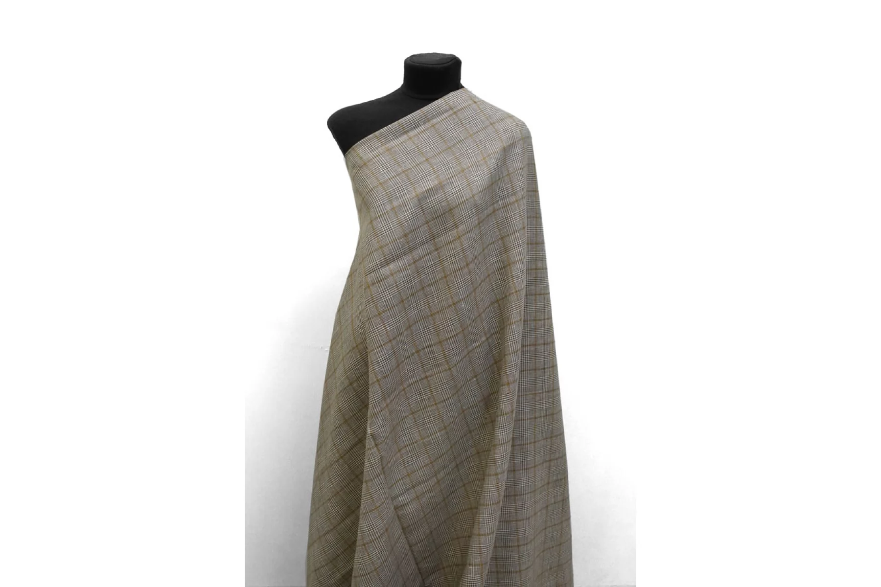 Твид костюмный лен с шерстью в клетку CERRUTI Коричнево-молочный BL H66/1 FF10 4092506