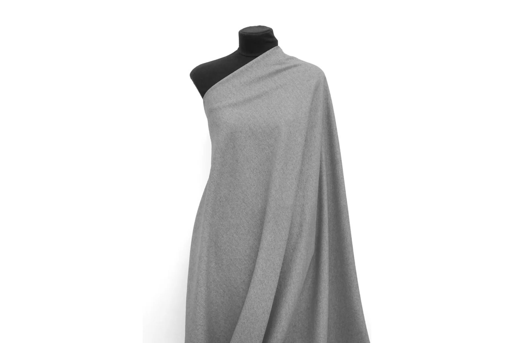 Прекрасный шерстяной костюмный твид серого цвета. Тактильно шероховатая, суховатая, колется. Немножко растягивается. Не мнется. Обладает легким лоском. Пластичная. Хорошо драпируется и держит форму. Шьем костюмы или теплые рубашки. Уход деликатный.