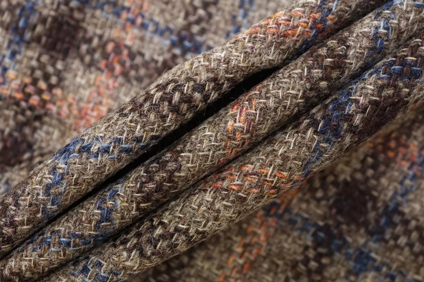 Прекрасный твид костюмно-плательной плотности из шерсти качества virgin со льном и кашемиром. Тактильно материал приятный, мягкий и гладкий, не колется. Очень греющий. Не тянется. Немного просвечивает силуэт (слегка разреженное плетение), если смотреть прямо на просвет. Пластичный, форму держит не сильно. Шьем жакеты, платья, юбки. Уход деликатный.