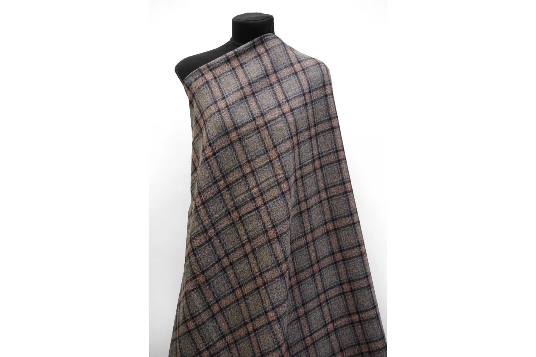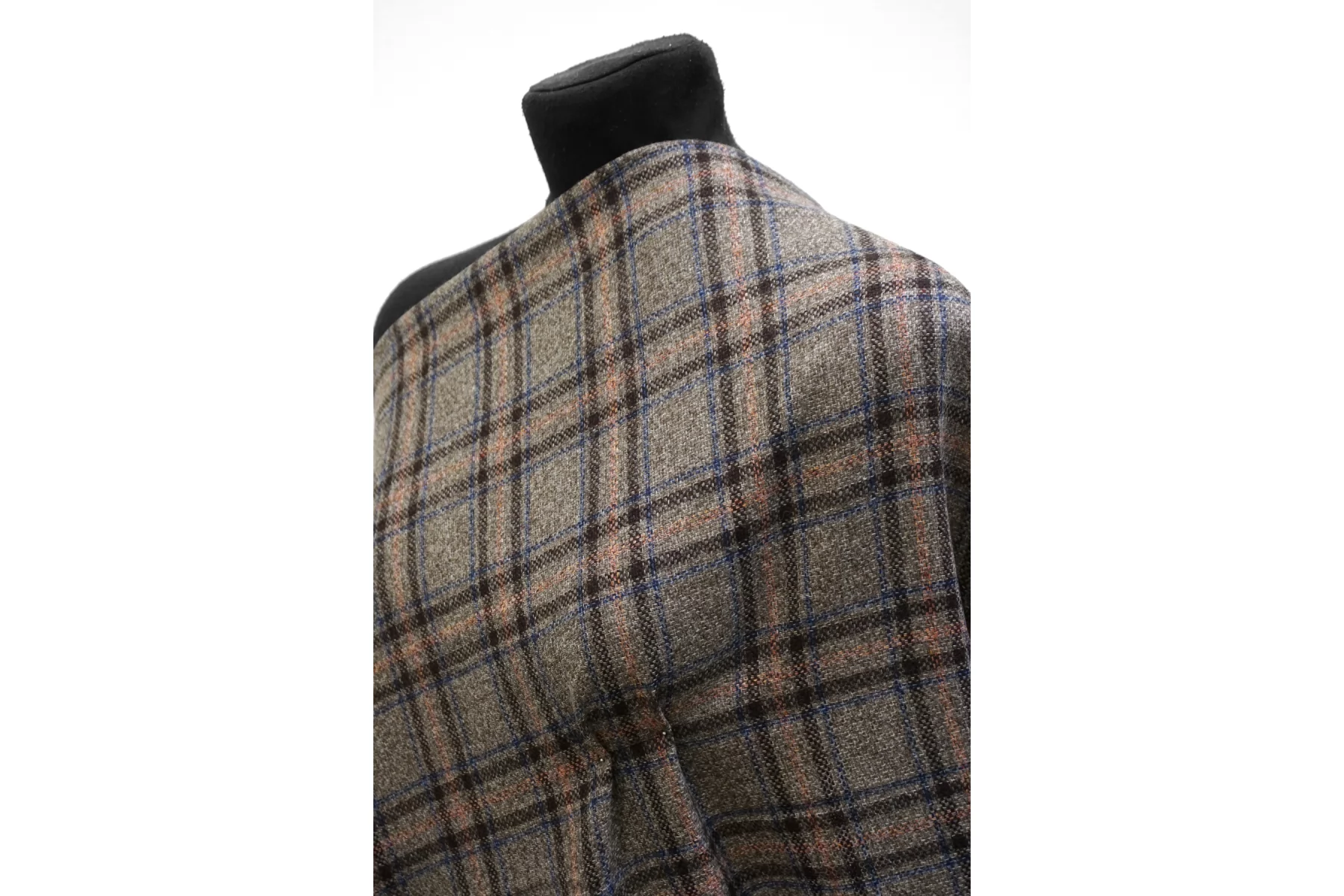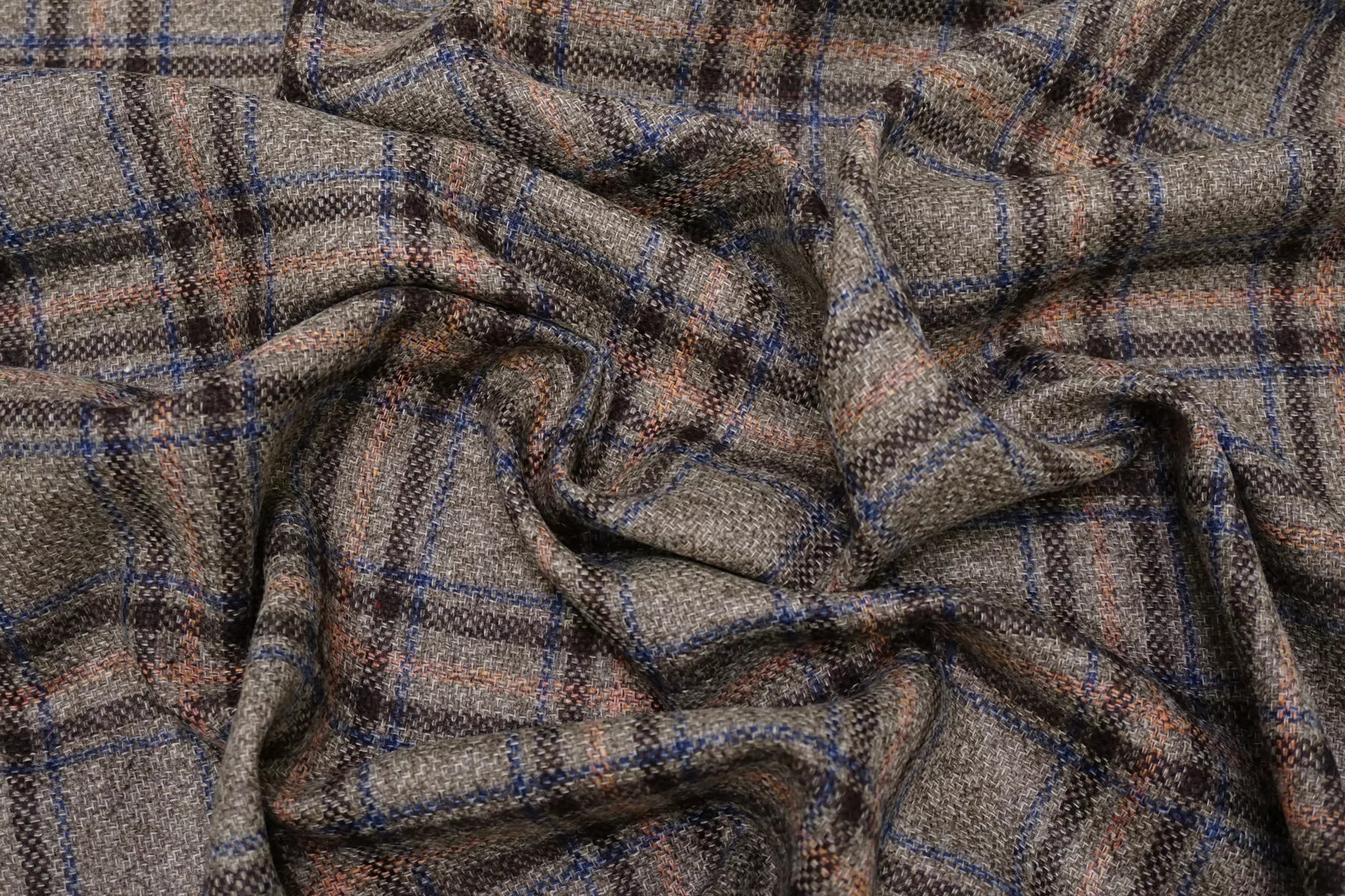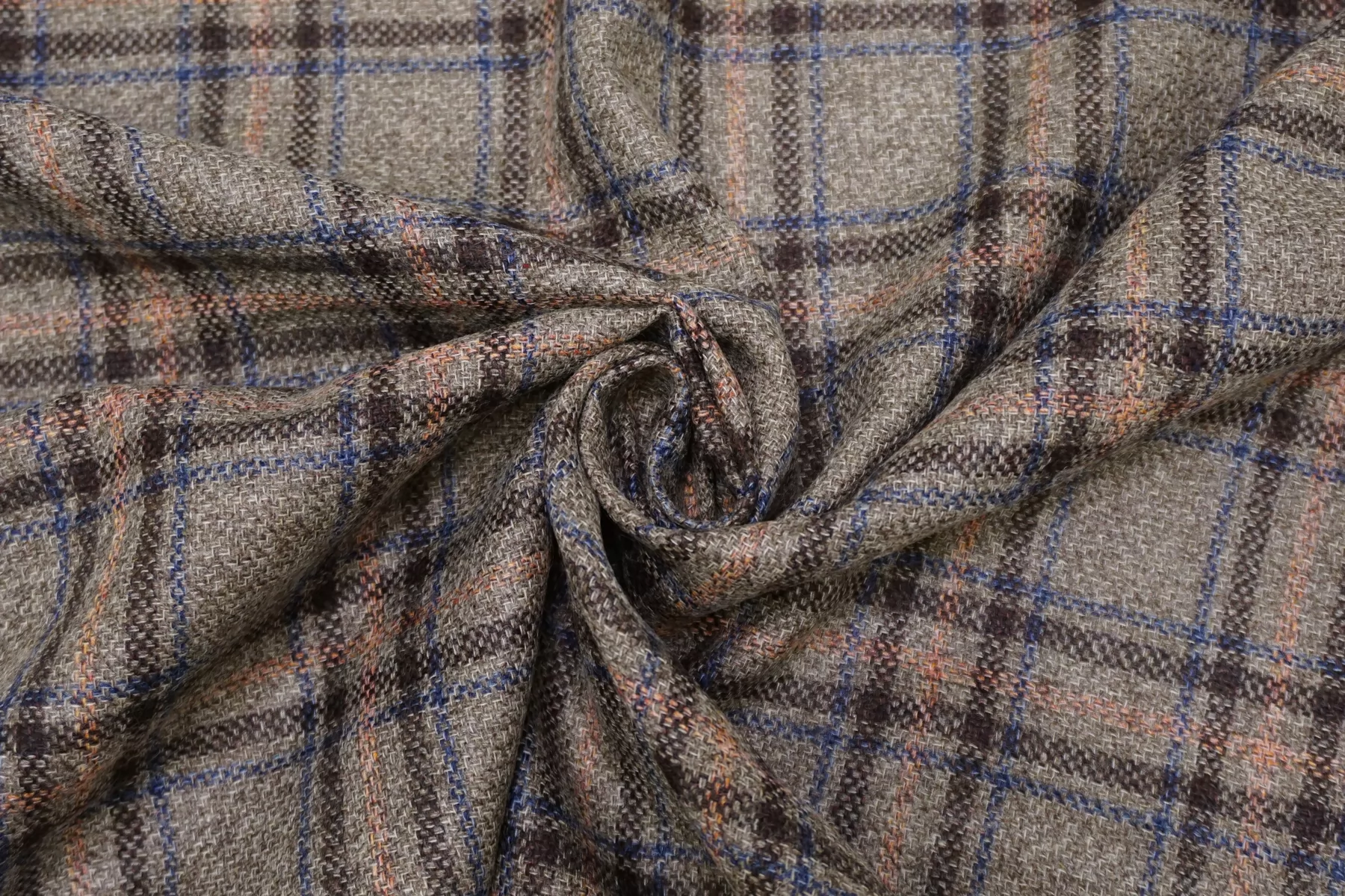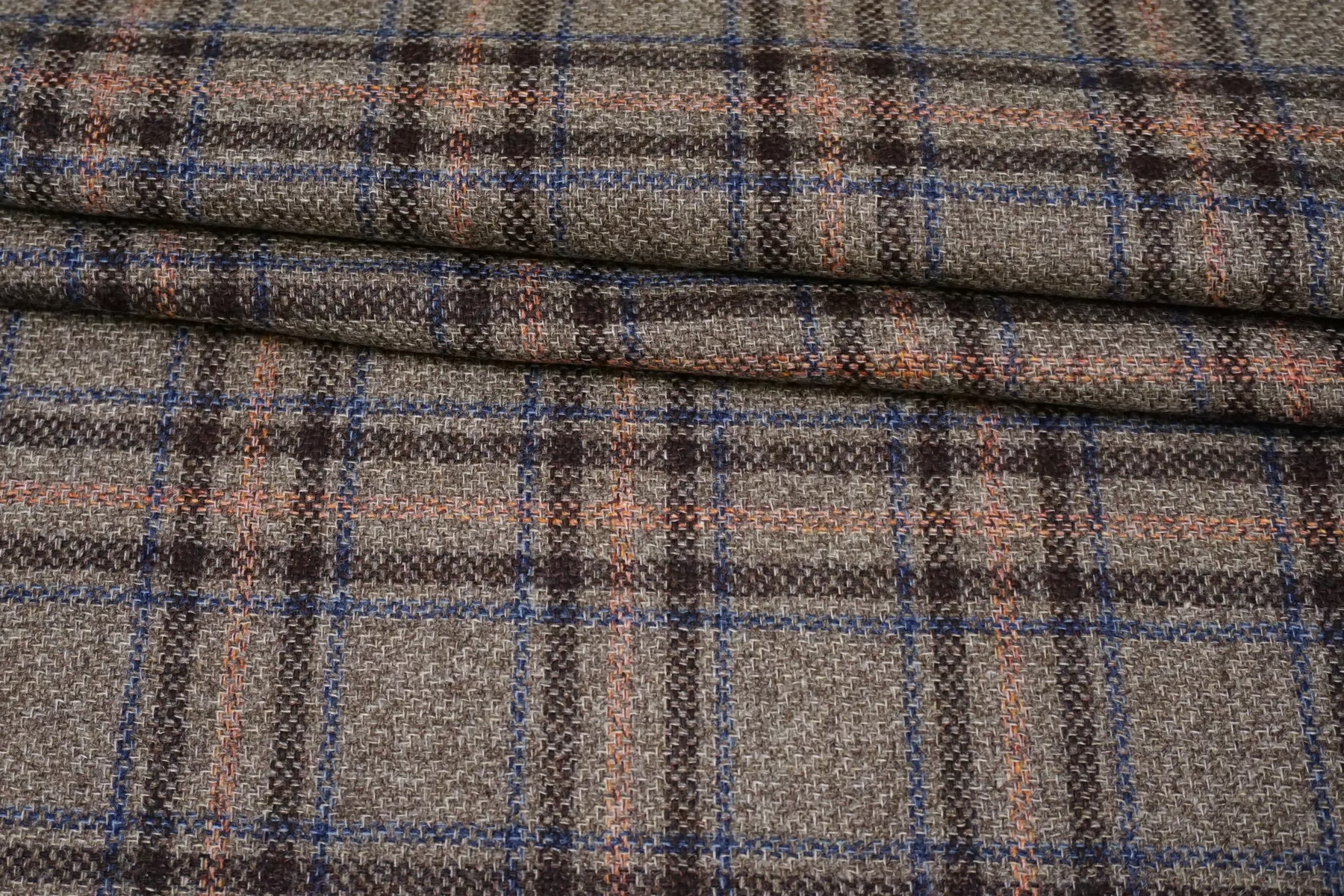Твид шерстяной со льном и кашемиром CERRUTI Серо-коричневый в клетку BL H60/1 FF30 30102511