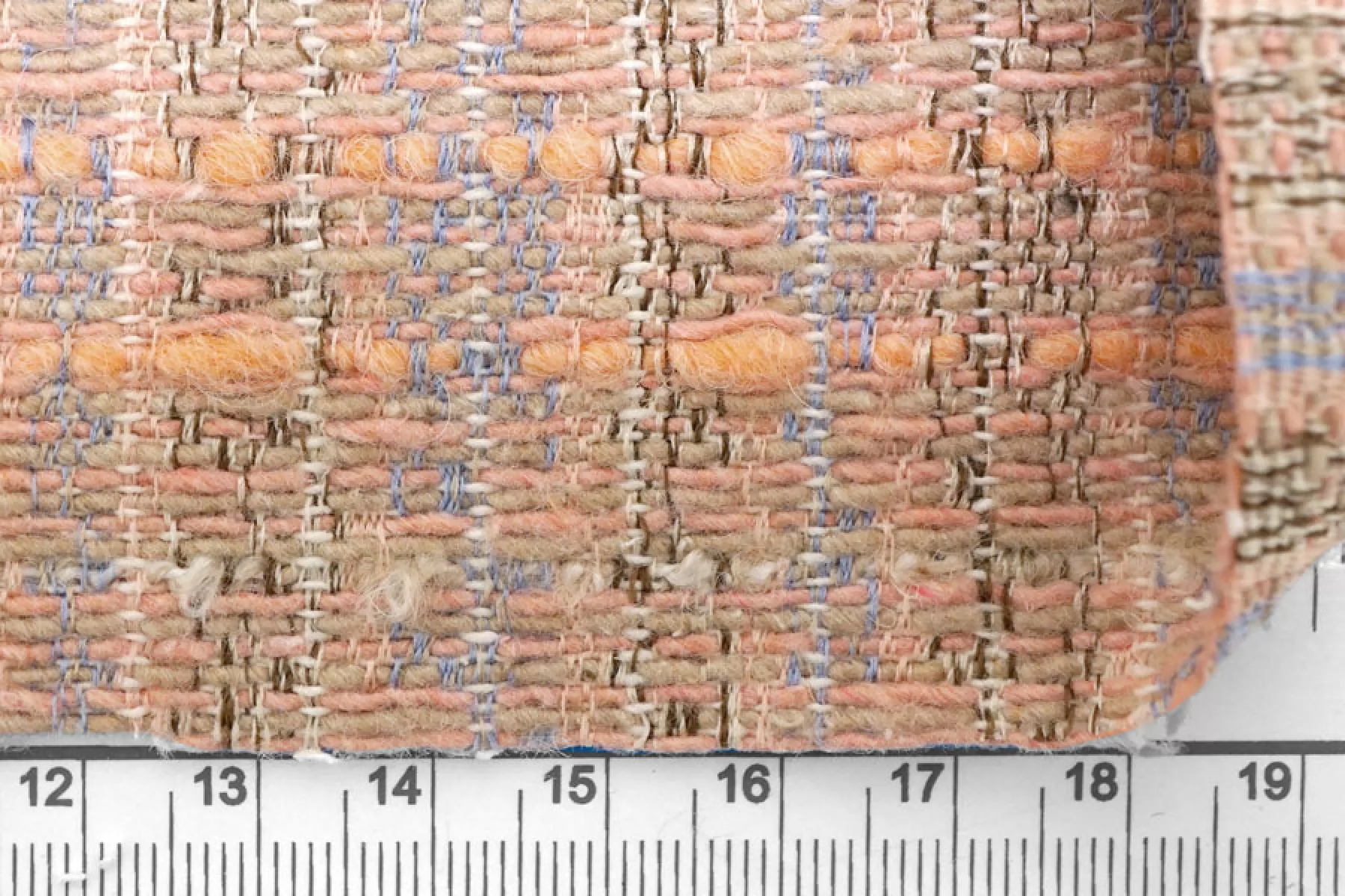 Прекрасный хлопковый твид в оттенке персик с вплетением коричневых, васильковых и молочных нитей. Можно использовать обе стороны. Тактильно мягкий, суховатый, чувствуется фактура наощупь, пластичный. Плетение плотное, не просвечивает. Не тянется. Не мнется. Драпируется, хорошо держит форму. Классный вариант на летние пальто, жакеты, костюмные варианты, платья и не только. При необходимости используйте подкладочный материал