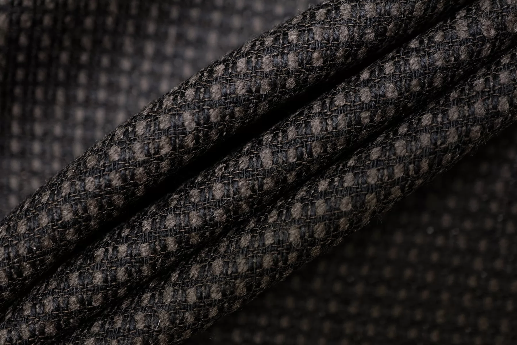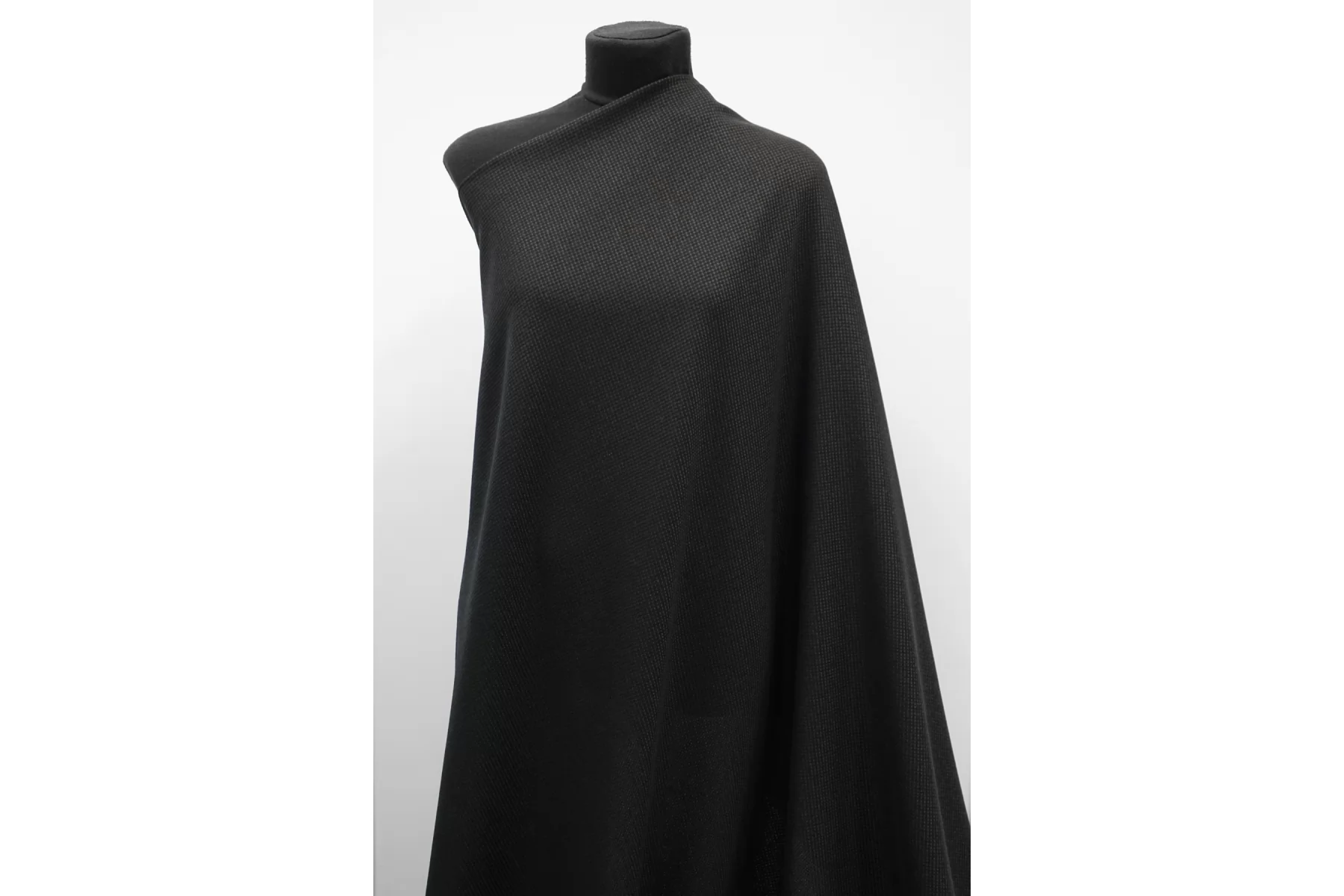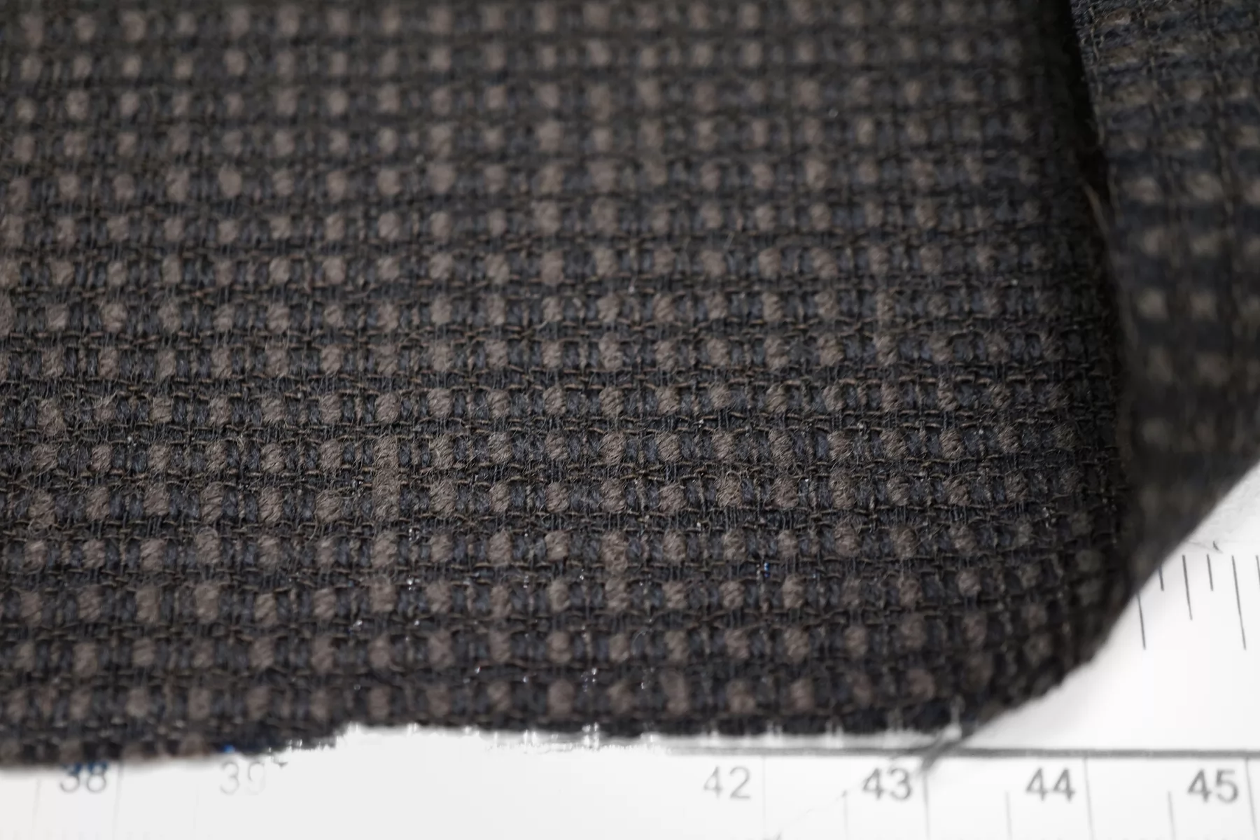 Твид-шанель из вирджинской шерсти, нити чёрного и тёмного, ненасыщенного серо-коричневого цвета. Не мнется. Тактильно очень приятный, мягкий. Довольно пластичный, хорошо драпируется. Плетение не плотное, так что немного просвечивает в один слой. Подойдет как на костюмные варианты, жакеты, теплые юбки, платья. При необходимости рекомендуем поставить подкладочный материал. Уход деликатный.