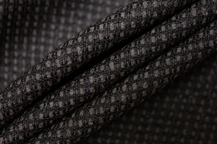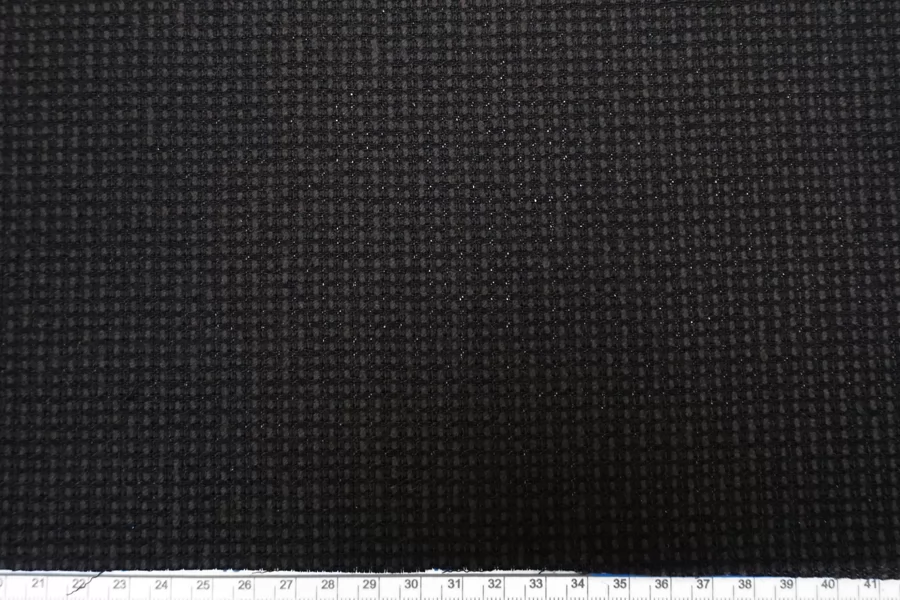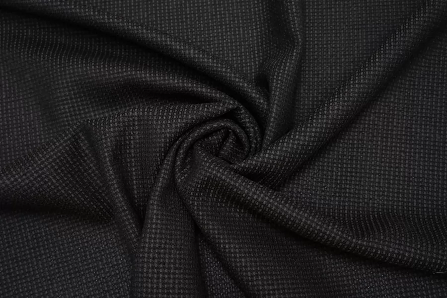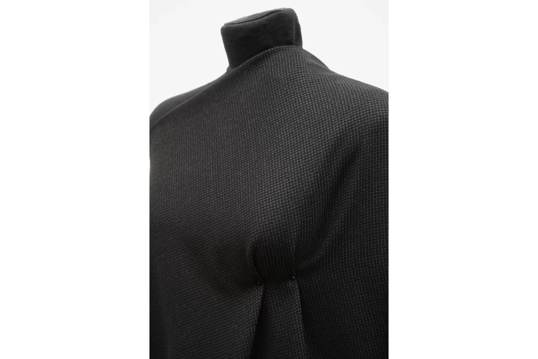 Твид-шанель из вирджинской шерсти, нити чёрного и тёмного, ненасыщенного серо-коричневого цвета. Не мнется. Тактильно очень приятный, мягкий. Довольно пластичный, хорошо драпируется. Плетение не плотное, так что немного просвечивает в один слой. Подойдет как на костюмные варианты, жакеты, теплые юбки, платья. При необходимости рекомендуем поставить подкладочный материал. Уход деликатный.