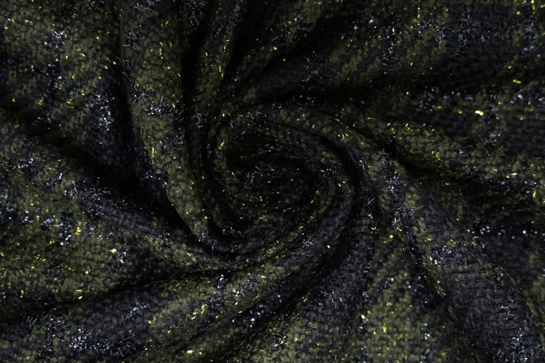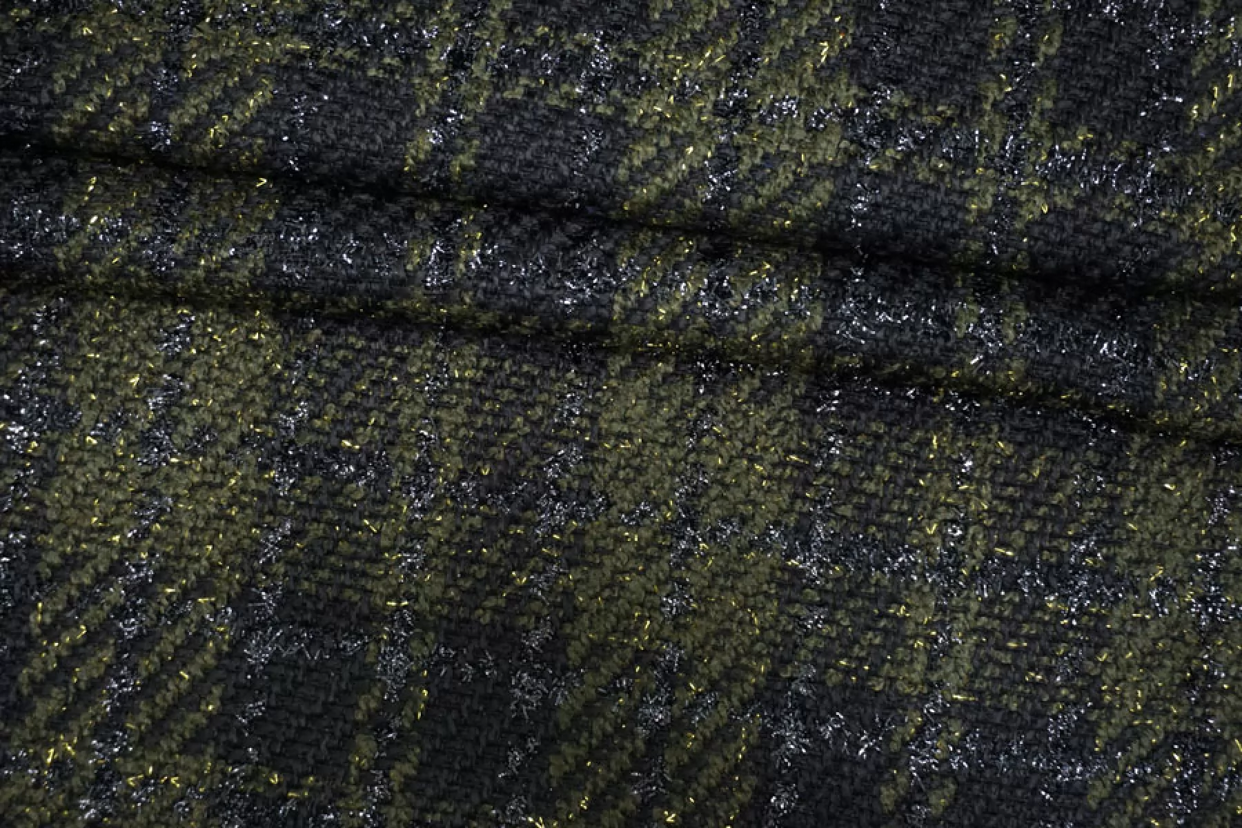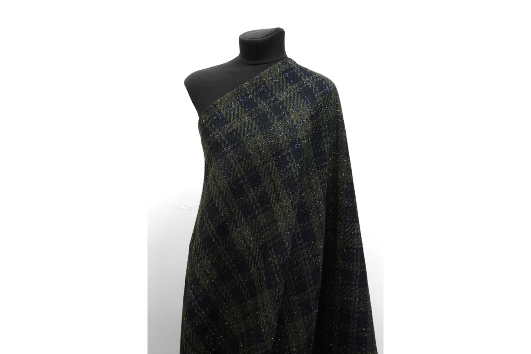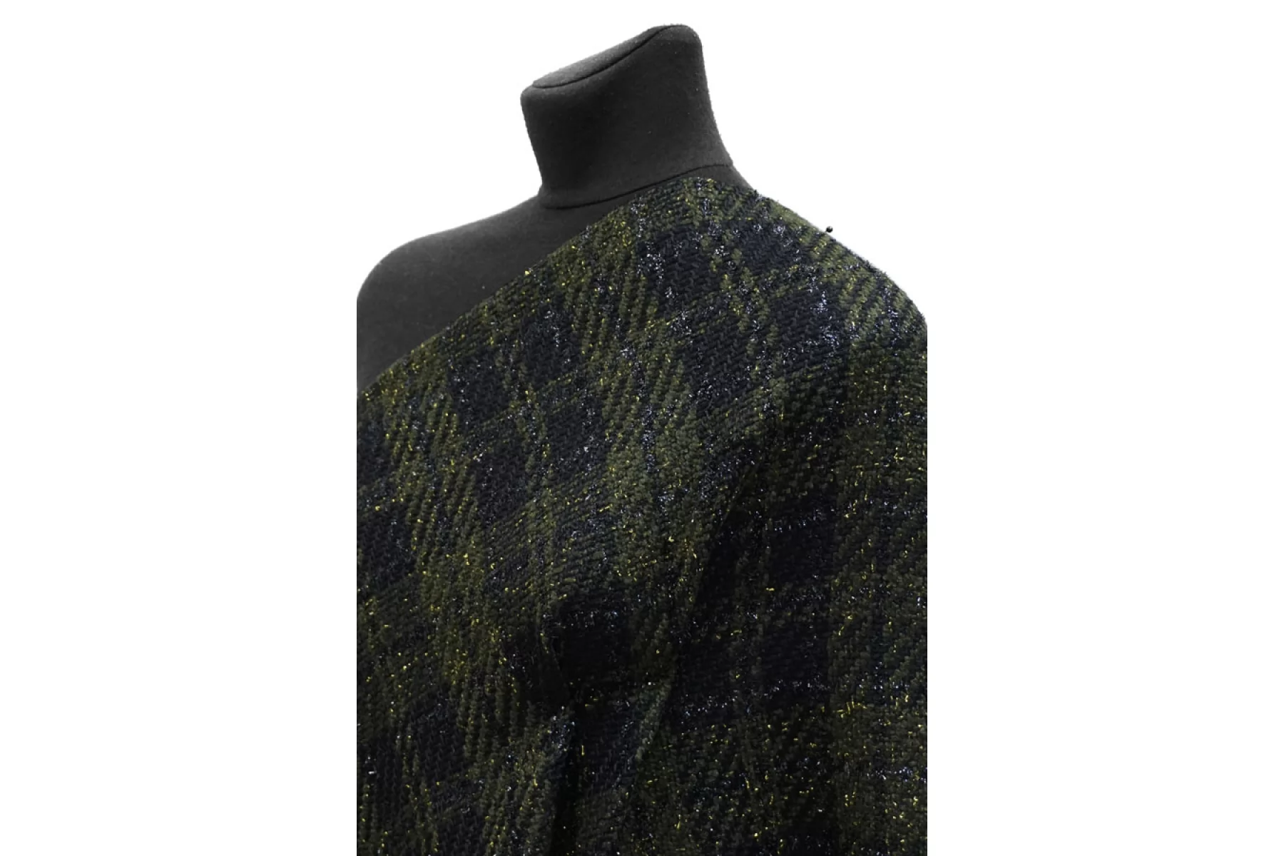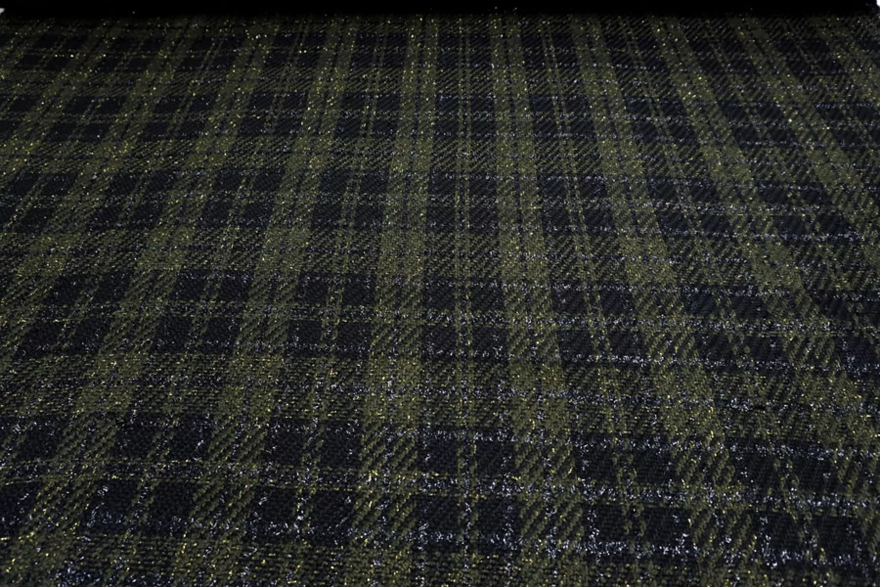 Прекрасный твид с хлопком в темно-зеленом цвете в крупную черную клетку с люрексом. Похрустывает при сминании. Тактильно мягкий, суховатый, чувствуется фактура наощупь и люрекс, пластичный. Плетение несильно плотное, не просвечивает. Не тянется. Не мнется. Драпируется, хорошо держит форму. Классный вариант на летние пальто, жакеты, костюмные варианты, платья и не только. При необходимости используйте подкладочный материал