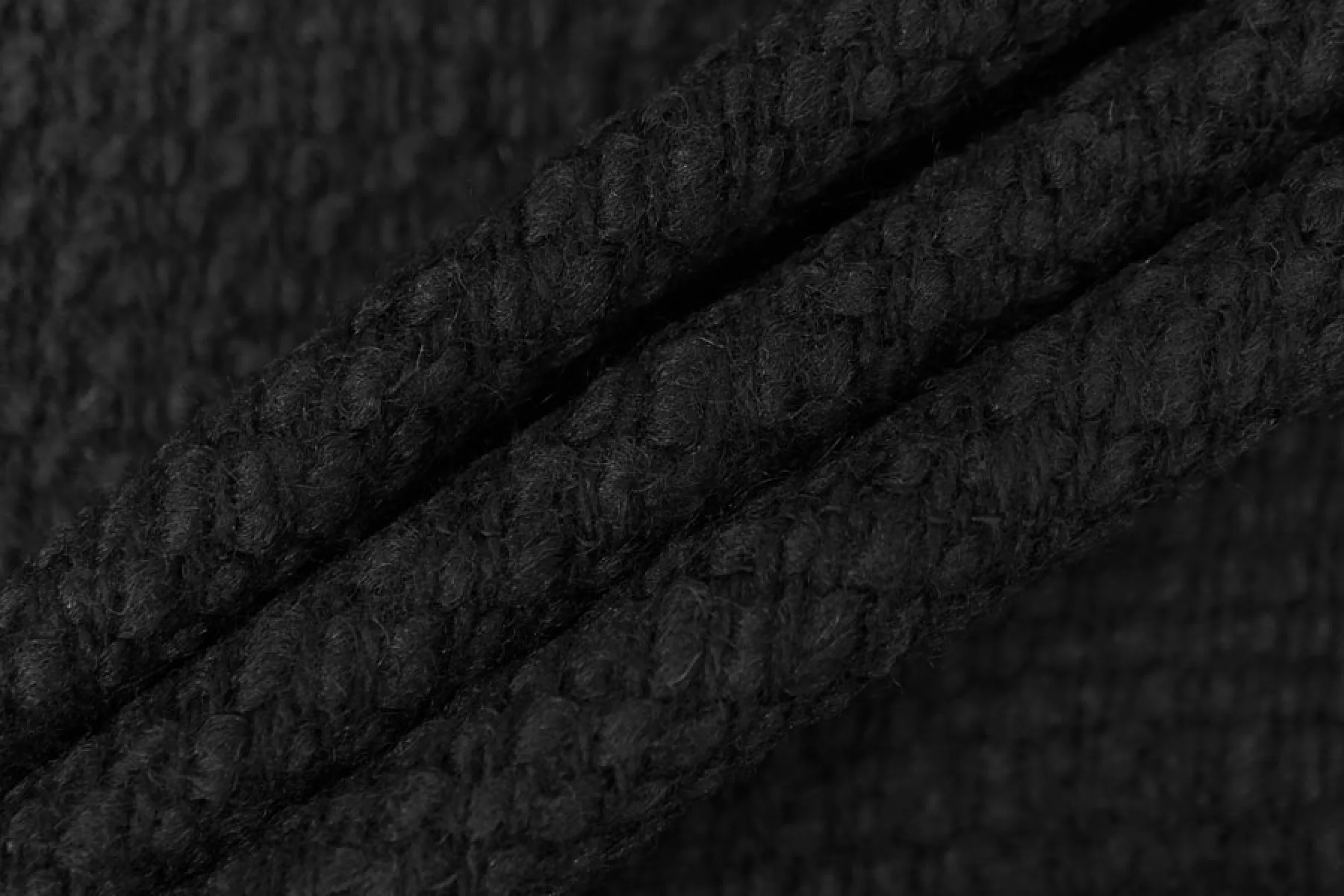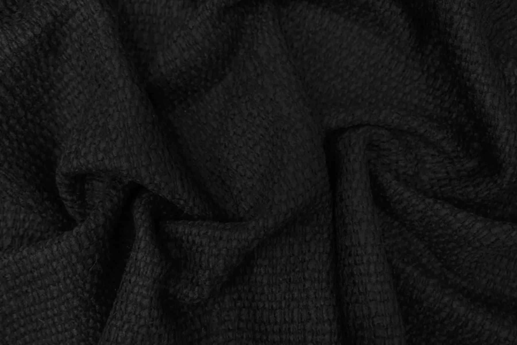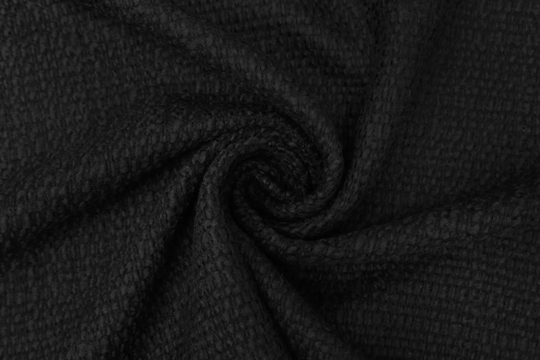 Шикарный шерстяной твид шанель черного цвета. Фактурный и мягкий наощупь. С легким лоском. Слегка колется. Не тянется. Пластичный. Не мнется. Немного просвечивает. Форму немного держит. Подойдет как на костюмную группу. Уход деликатный.