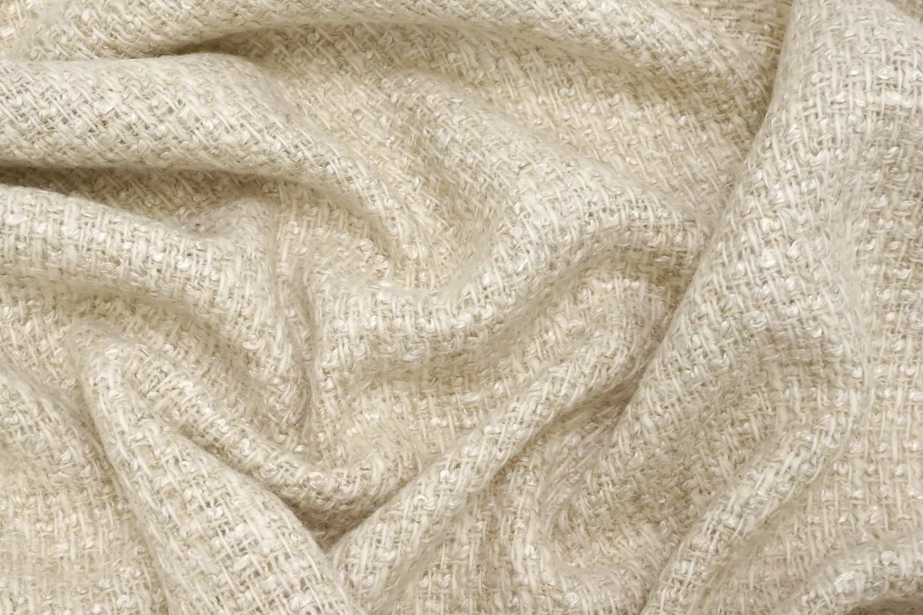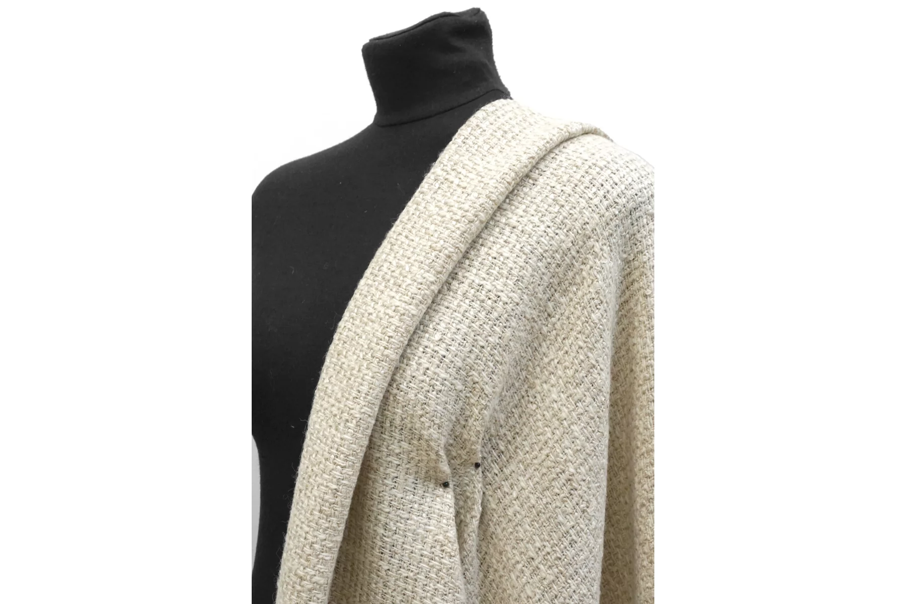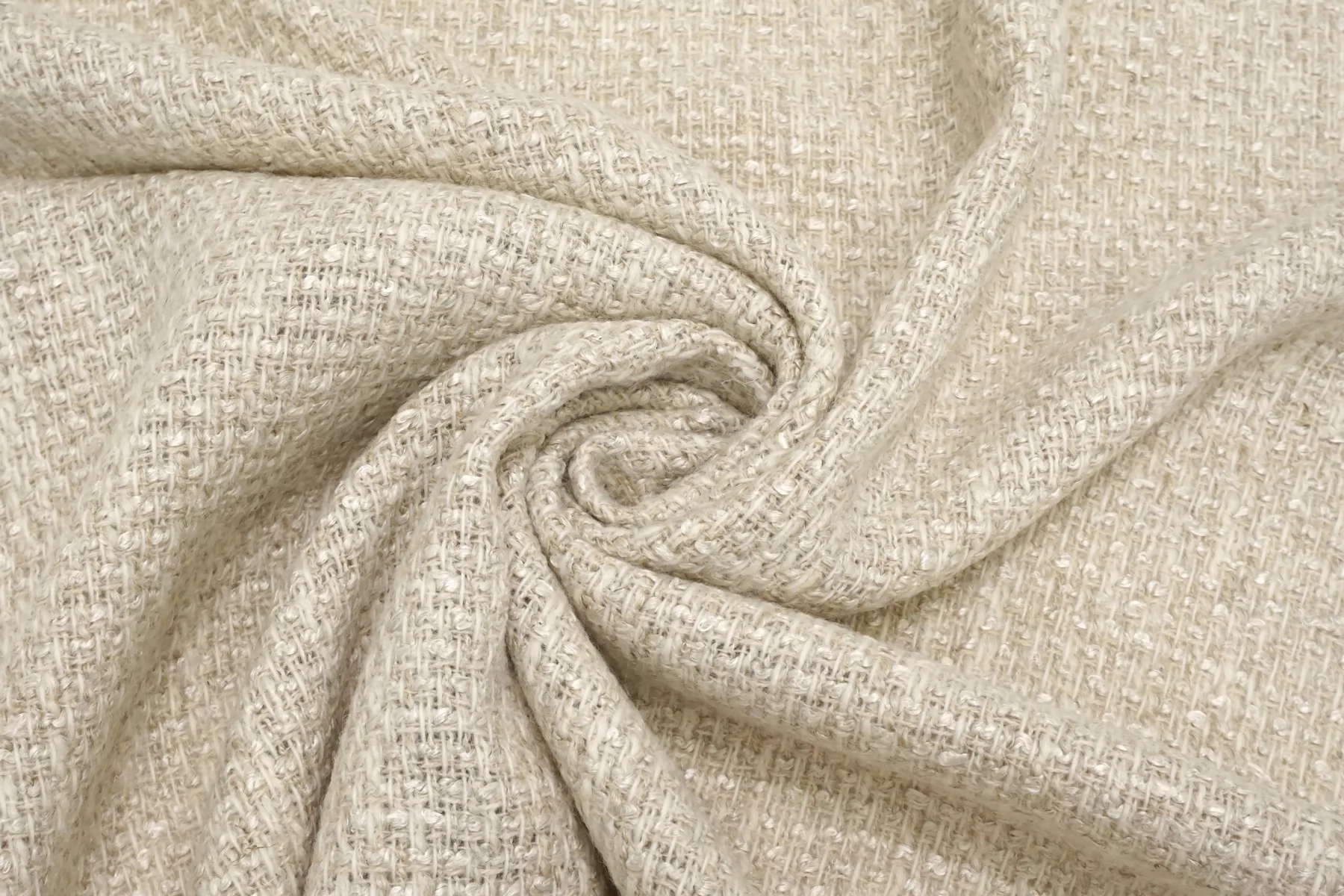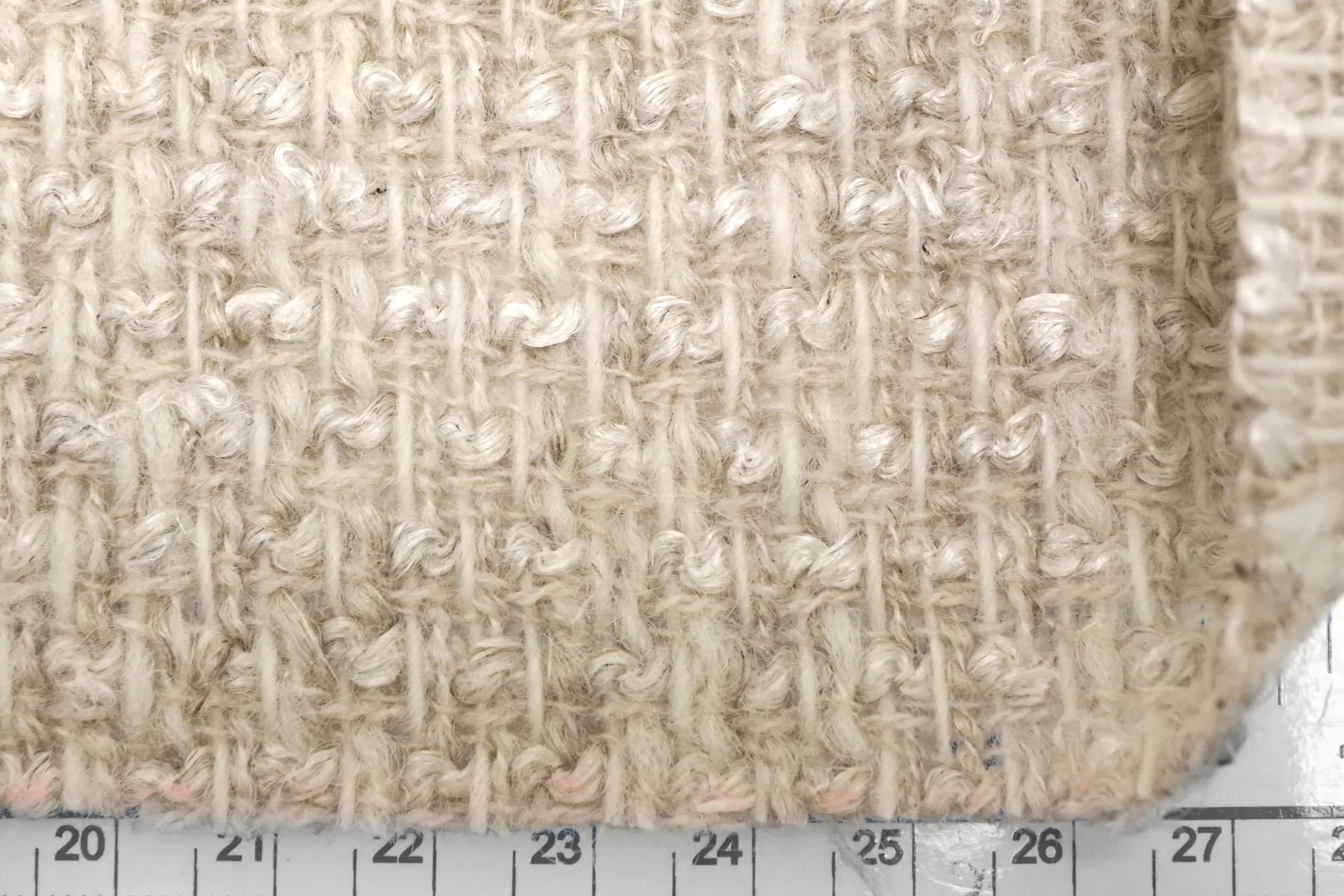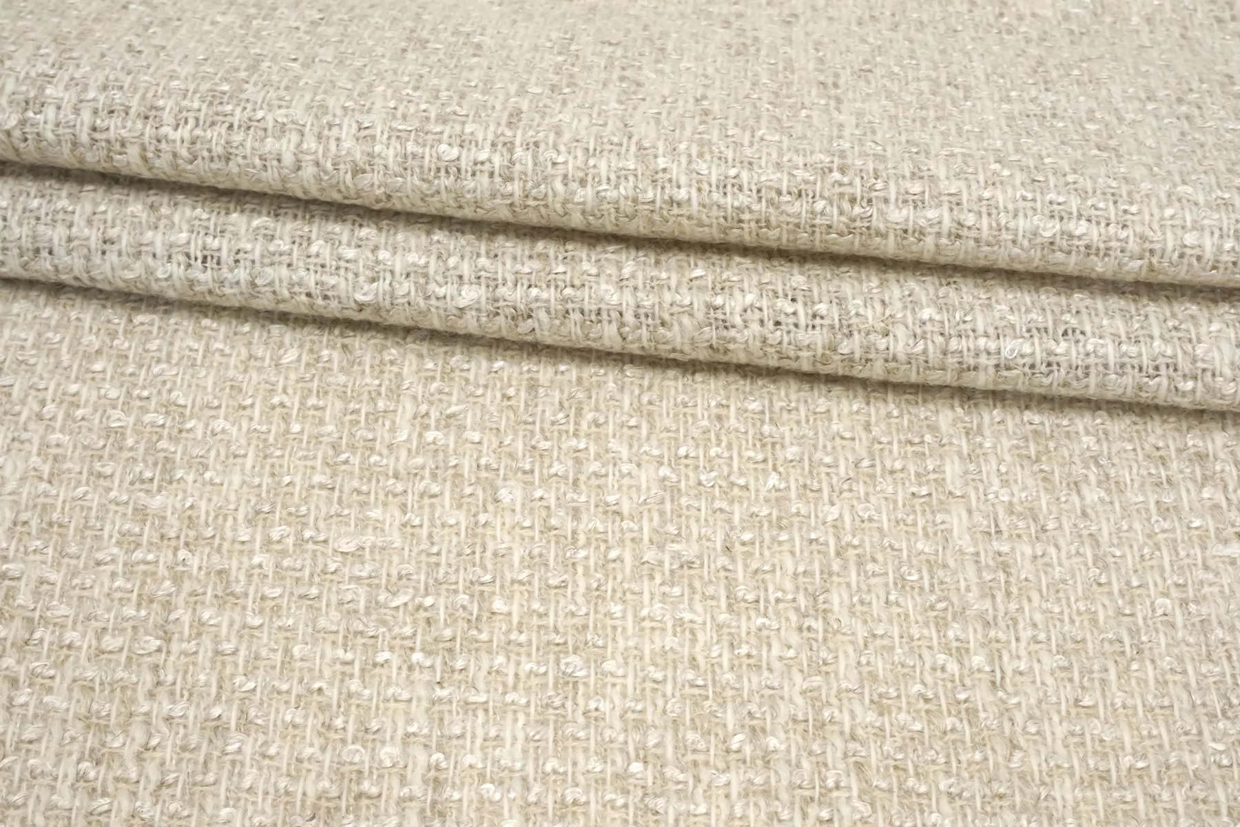 Прекрасный шерстяной твид шанель светлого бежевого оттенка. Шероховатый и суховатый наощупь. Чувствуется фактура. Слегка колется. Плетение слегка разреженное, немного просвечивает. Не тянется. Примерно 1,5 мм толщиной. Не мнется. Хорошо драпируется, неплохо держит форму. Прекрасно подойдет на костюмные варианты, жакеты, юбки, платья. Ручная стирка при 30*. ВНИМАНИЕ! ОТЖИМ БЕЗ ОБОРОТОВ (ТКАНЬ ПРИ ЭТОМ ДАЕТ БОЛЬШУЮ УСАДКУ И "СВАЛИВАЕТСЯ")!
