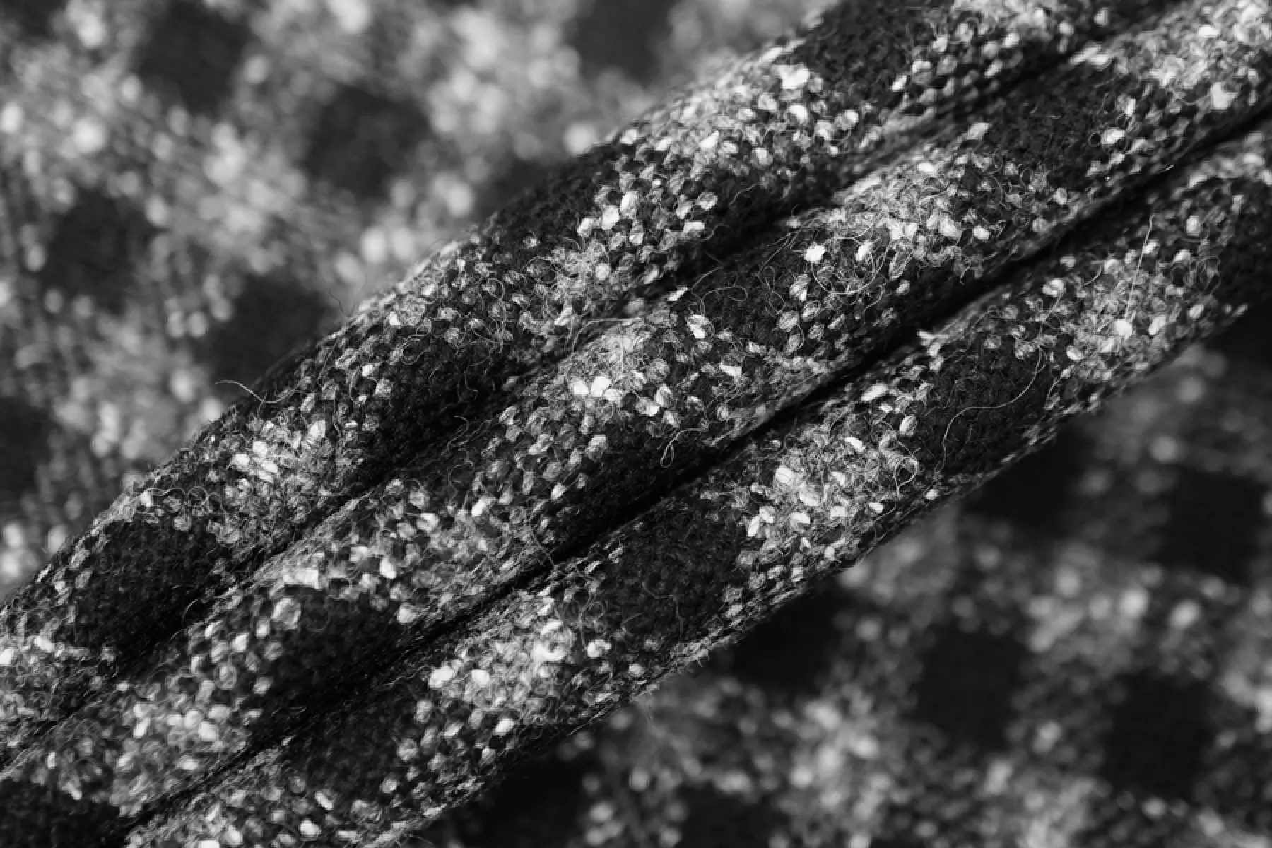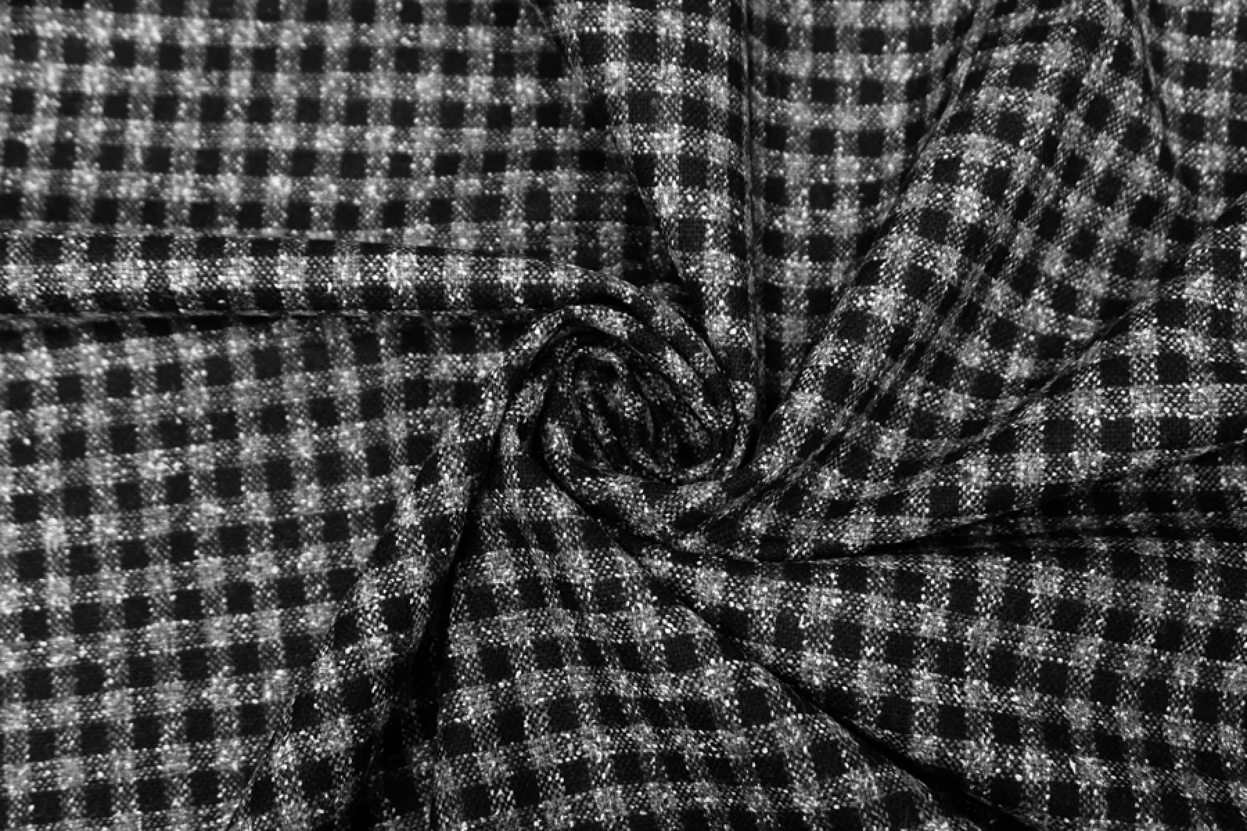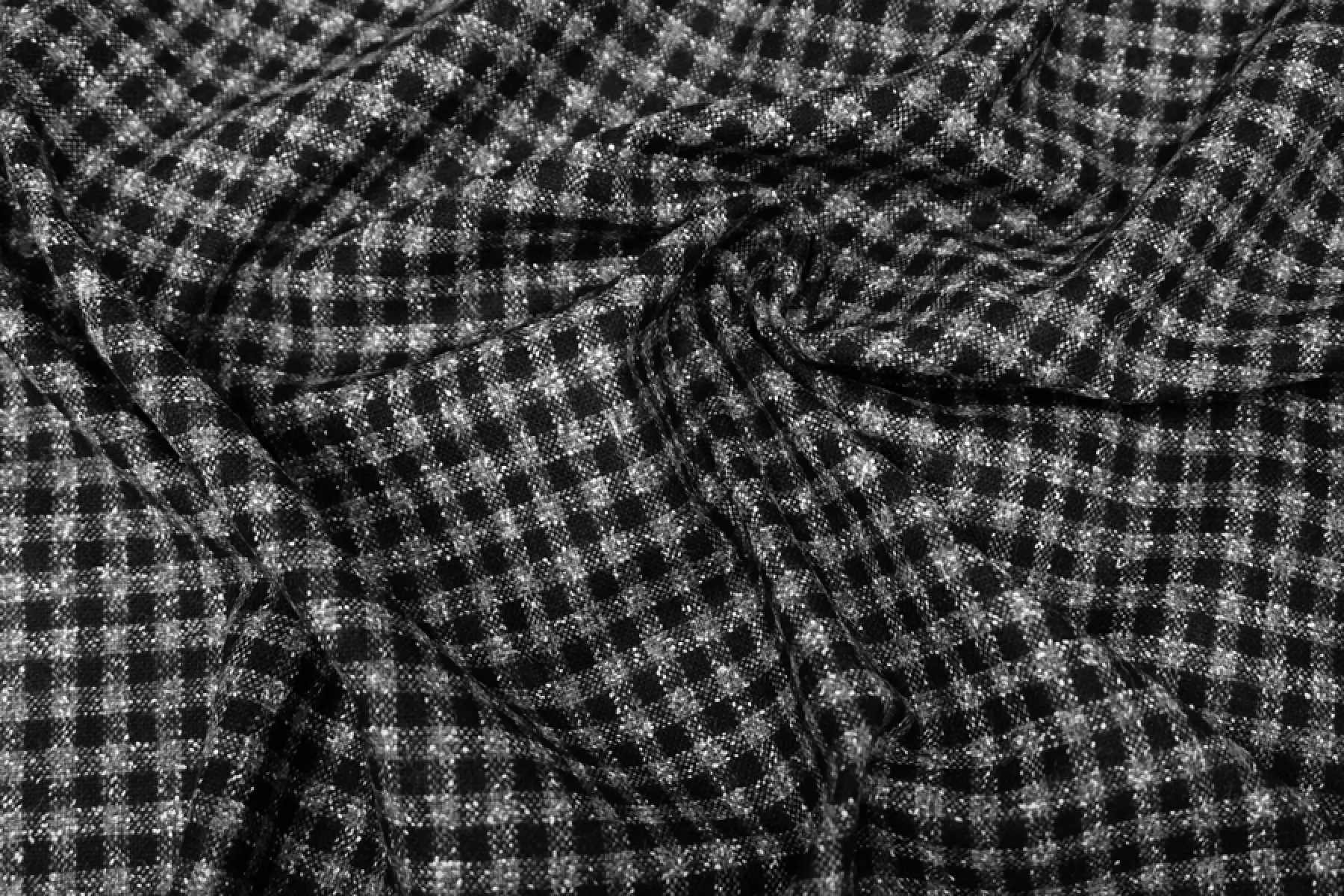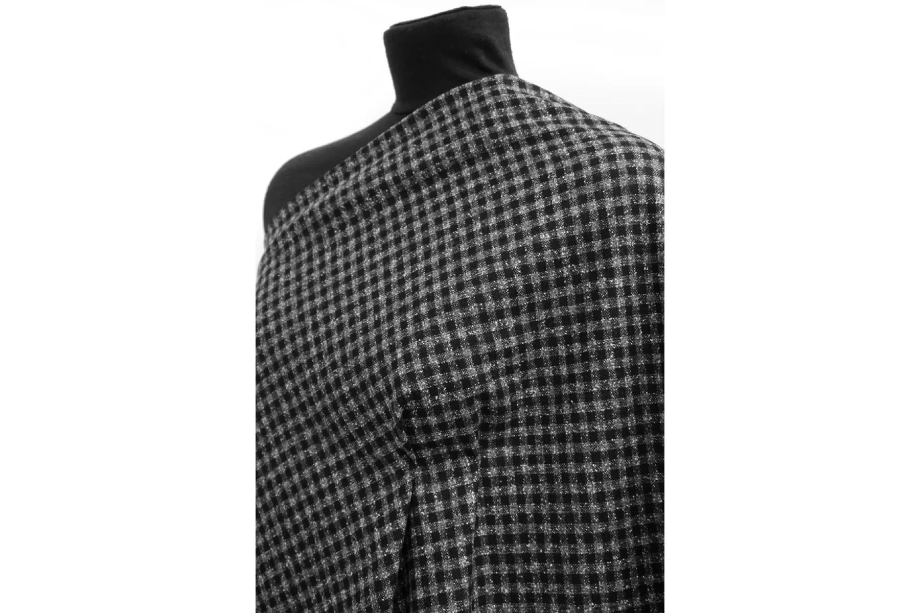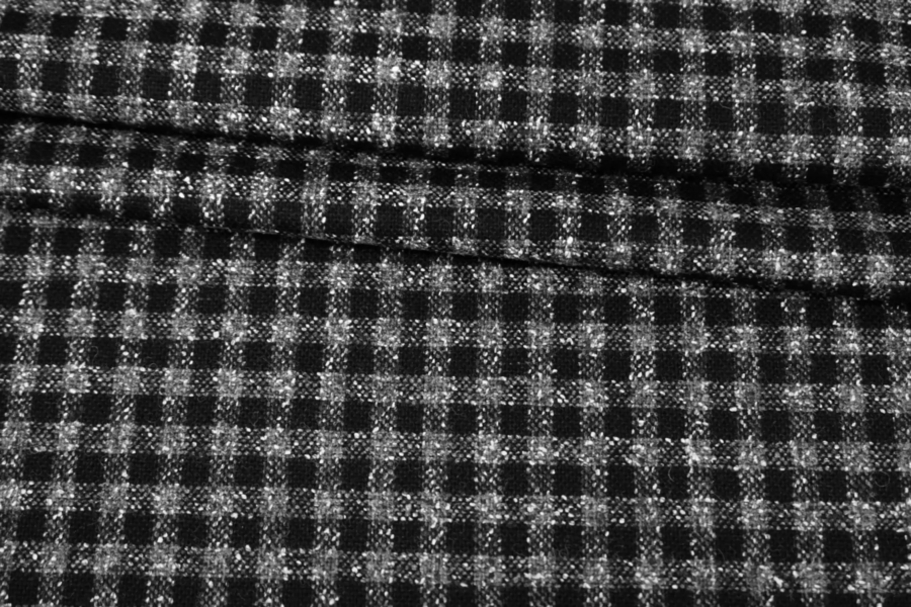 Классный шерстяной твид костюмной плотности в мелкую серо-черную клетку. Материал суховатый, есть очень легкий ворс, немного колется. Пластичный. Не тянется. Не мнется. Плотный, но тонкий. Форму держит. Не просвечивает. Прекрасно подойдет на костюмы, жакеты, юбки и не только. Уход - деликатный.