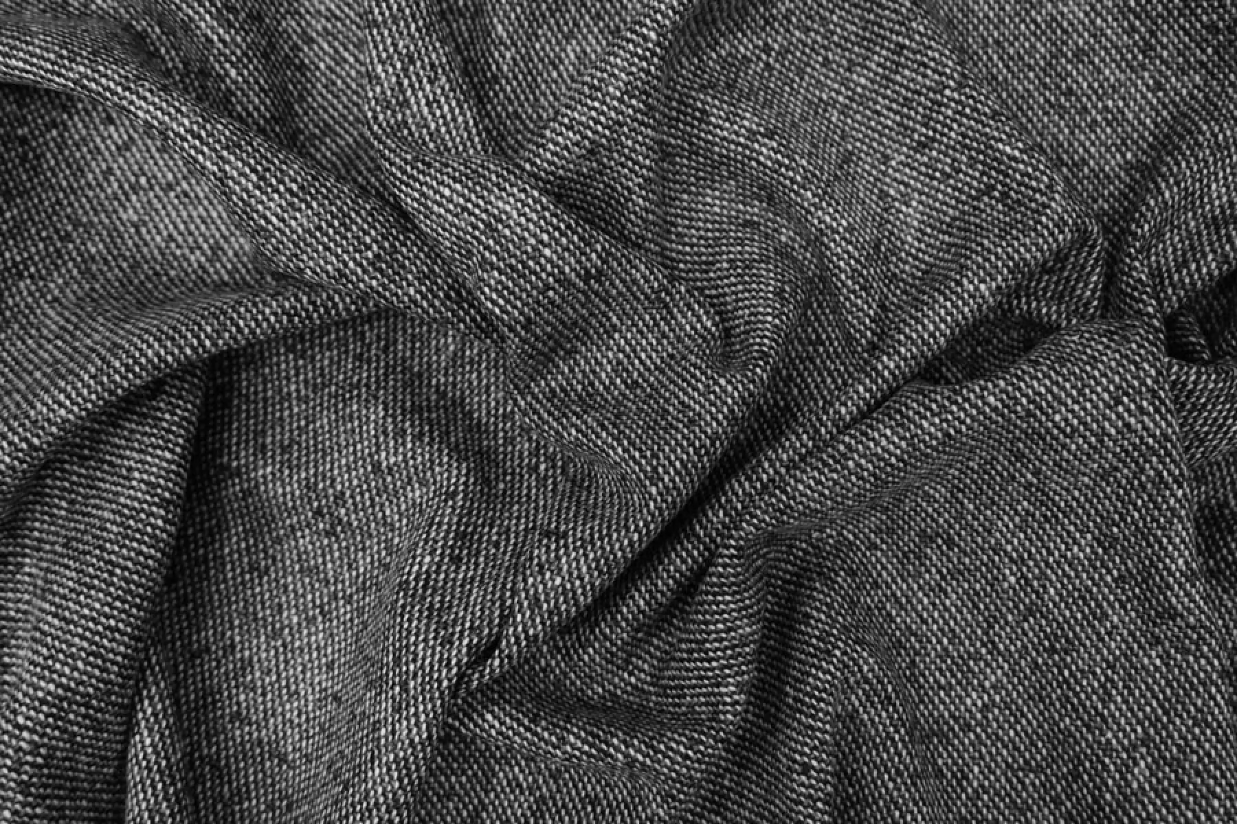 Классный костюмный шерстяной твид темно-серого оттенка. Тактильно суховатый, приятный. С очень легким ворсом. Колется. Пластичный, примерно 1 мм толщиной, формодержащий. Не мнется, не просвечивает и не тянется. Прекрасно подойдет на костюмы, жакеты, юбки и не только. Уход - деликатный.