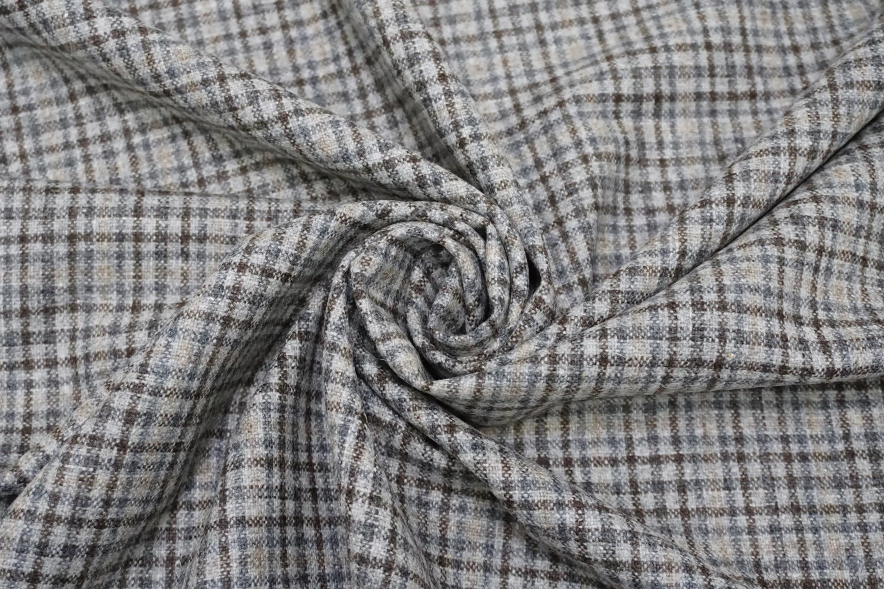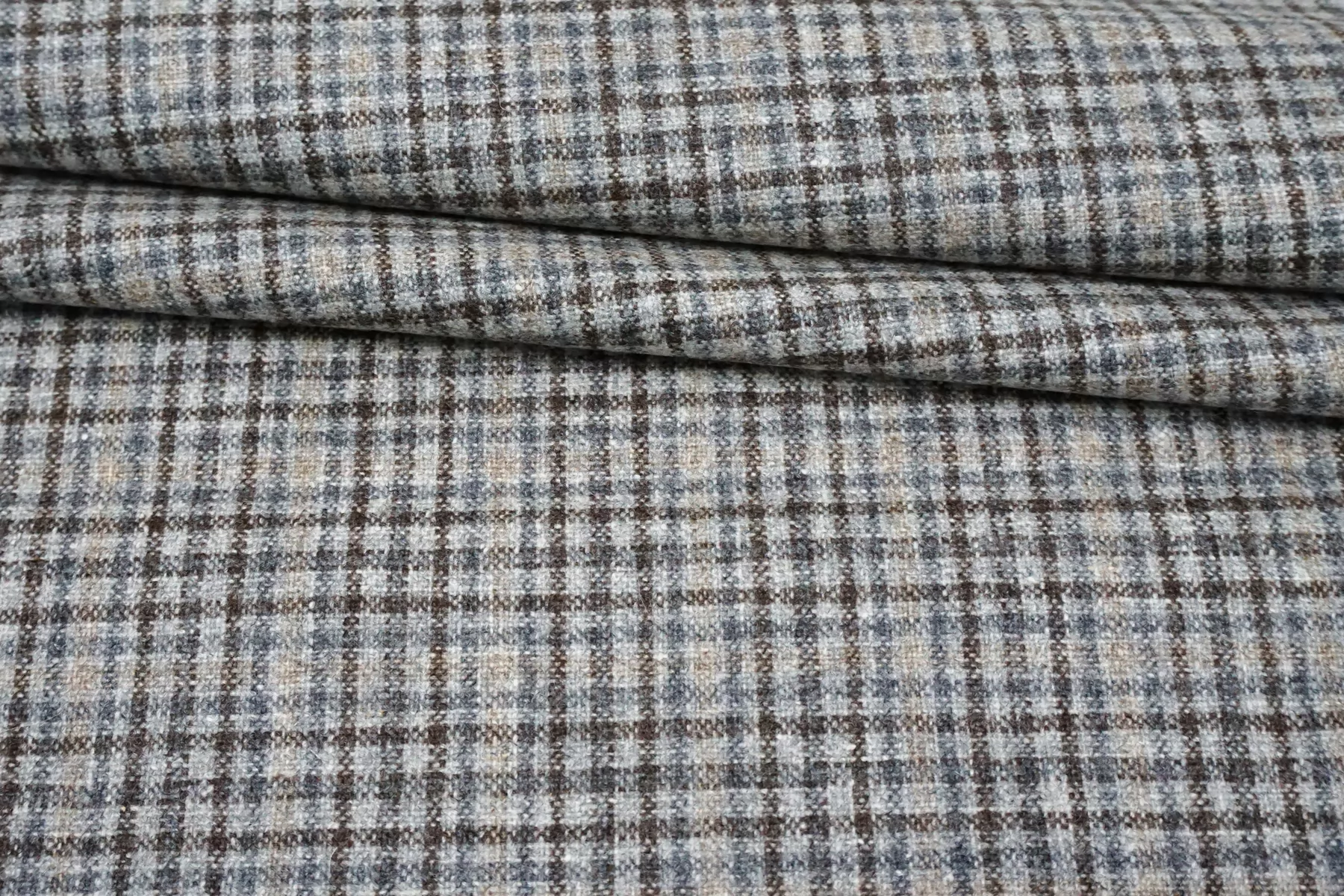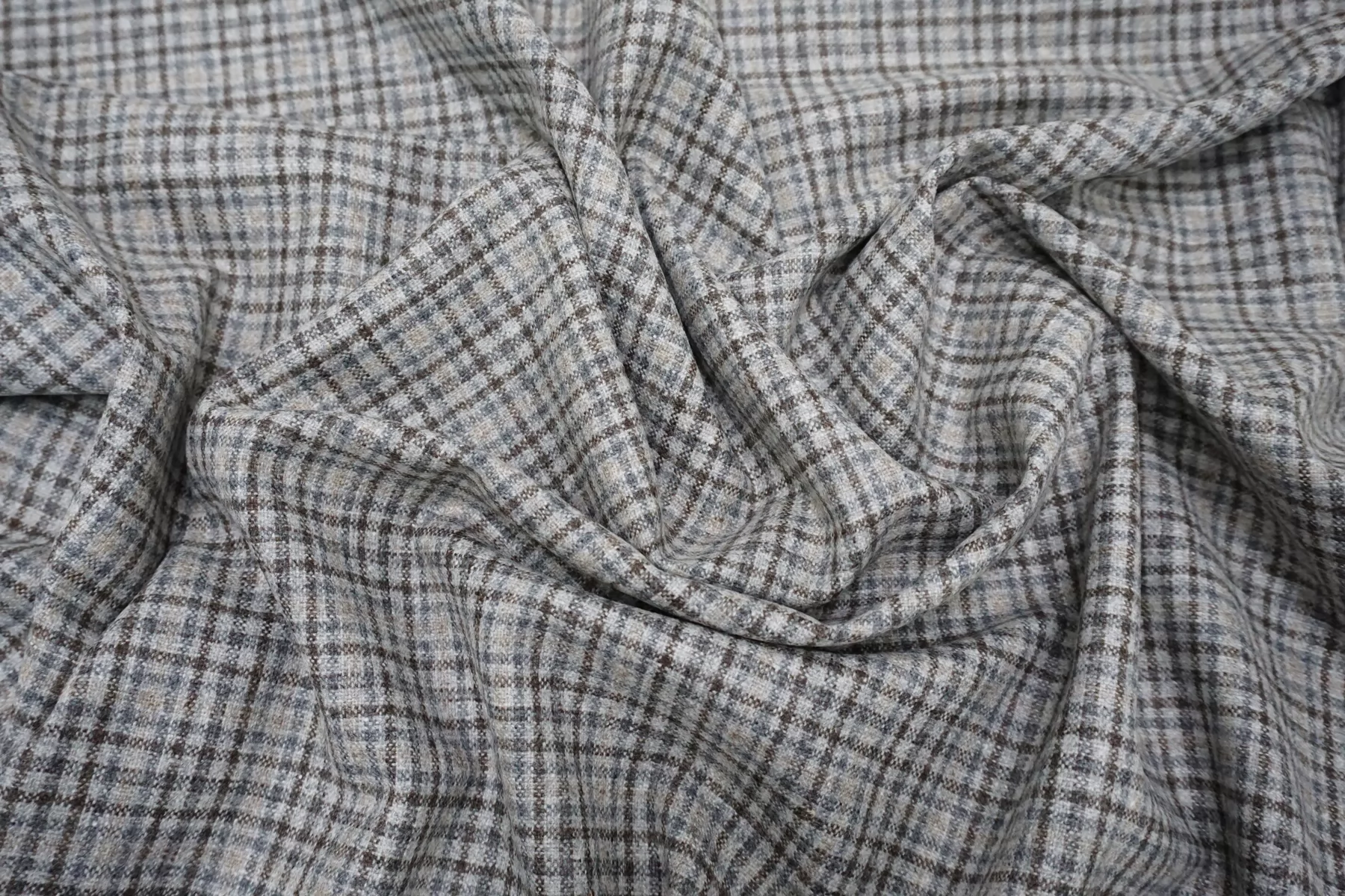 Шикарная итальянская костюмная шерсть virgin твидовая с добавлением кашемира от бренда Cerruti из переплетения нитей серого, бежевого, серо-голубого и коричневого оттенка. Мягкая, нежная и гладкая тактильно. Совсем слегка покалывает. Плотненькая, не тянется, немного светит, если смотреть прямо на просвет. Не мнется. Пластичная, но при этом немного держит форму. Шьем костюмы, юбки, брюки, или теплые рубашки верхнего слоя. Уход деликатный.
