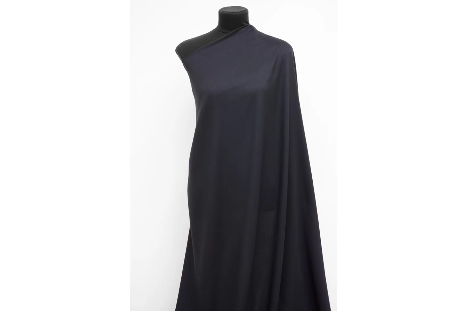 Классный итальянский плательный твил из вискозы с шерстью в темно-синем оттенке. Очень мягкий, немного колется. Тонкий, немного просвечивает силуэт, пластичный. Не тянется. Форму держит совсем слабо. Подойдет для пошива платья, юбки, блузки, рубашки.