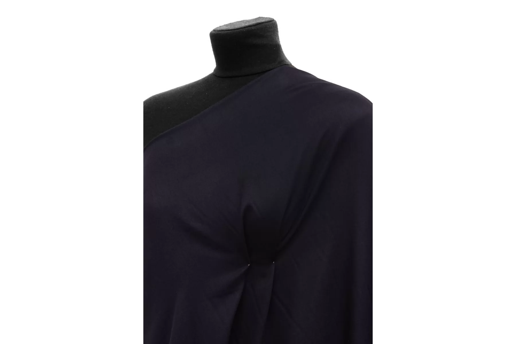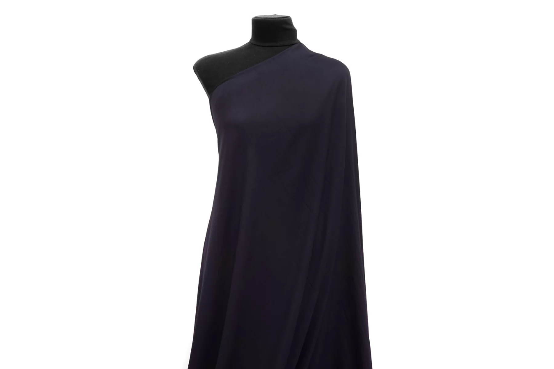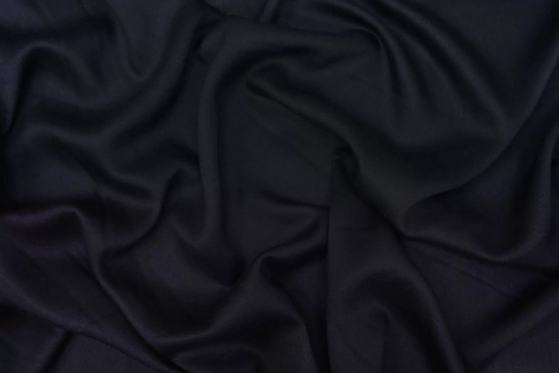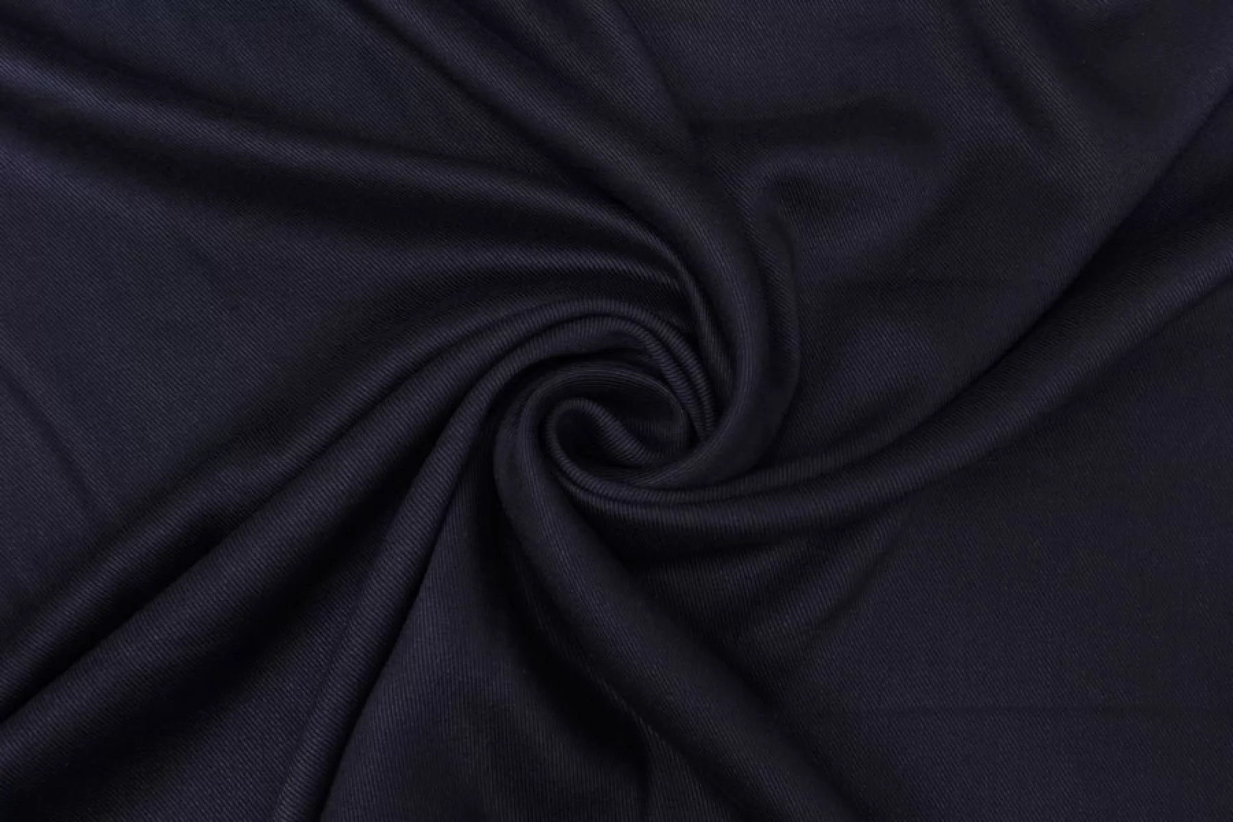 Плательно-рубашечный вискозный твил с шерстю синего цвета. Плотненький. С матовым лоском. Приятный, мягкий. Не тянется. Красив в складках и пластике. Не просвечивает, но прямо на просвет читается силуэт. Не мнется. Немного держит форму. Шьем костюмные варианты, платья, мягкие жакеты, брюки, юбки и не только. При необходимости используйте подкладочный материал. Обязательно учитывайте усадку 5-10%.