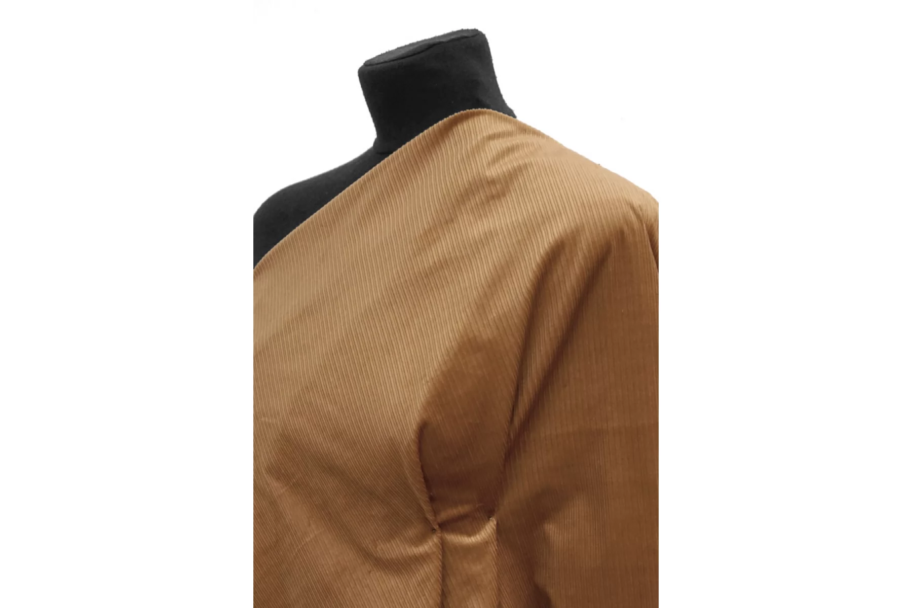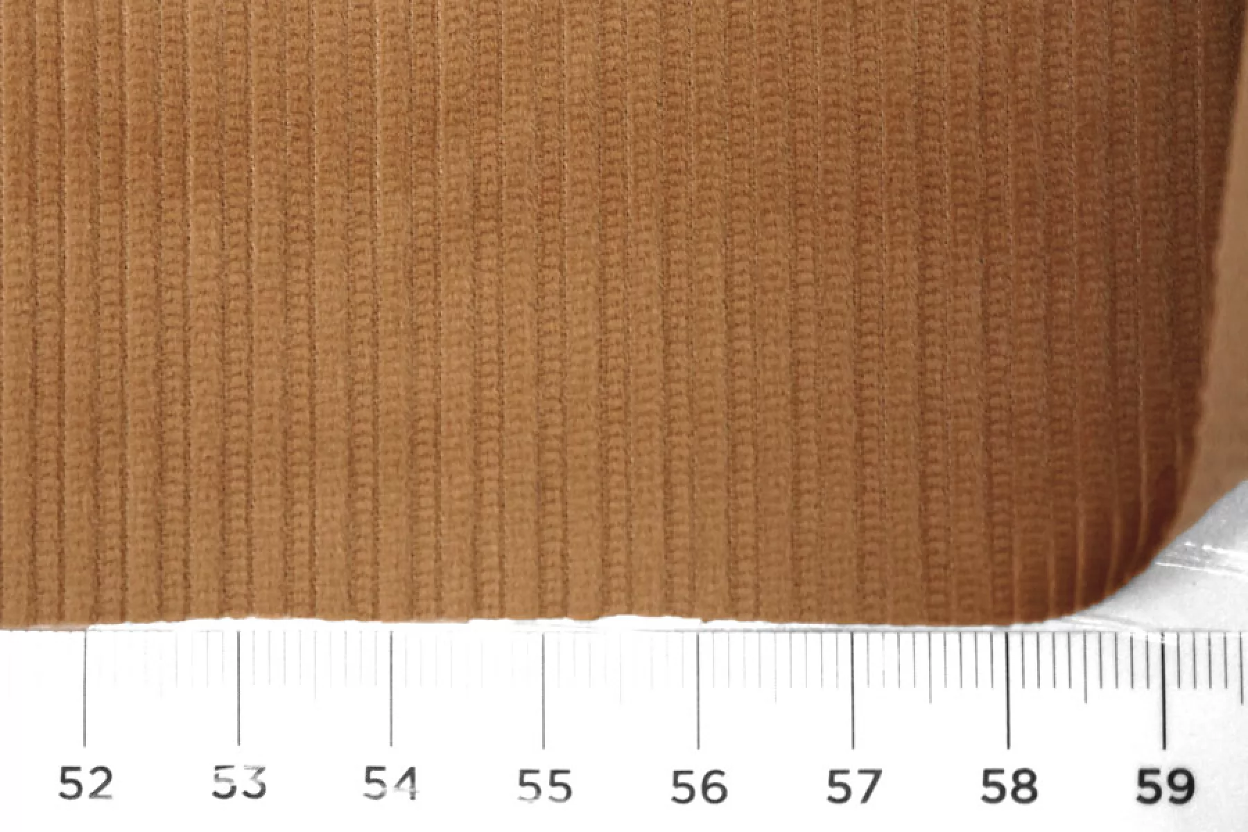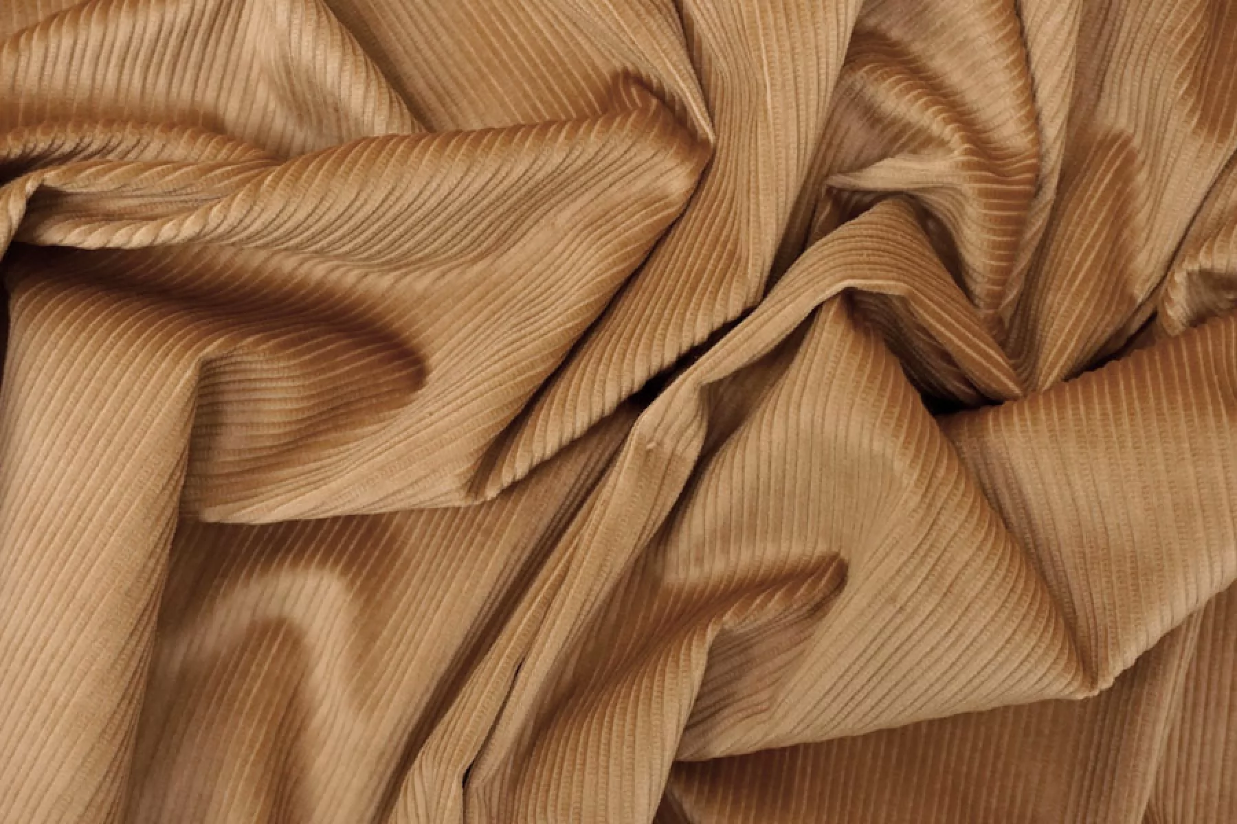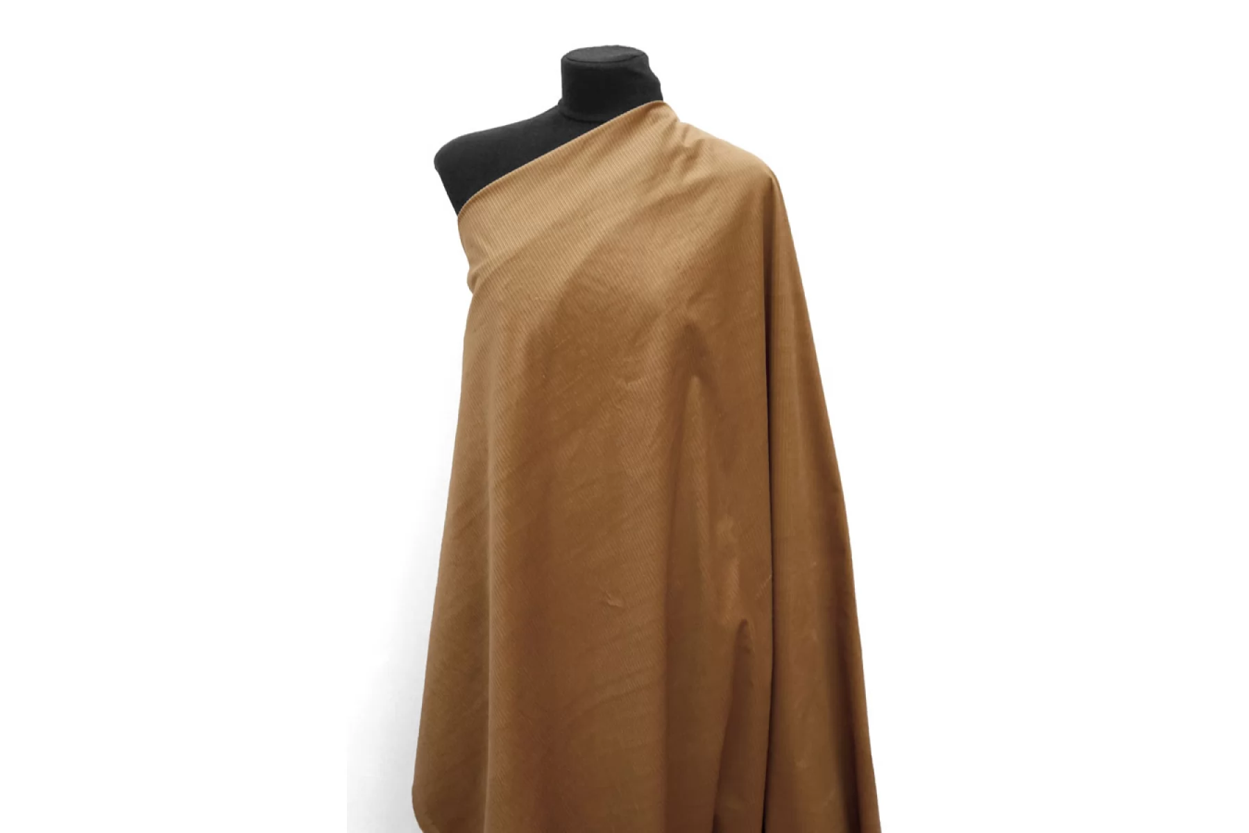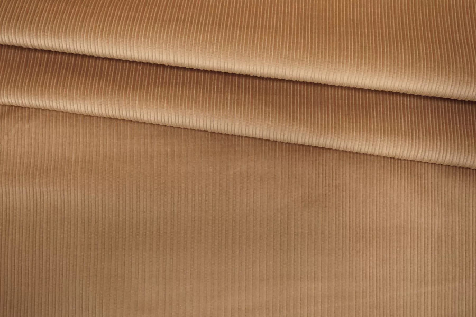 Хлопковый вельвет в бежевом оттенке Camel от бренда Etro. Ширина рубчиков ~2 мм. Приятный и мягкий тактильно, тянется. Пластичный. Практически не мнется. Хорошо драпируется. Отличный вариант для пошива платья, сарафана, шорт, юбки и жакета мягкой формы, теплой рубашки.