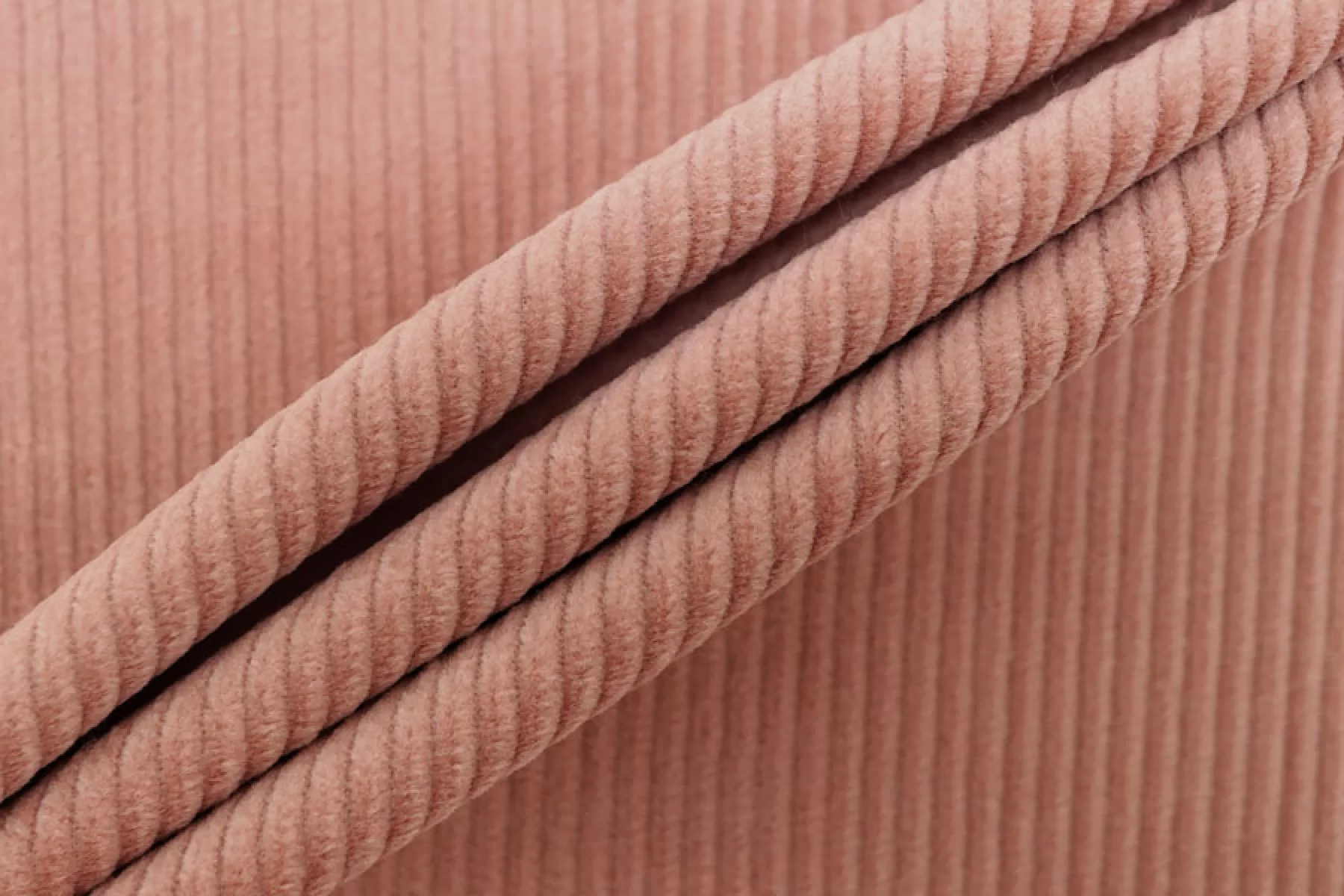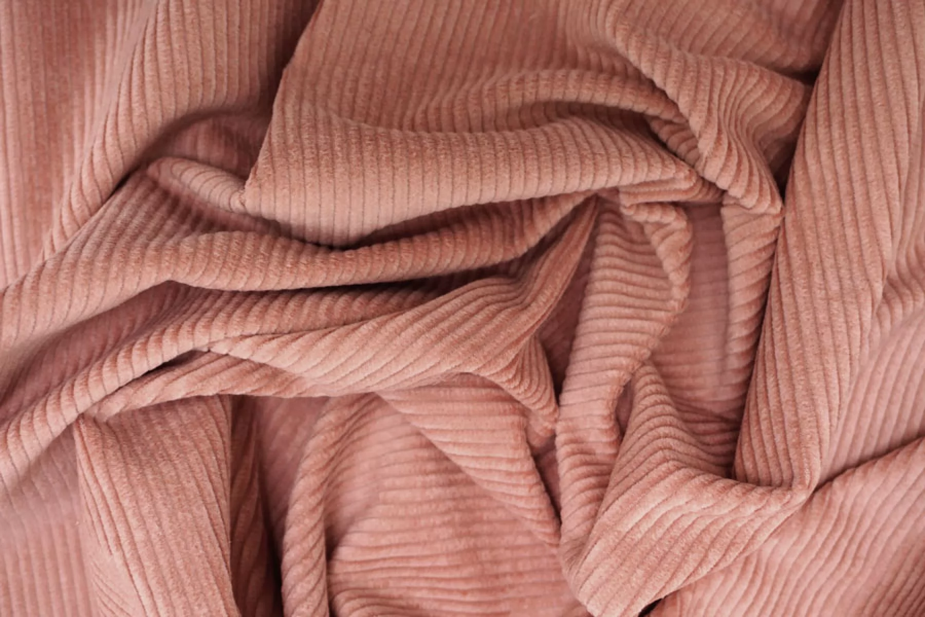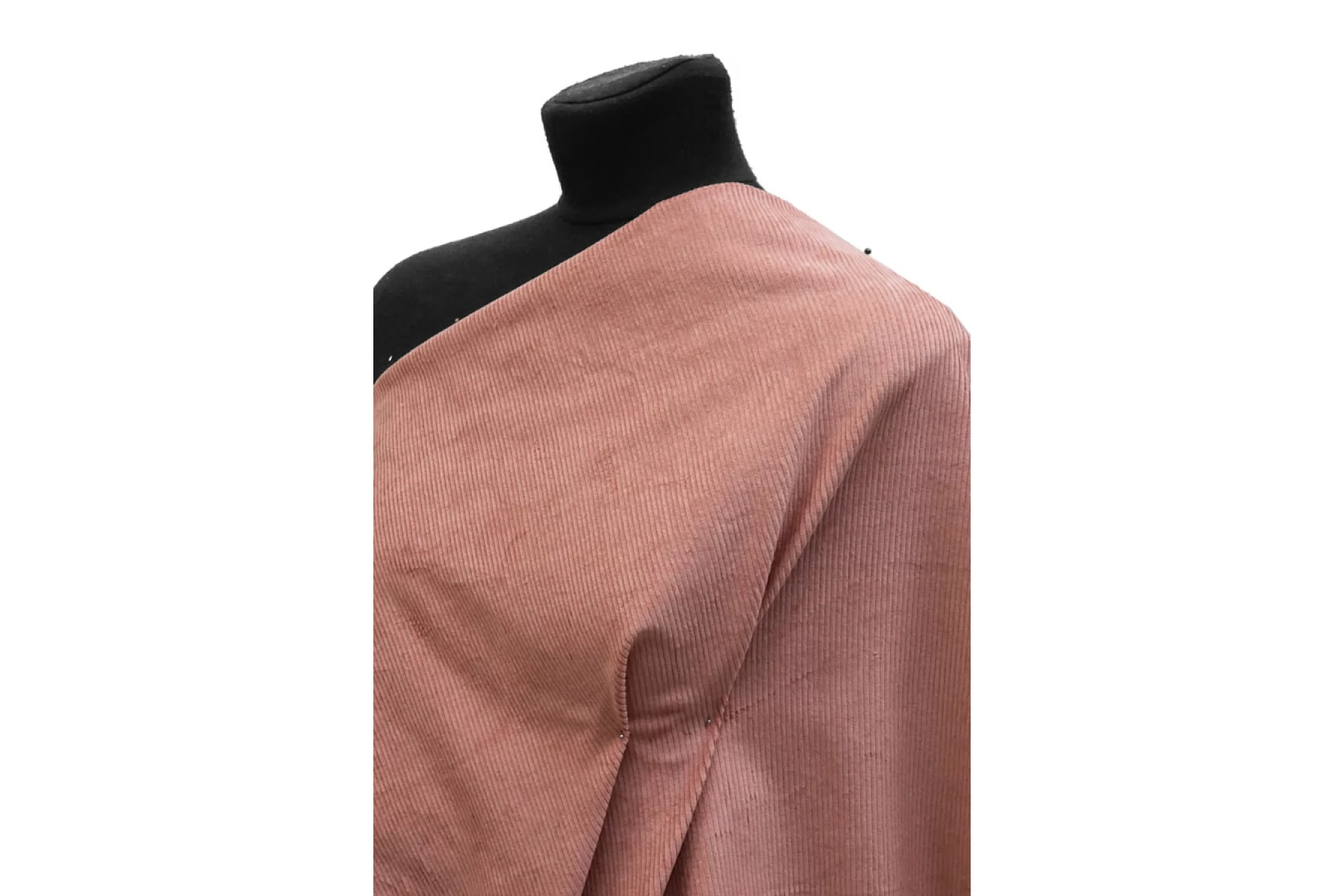 Итальянский хлопковый вельвет костюмно-плательной плотности приятного персикового оттенка. Ширина рубчиков ~2 мм. Материал плотный ~1 мм толщиной. Приятный и мягкий тактильно, отлично тянется, благодаря эластану. Пластичный. Не мнется. Хорошо драпируется и держит форму. Отличный вариант для пошива костюма, шорт, юбки и жакета.