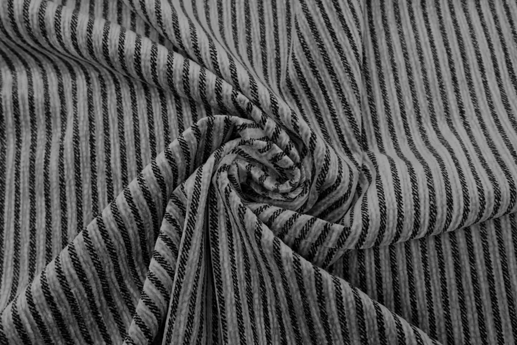 УЗКИЙ! Итальянский хлопковый вельвет в полоску серого цвета. Основа материала плотненькая, не просвечивает. Приятный тактильно, хорошо тянется. Не мнется. Хорошо драпируется и держит форму. Вариант для пошива костюма, шорт, юбки и жакета. При необходимости используйте подкладочный материал.