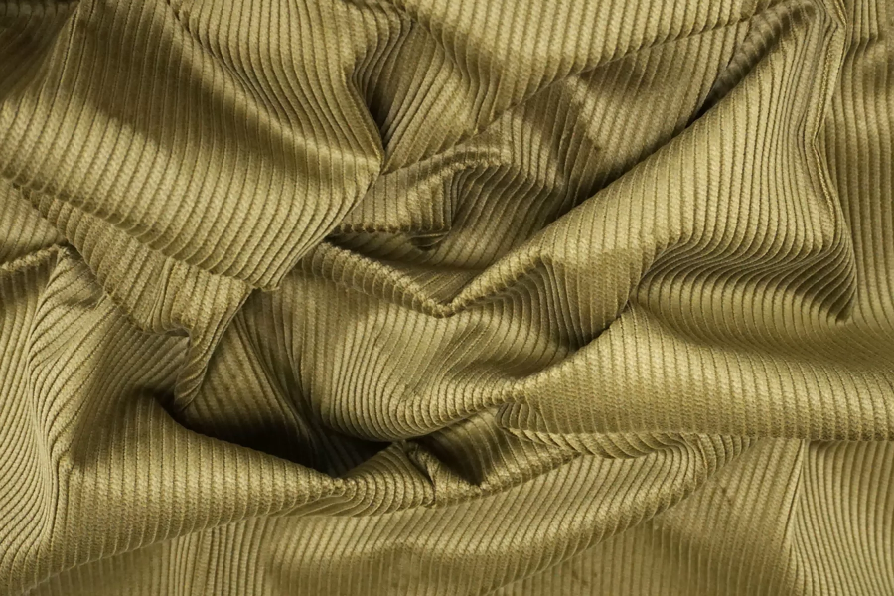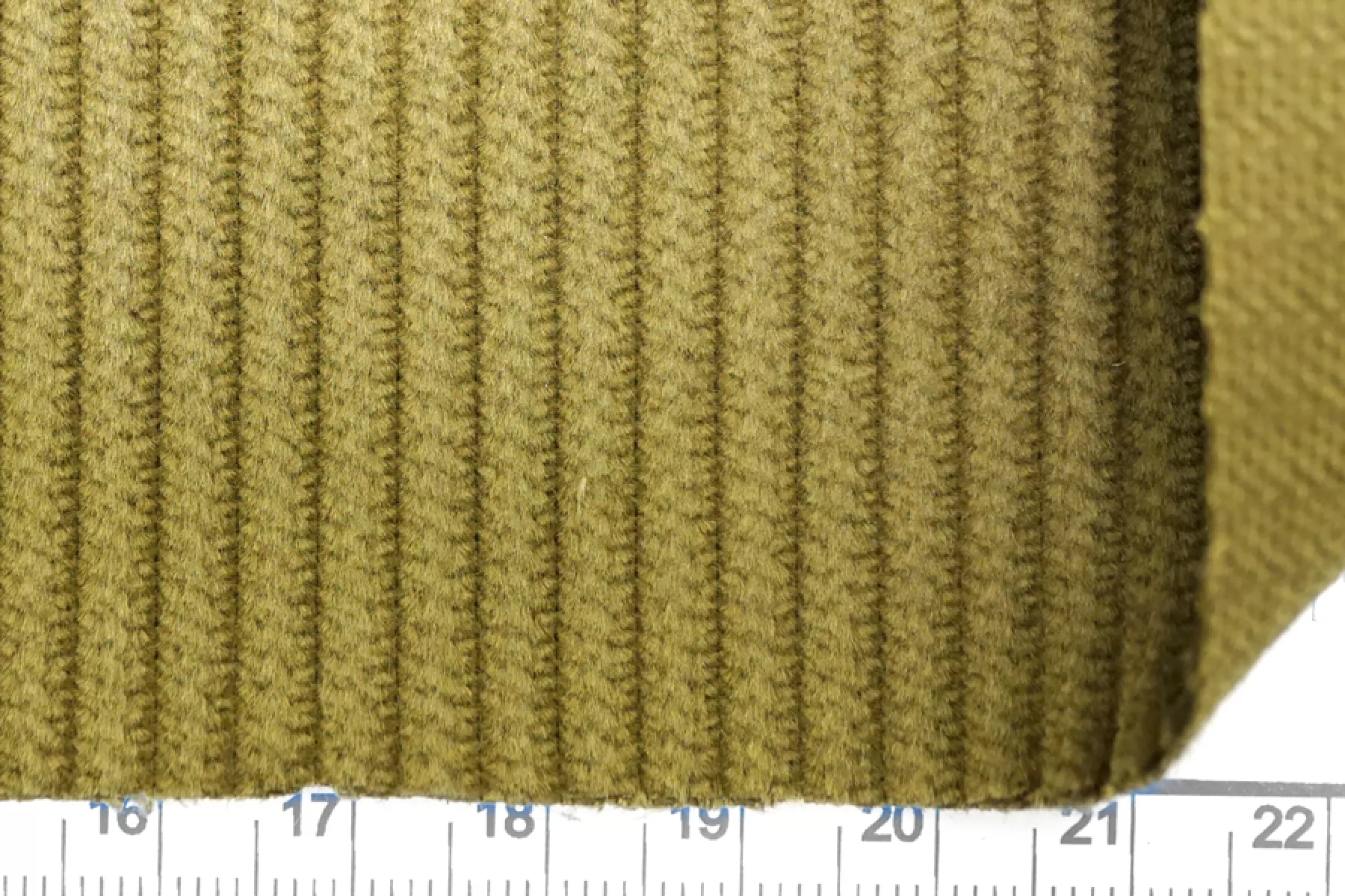 Внимание! Присутствуют полосы следы от скотча и выцветшие участки (переход цвета как градиент) см. фото. Итальянский вельвет костюмной плотности в красивом, жёлто-зелёном оттенке (оттенок зелёной горчицы). Рубчик 4 мм. Приятный тактильно, мягкий. Не тянется. Не просвечивает. Хорошо смотрится в складке. Хорошо держит форму. Немного сминается. Подойдет для пошива костюмов, комбинезонов (с юбкой, на бретелях), юбок с разрезом, и т.д.