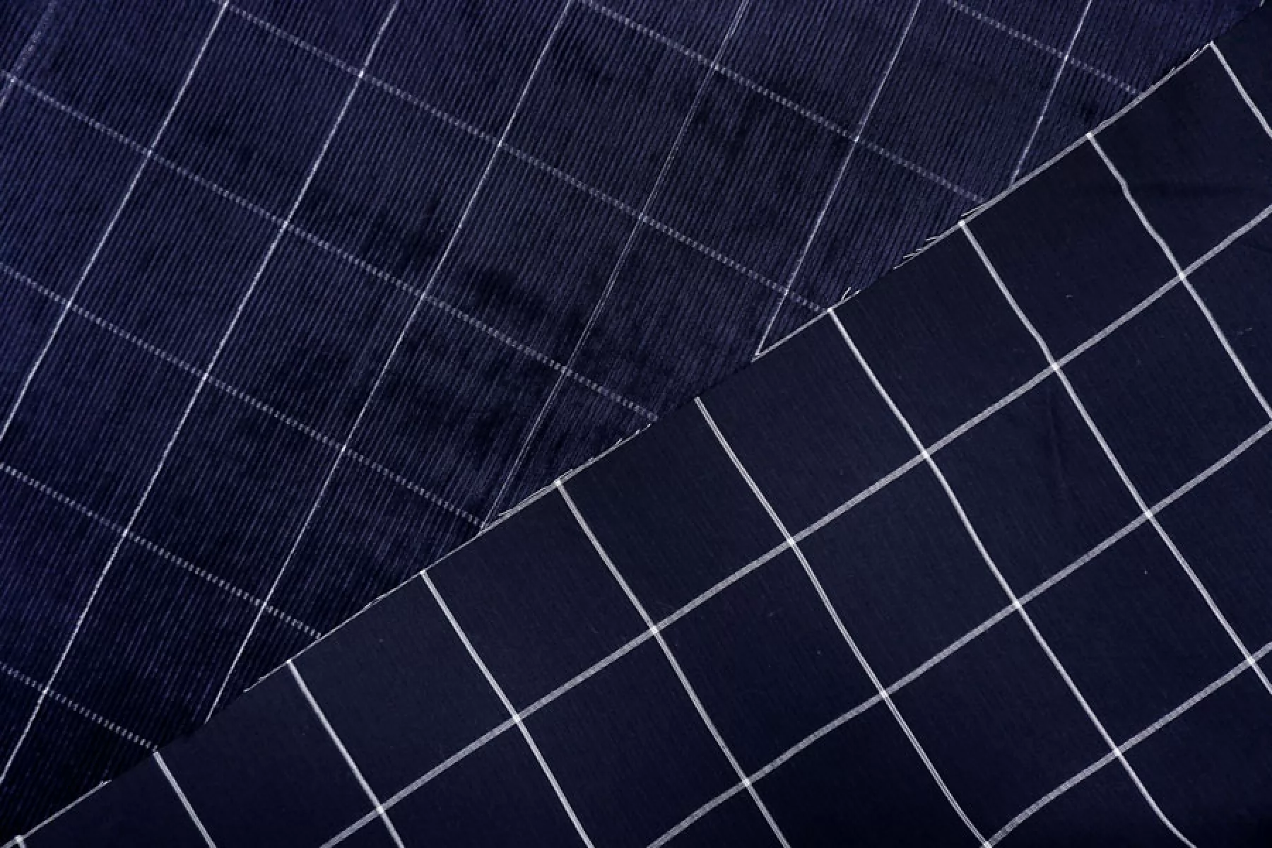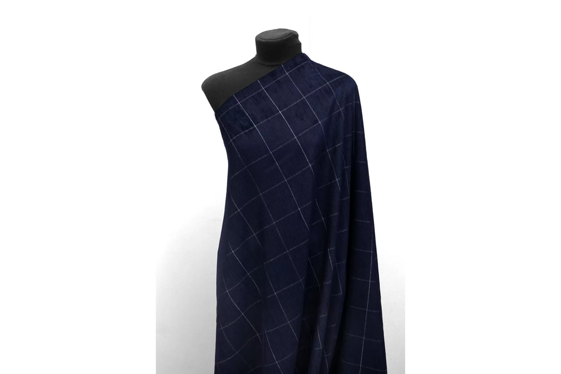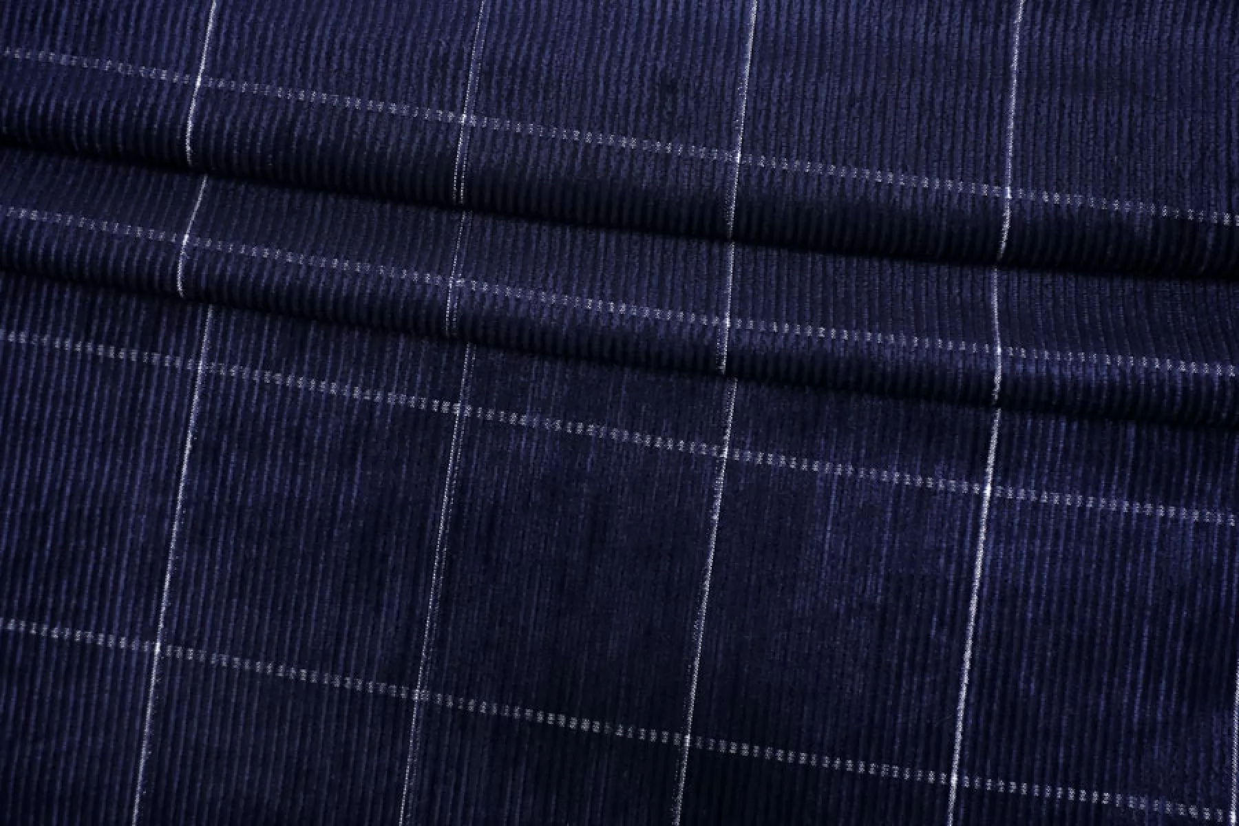 Вельвет костюмно-плательный в клетку Темно-синий FRM H18/3 K50 29062511