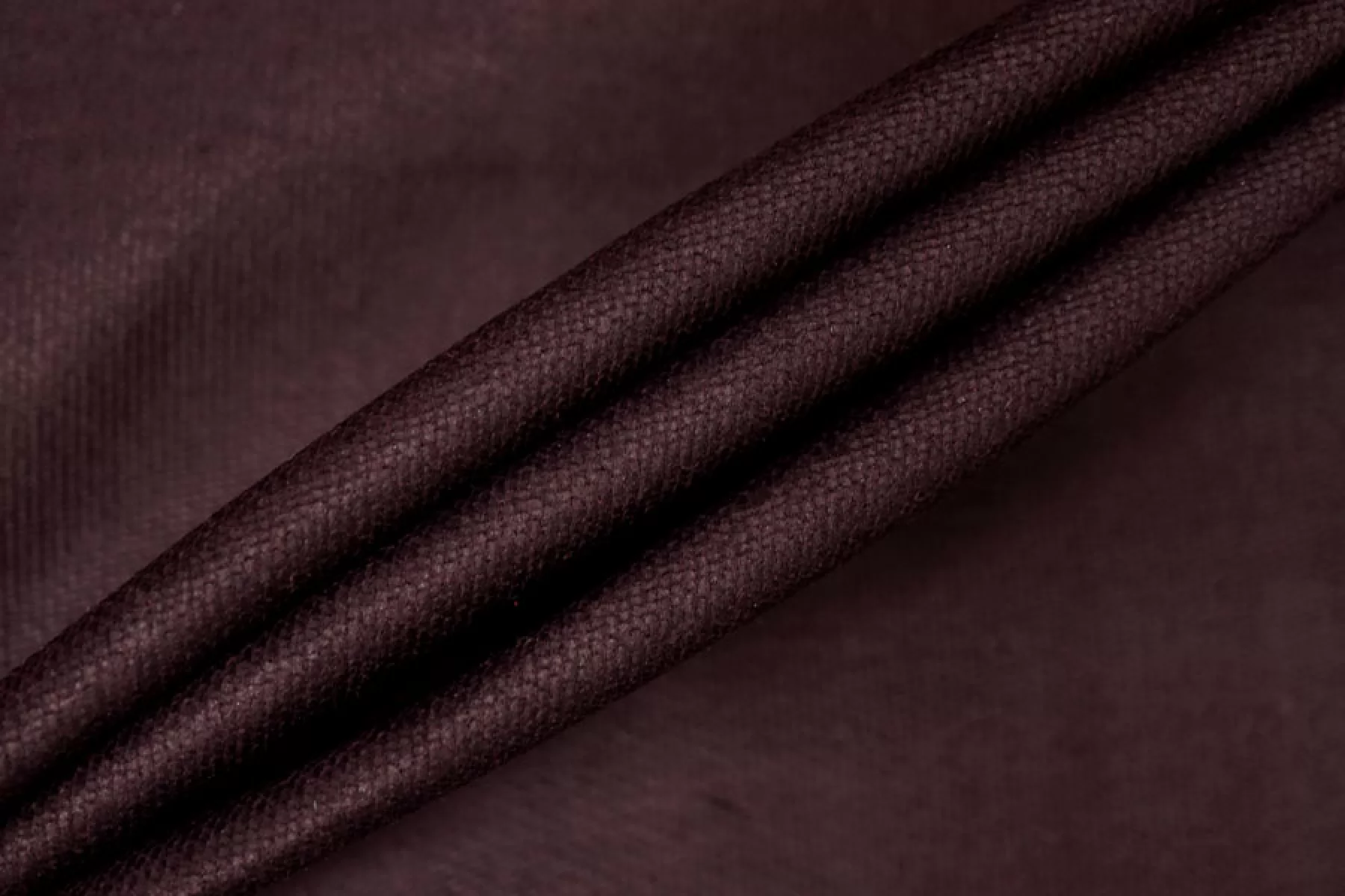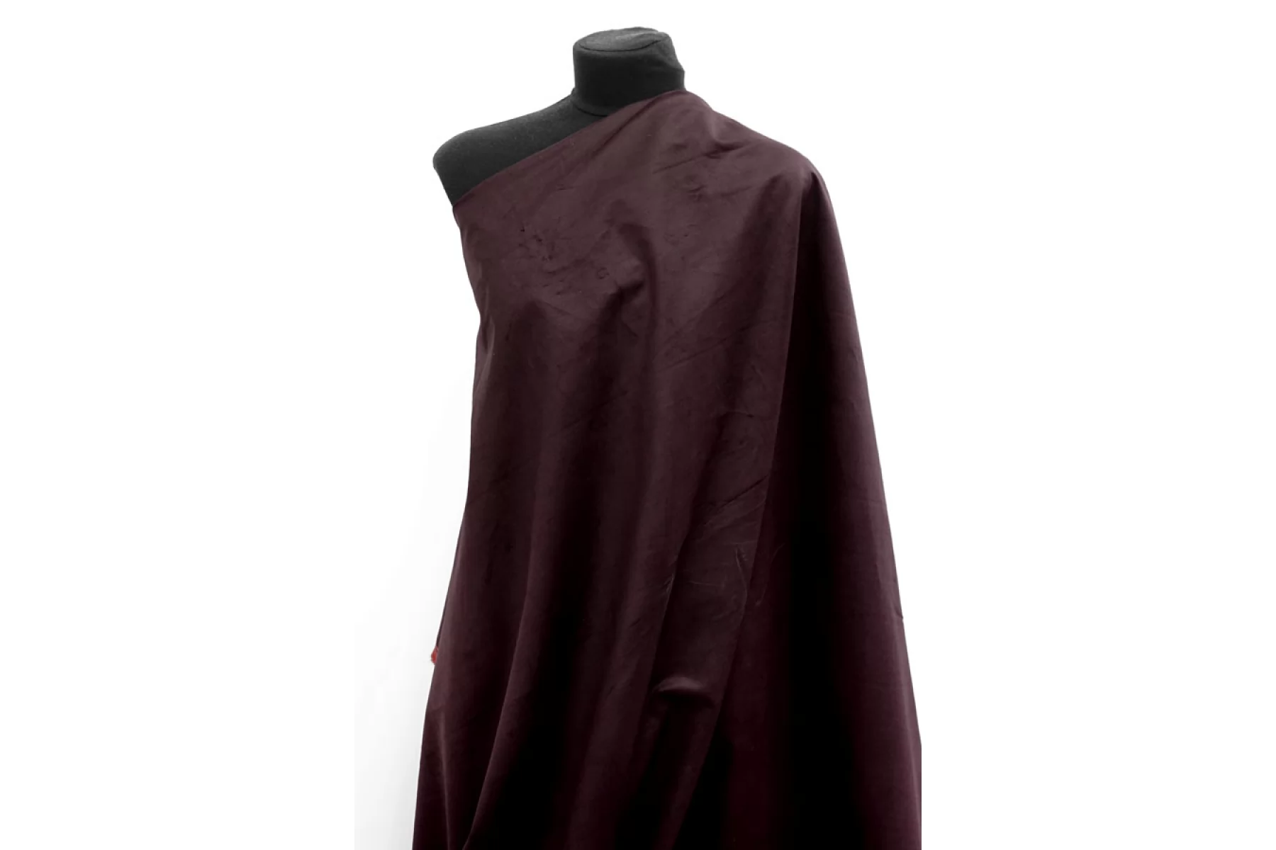 Красится! На полотне пристутсвуют круги (частично отпариваются) см. фото! Итальянский костюмно-плательный велюр от Gucci из хлопка в очень темном, фиолетово-баклажанном оттенке. Изнанка-основа красного цвета. Ворс короткий, прижатый, направленный. Очень приятный тактильно, тянется, не просвечивает. Подойдет для пошива костюма, платья, юбки, брюк.