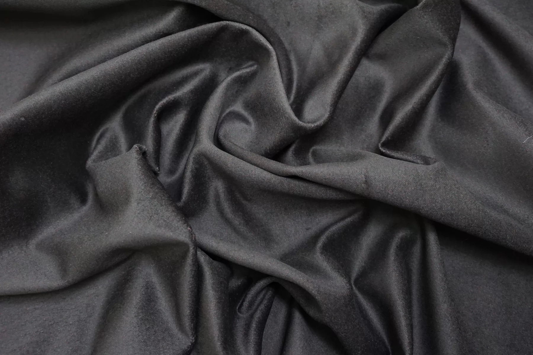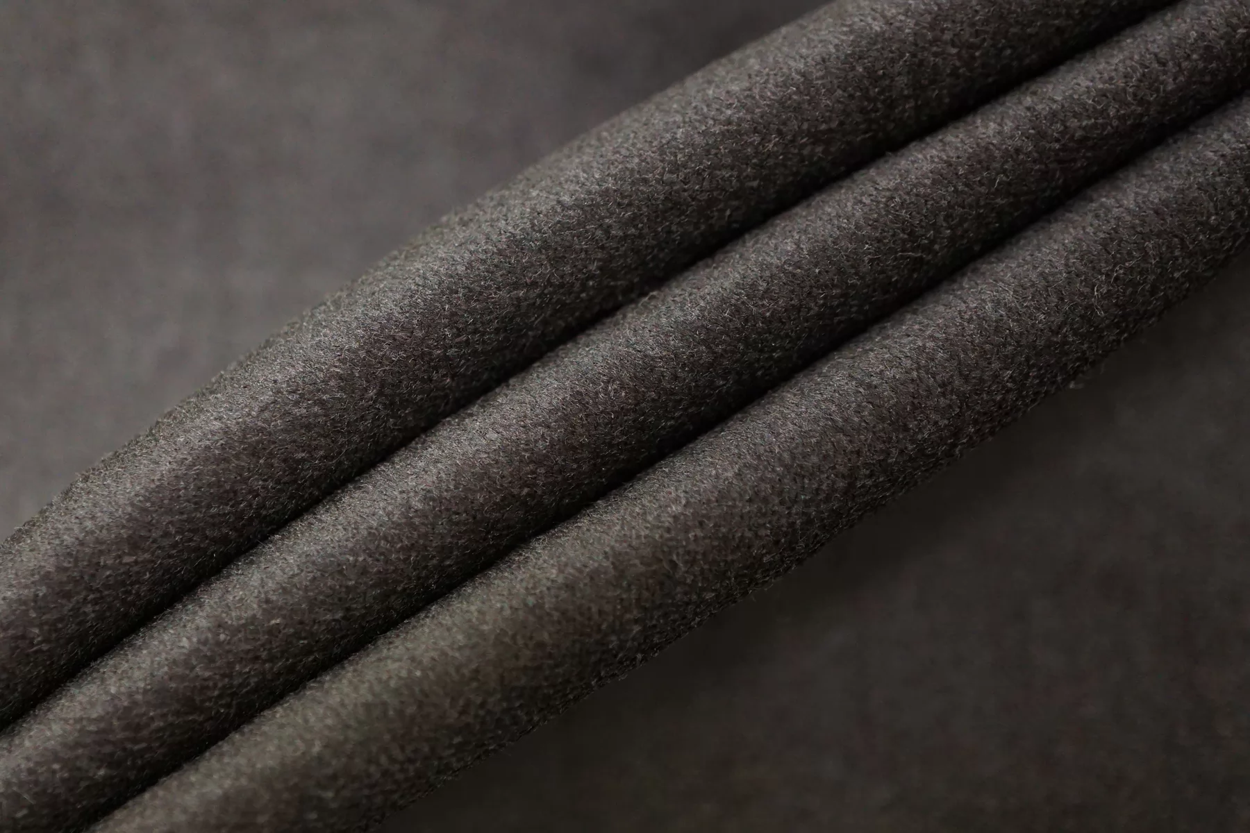 Итальянский костюмный велюр из хлопка в тёмном сером цвете с коричневым подтоном. Ворс короткий, направленный. Очень приятный тактильно, тянется, не просвечивает. Подойдет для пошива костюма, платья, юбки, брюк.